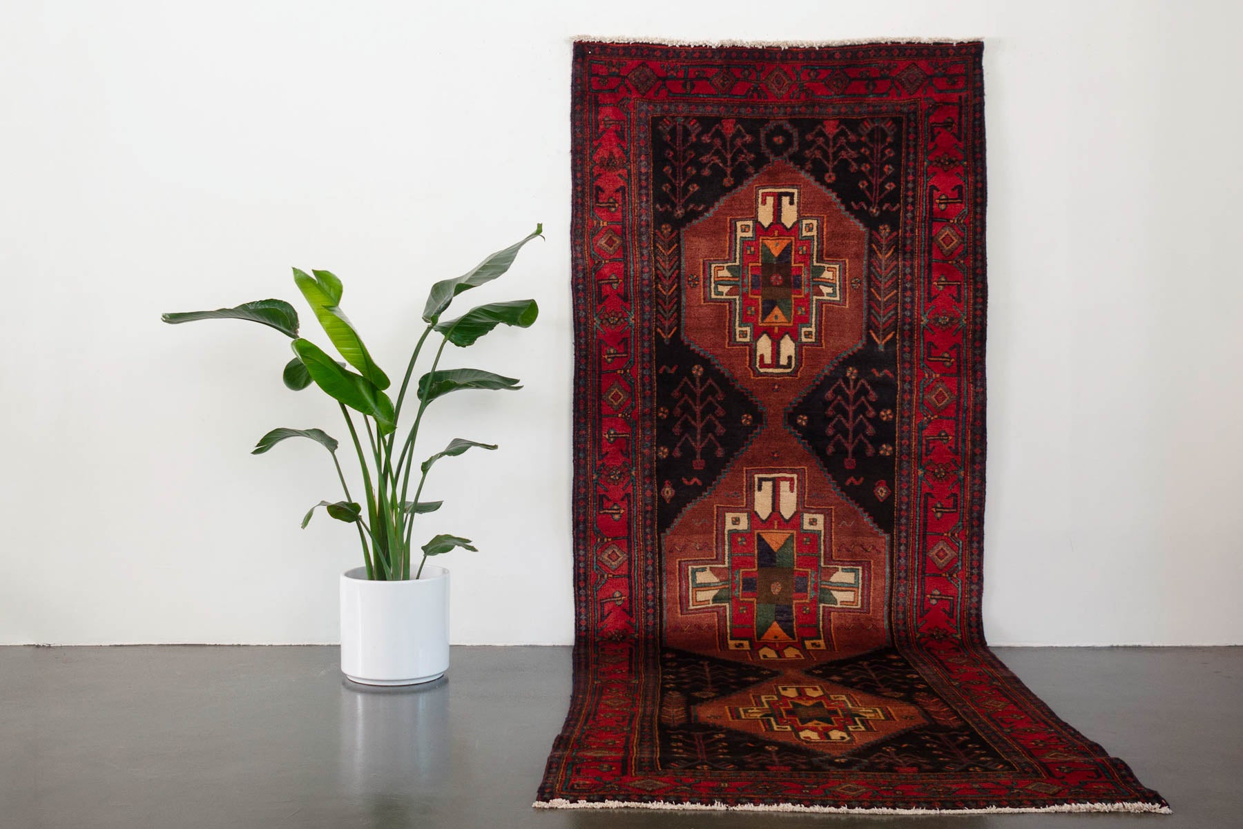 name: Rykaorigin: Iran (Persian), Zanjanstyle: rug, runner, carpetmaterial: hand knotted woolcolors: red, green, orange, navy, browns, blackage: vintage condition: good, age related wear - see pictures52" x 139" (closest standard rug size is 4x11.5)Free domestic shipping on all rugs.Contact us for an international shipping quote.