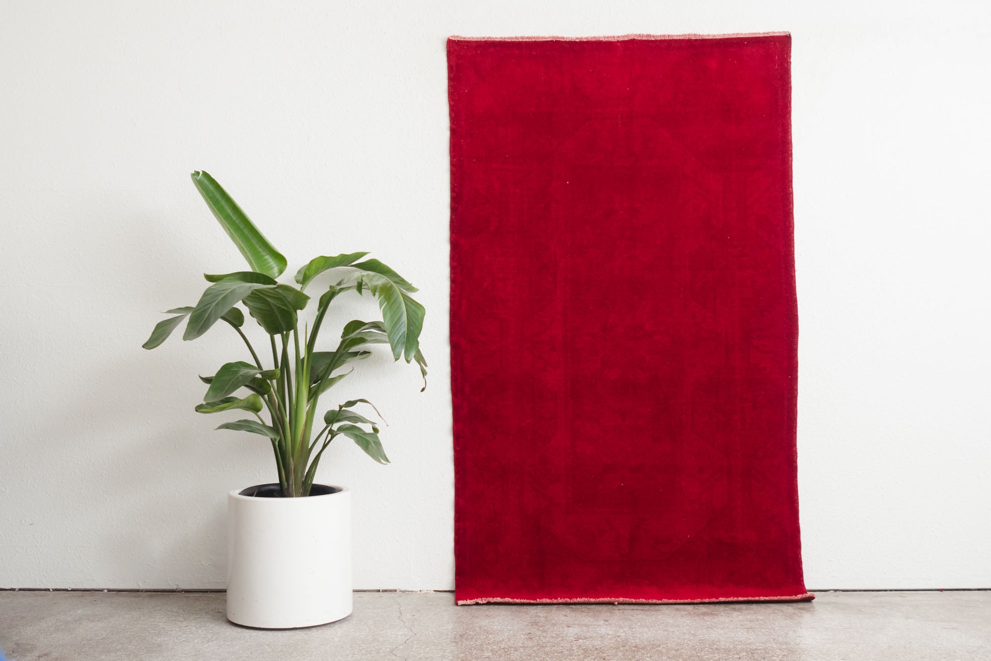 name: Bayarstyle: hand woven, Turkish, over-dyed, rug, carpetmaterial: woolcolor: redsage: vintagecondition: good, age related wear - see pictures