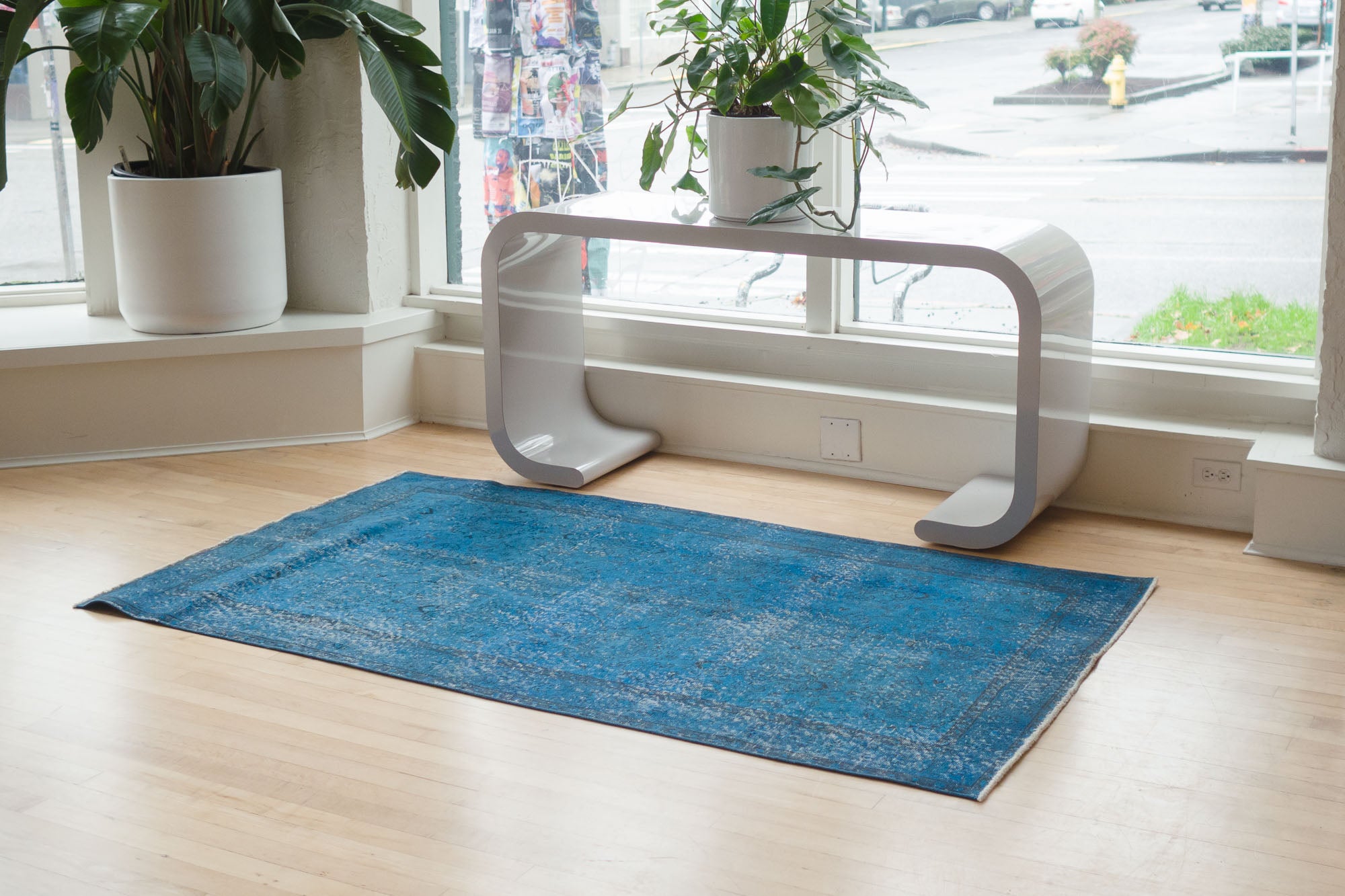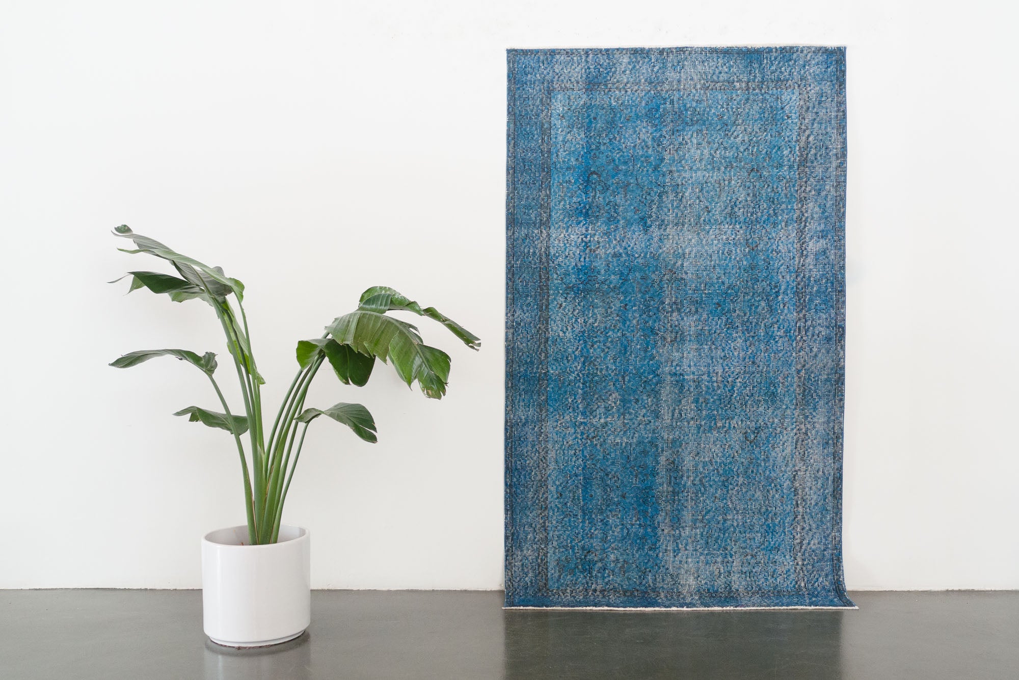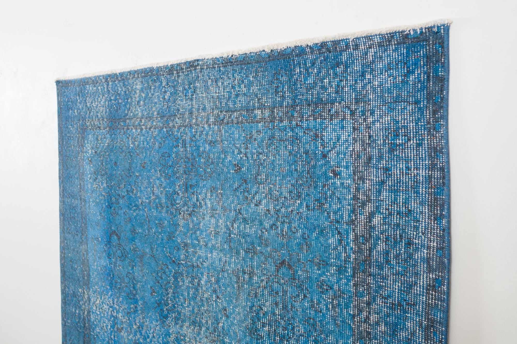 name: Cemorigin: Turkeystyle: overdye, rug, carpetmaterial: hand woven woolcolors: blue, black, creamage: vintage, 1940-1970condition: good, age related wear - see picturesappraised value: $888sku: t-394