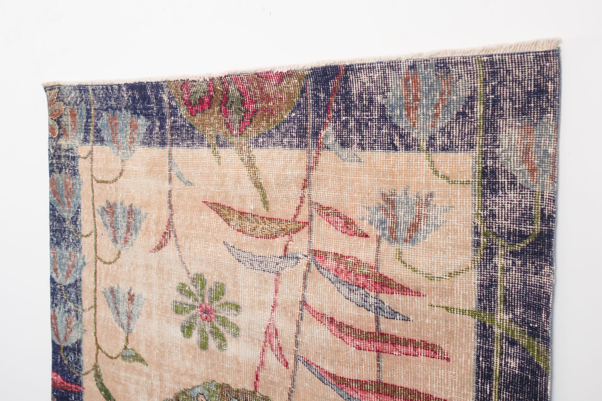 name: Torosorigin: Turkeystyle: rug, carpetmaterial: hand knotted woolcolors: cream, tan, navy, red, greenage: vintage, 1940-1970condition: good, age related wear - see picturessku: t-163