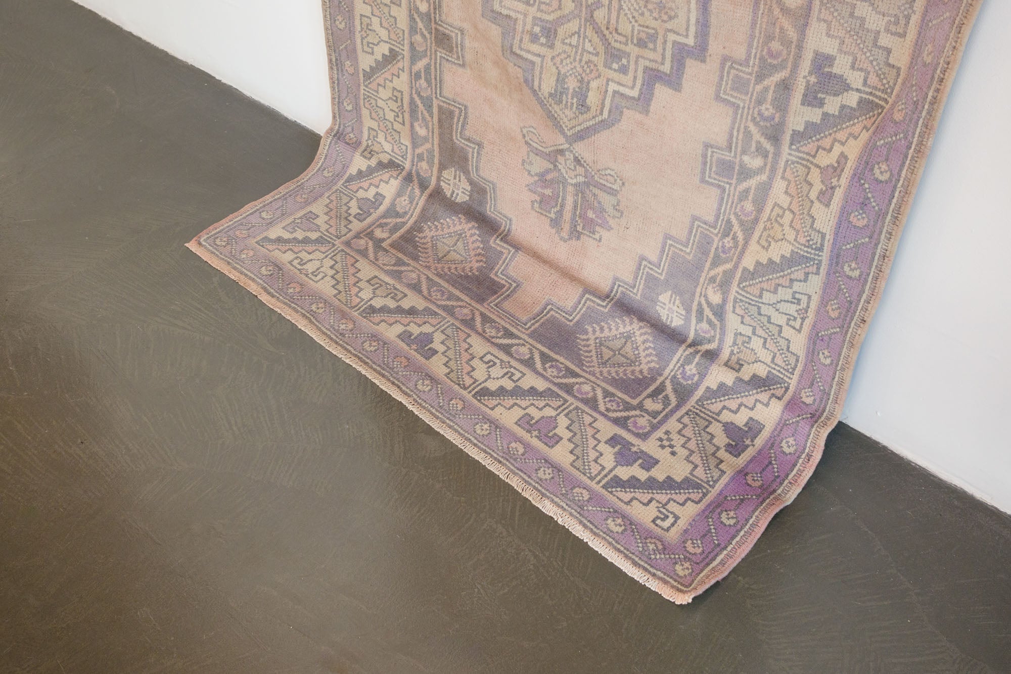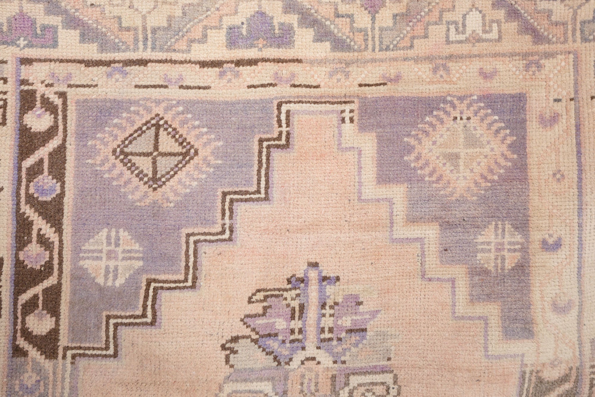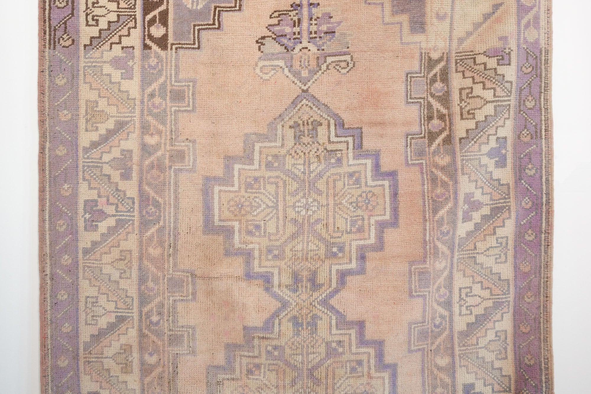 name: Dervisorigin: Turkeystyle: rug, carpetmaterial: hand knotted woolcolors: pink, purple, brown, cream, tanage: vintage, 1940-1970condition: good, age related wear - see picturesappraised value: $1164