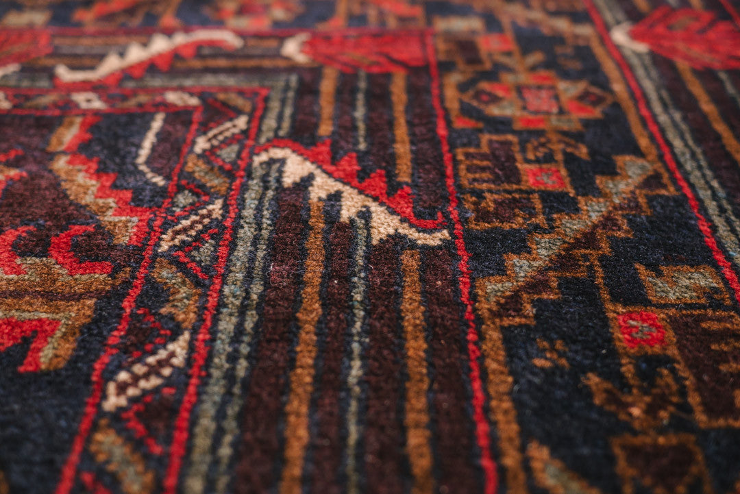 style: hand knotted, Afghani, Baluch, rug, carpet