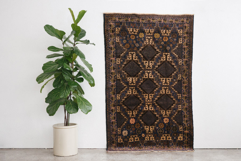 style: hand knotted, Afghani, Baluch, rug, carpet