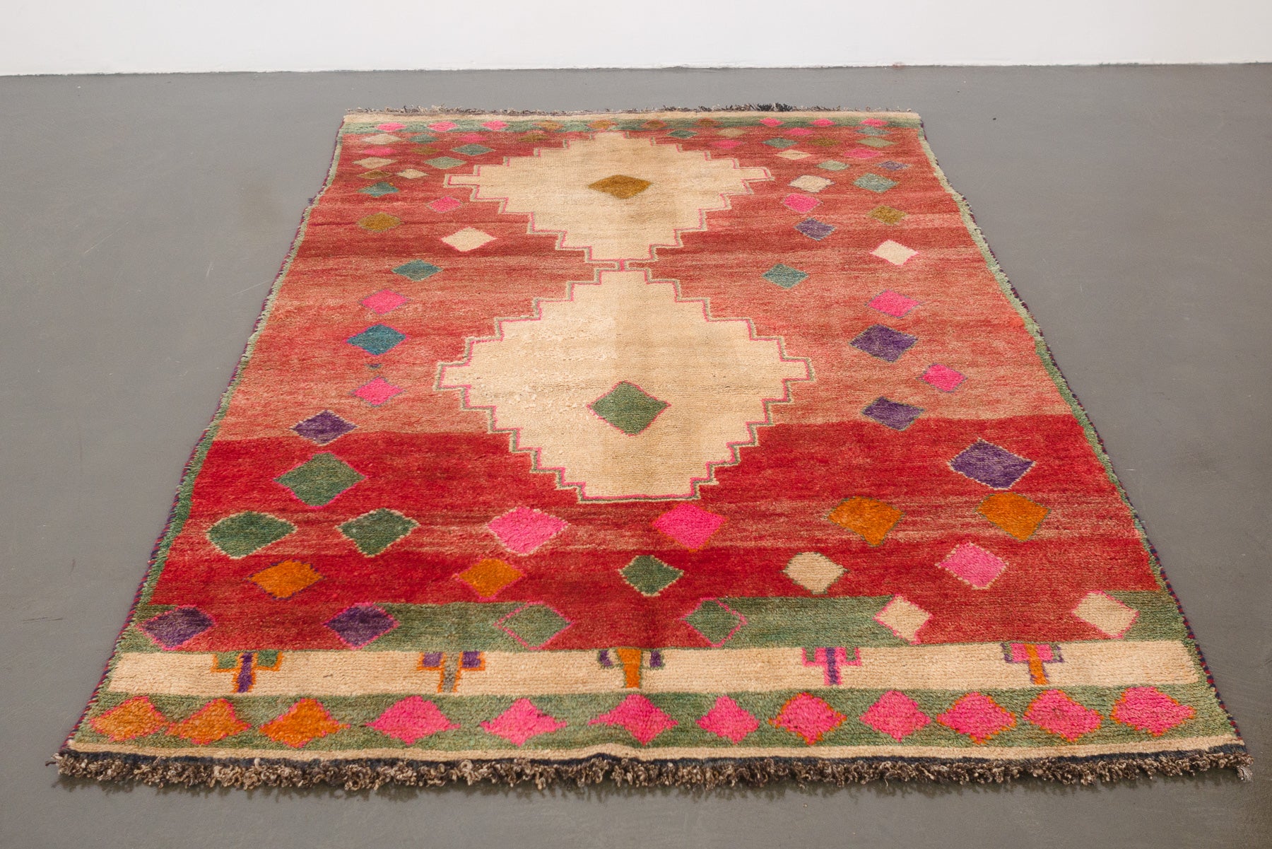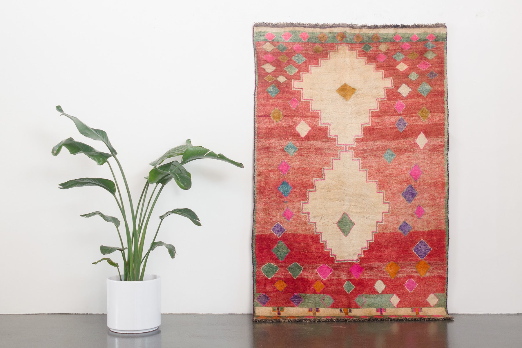 name: Zaborigin: Iran (Persian), Qashai, Gabbeh, Shirazstyle: rug, carpetmaterial: hand knotted woolcolors: reds, pinks, green, violet, blues, yellow, orange, cream, brownsage: vintage, 1940-1960condition: good, age related wear - see picturesappraised value: $3,20050" x 81" (closest standard rug size is 4x7)Free domestic shipping on all rugs.Contact us for an international shipping quote.
