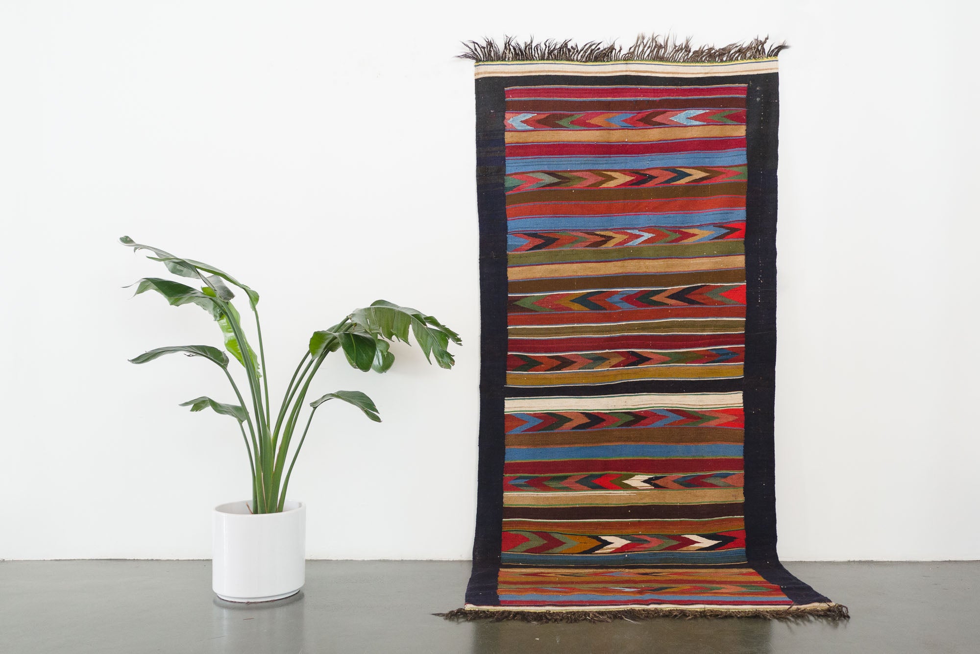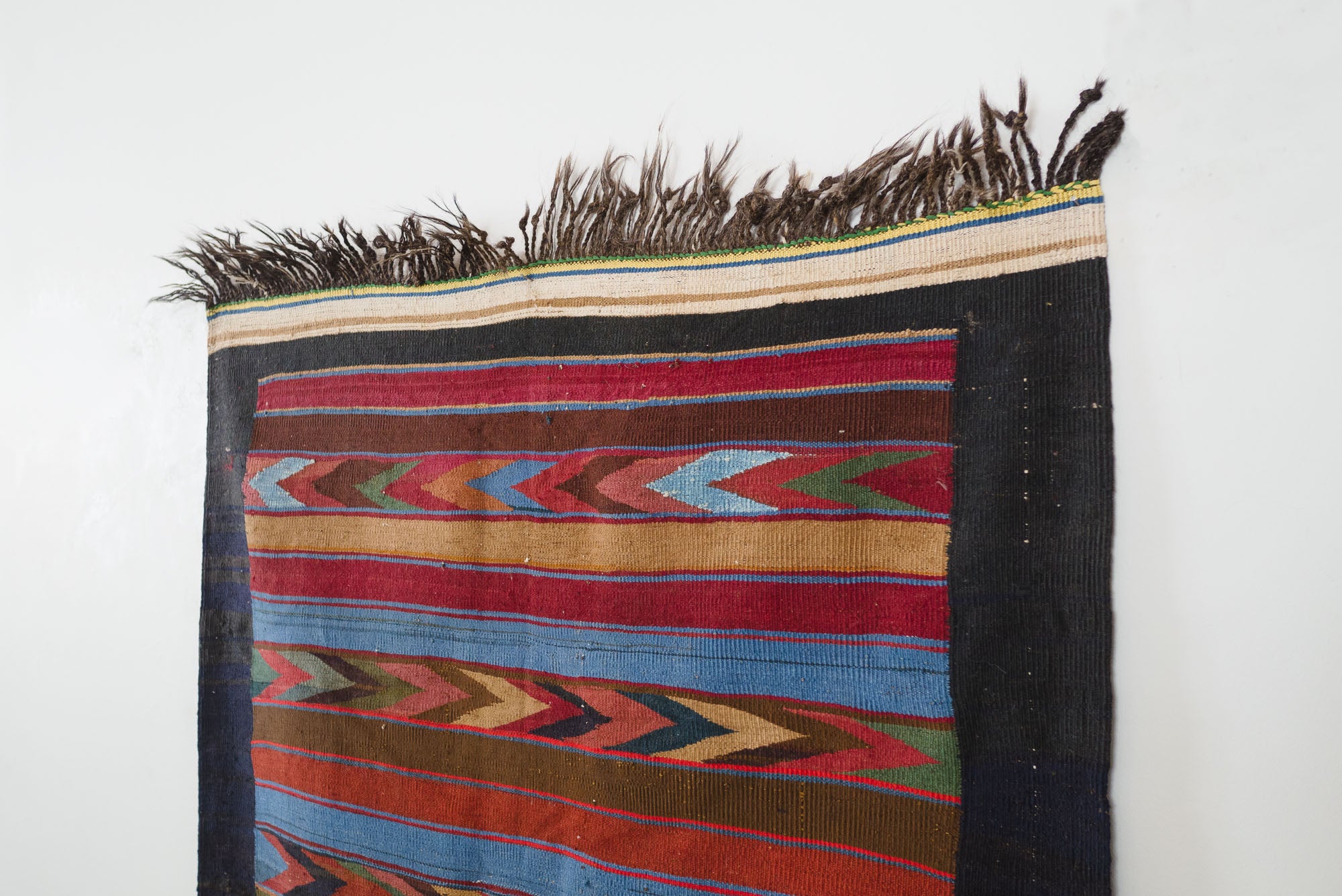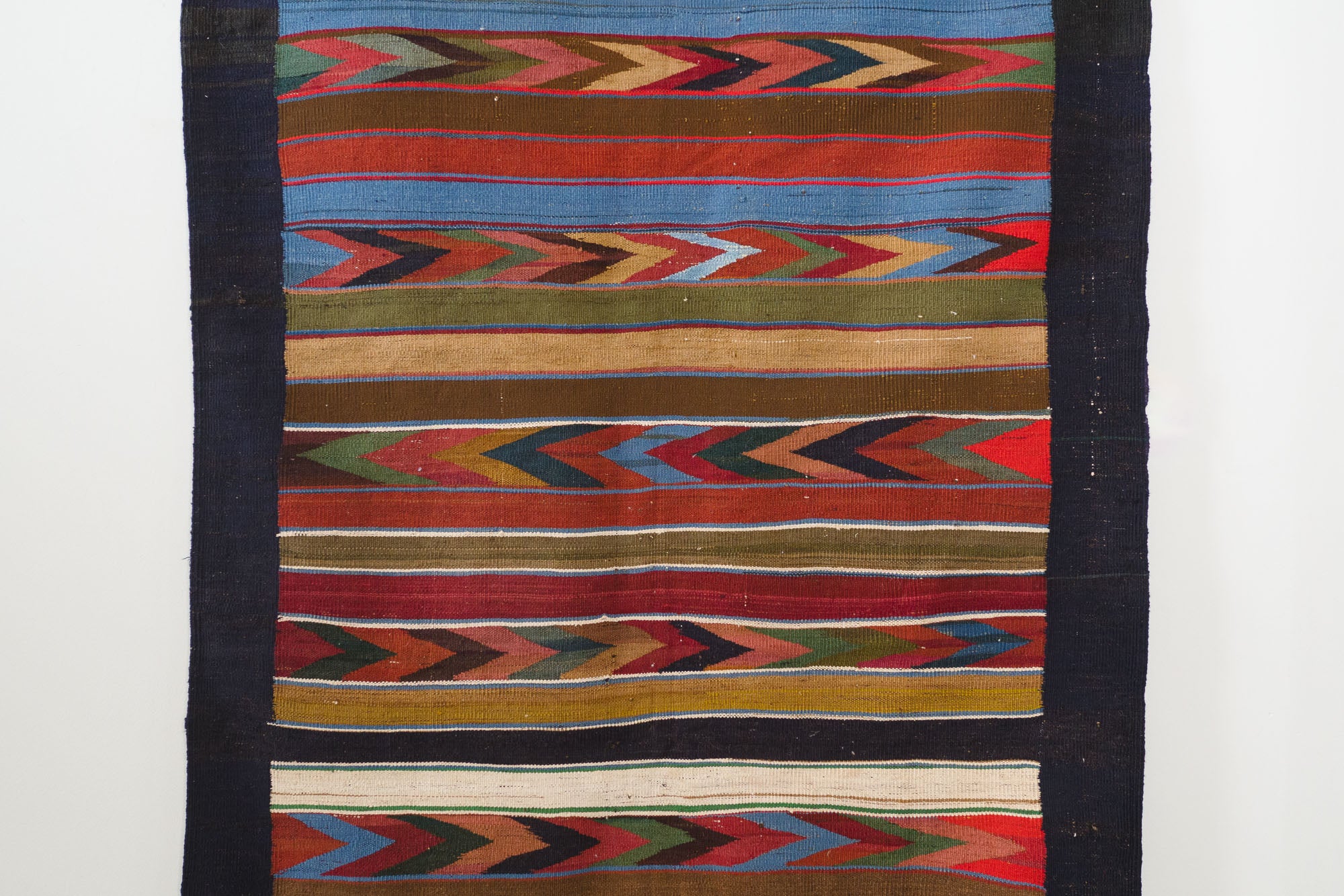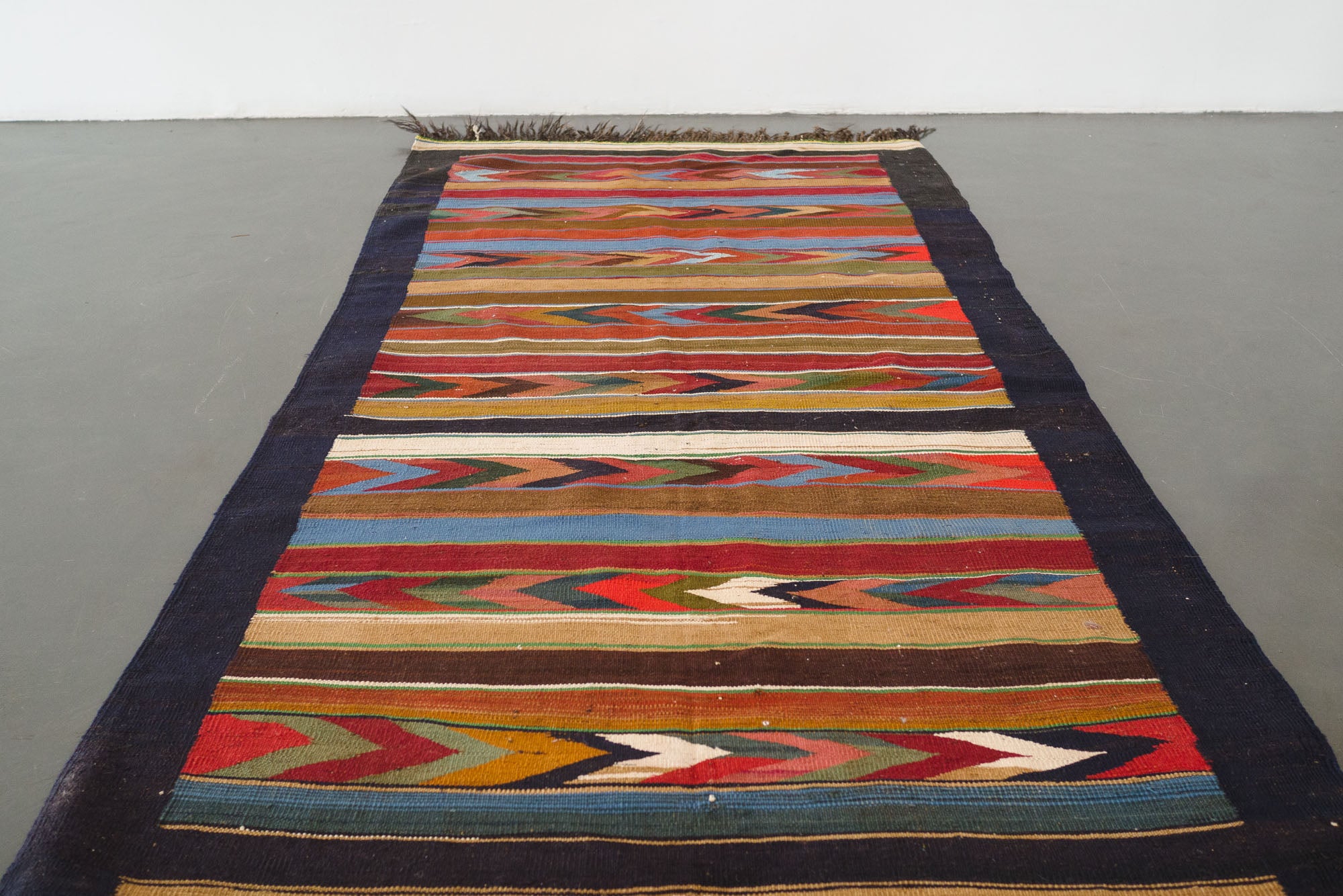 name: Gungororigin: Turkeystyle: kilim, rug, carpetmaterial: hand woven woolcolors: red, blues, greens, cream, browns, goldage: vintage, 1940-1970condition: good, age related wear - see picturesappraised value: $840sku: t-392