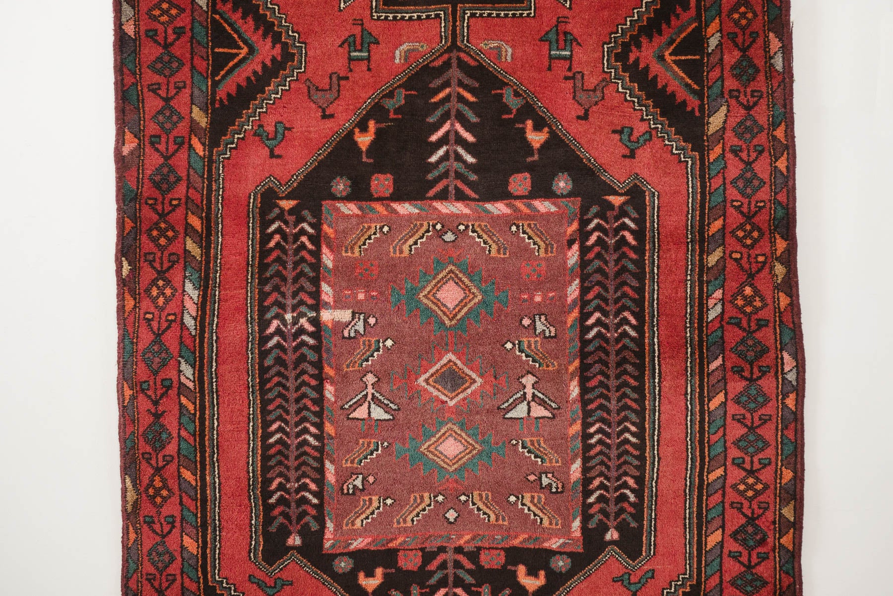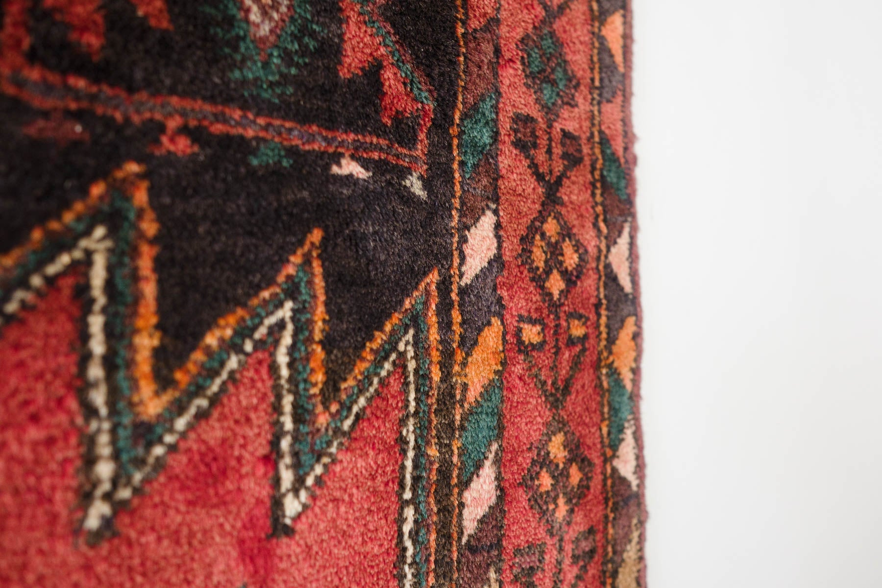 name: Paryaorigin: Iran (Persian)style: rug, runner, carpet material: hand knotted woolcolors: red, black, cream, green, browns, orange age: vintage condition: good, age related wear - see pictures50" x 116" (closest standard rug size is 4x9.5)Free domestic shipping on all rugs.Contact us for an international shipping quote.
