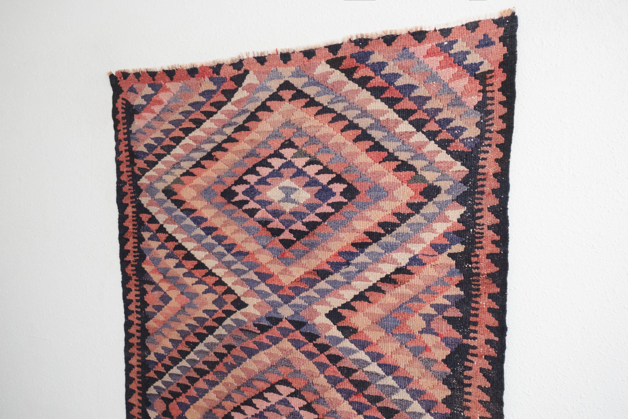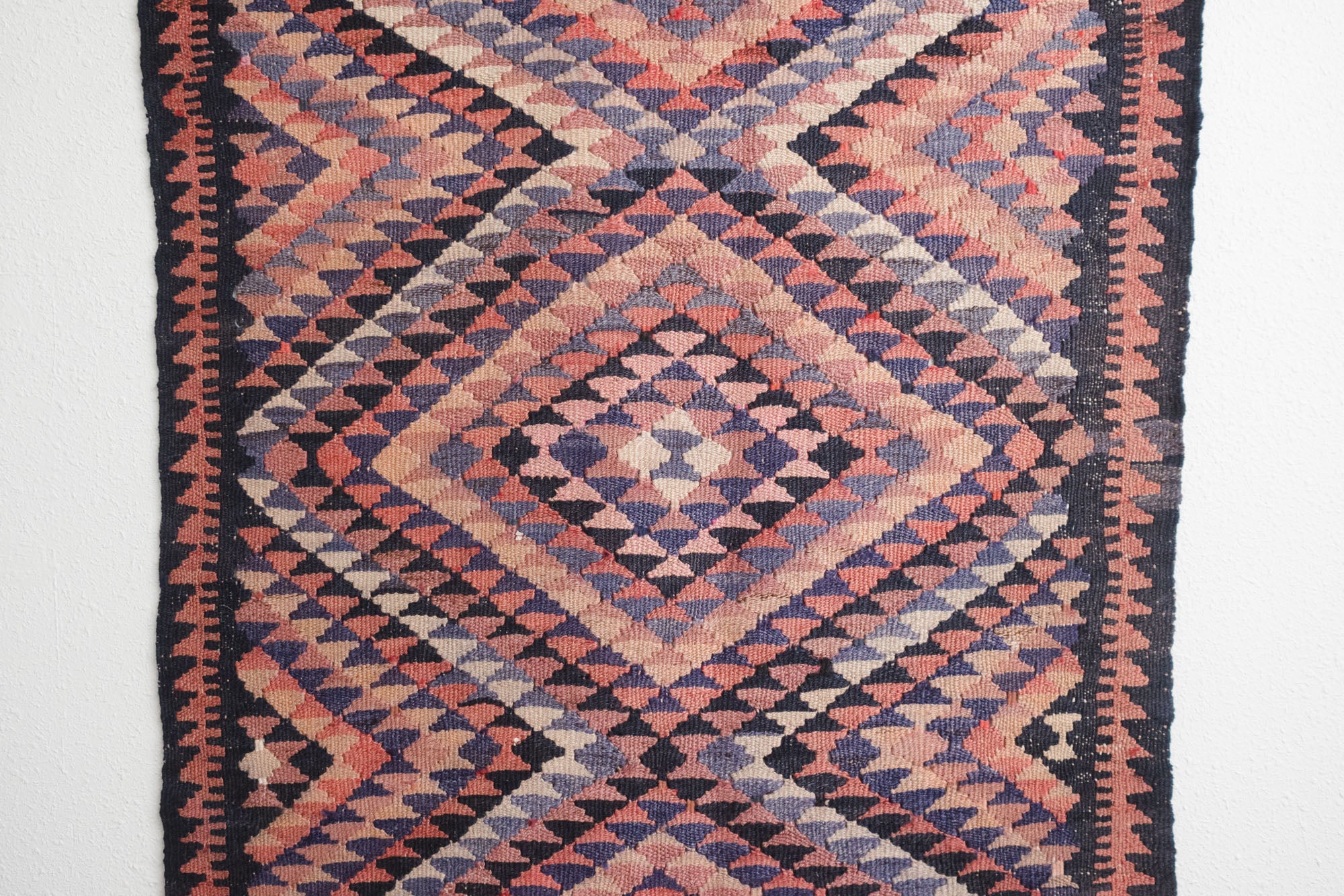 name: Bahdororigin: Iran (Persian), Veraminstyle: flat weave, kilim, rug, carpet material: hand woven woolcolors: red, pink, blue, camel, cream, blackage: vintage condition: good, age related wear - see pictures