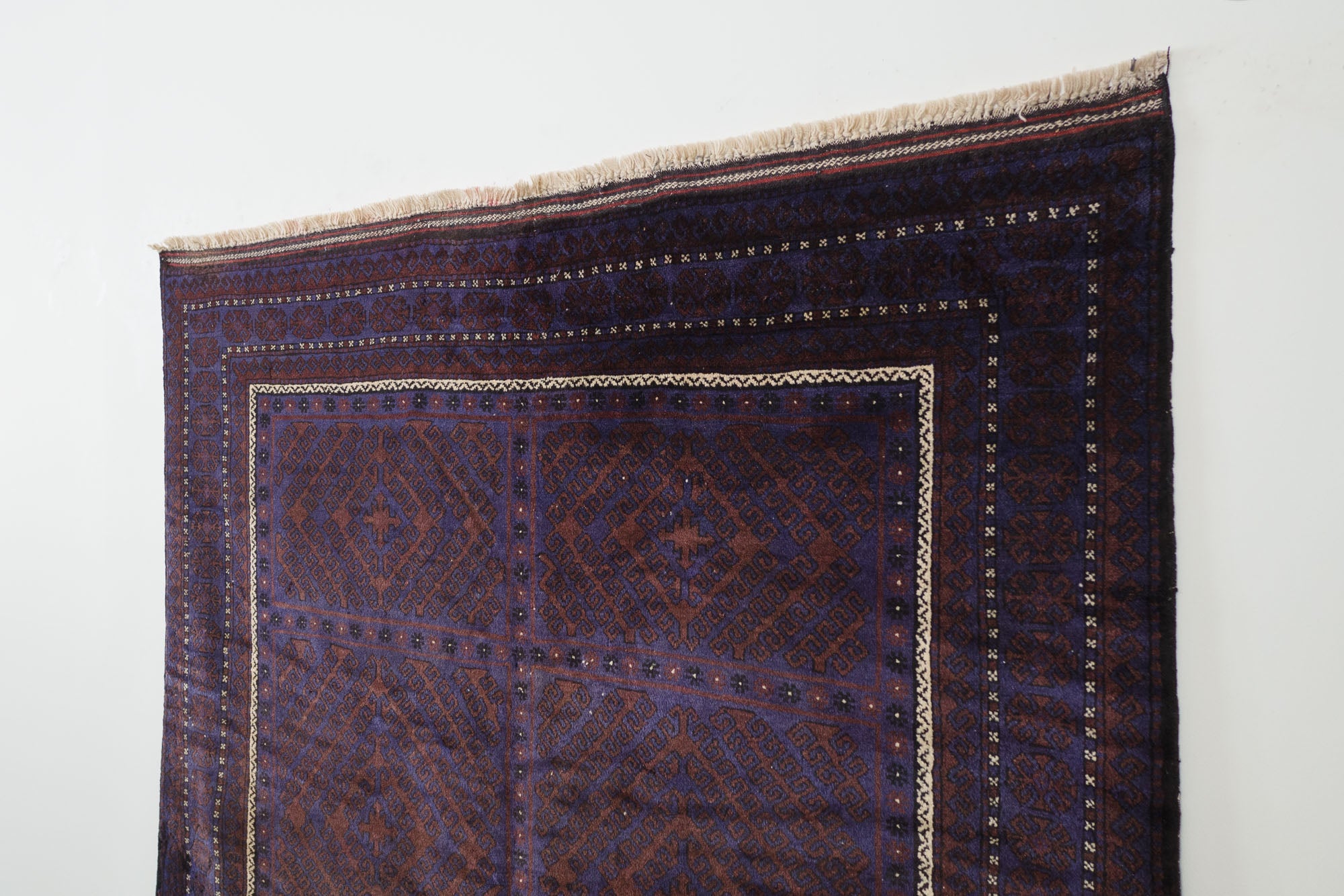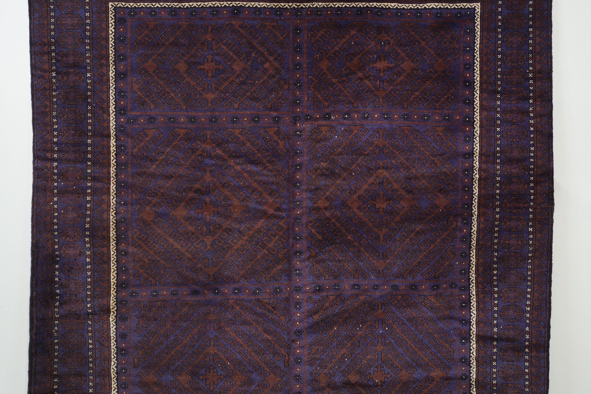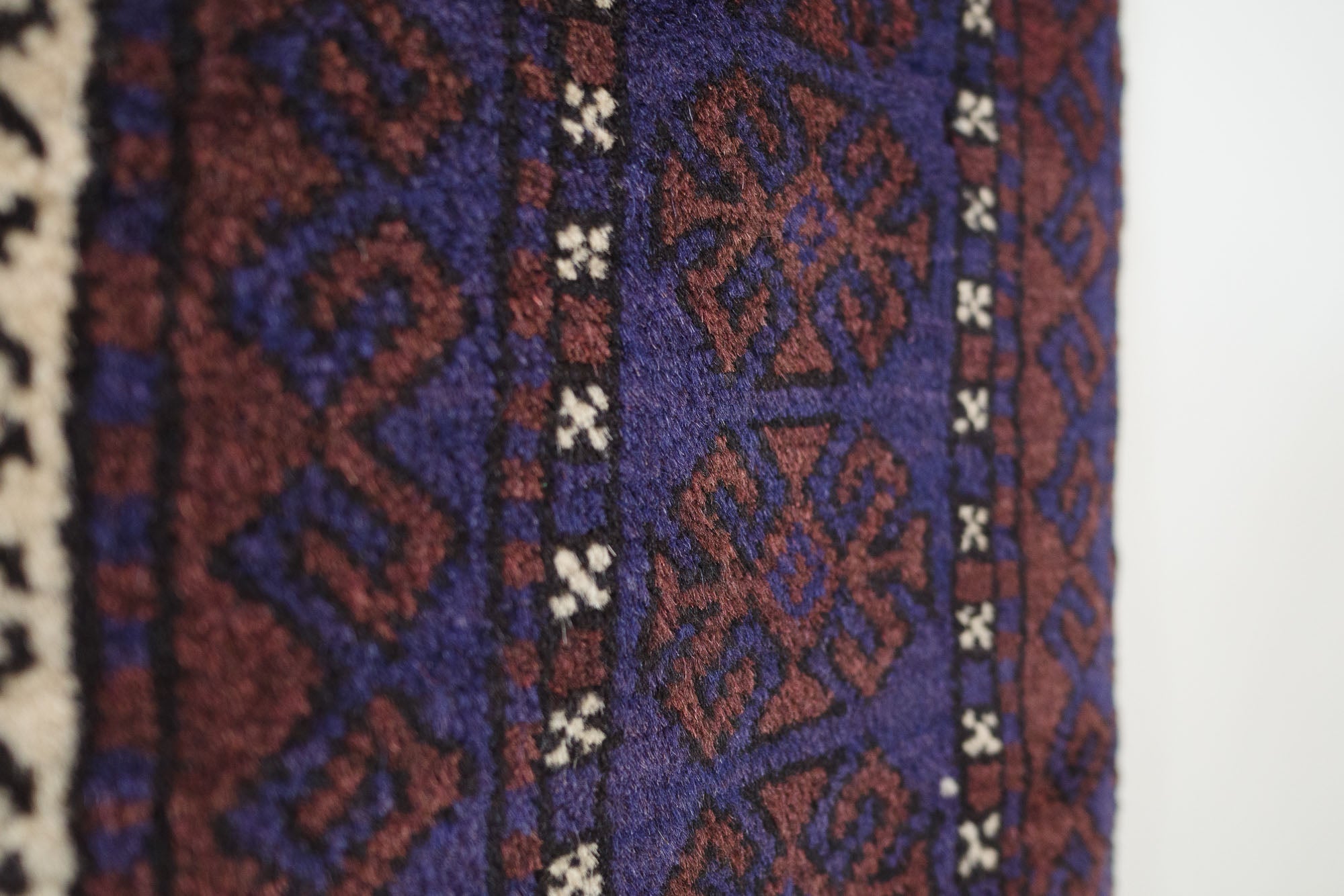 name: Sinaorigin: Afghanistanstyle: baluch, rug, carpetmaterial: hand knotted woolcolors: purple, navy, black, cream, redage: vintage, 1940-1970condition: good, age related wear - see picturesappraised value: $2092sku: a-436