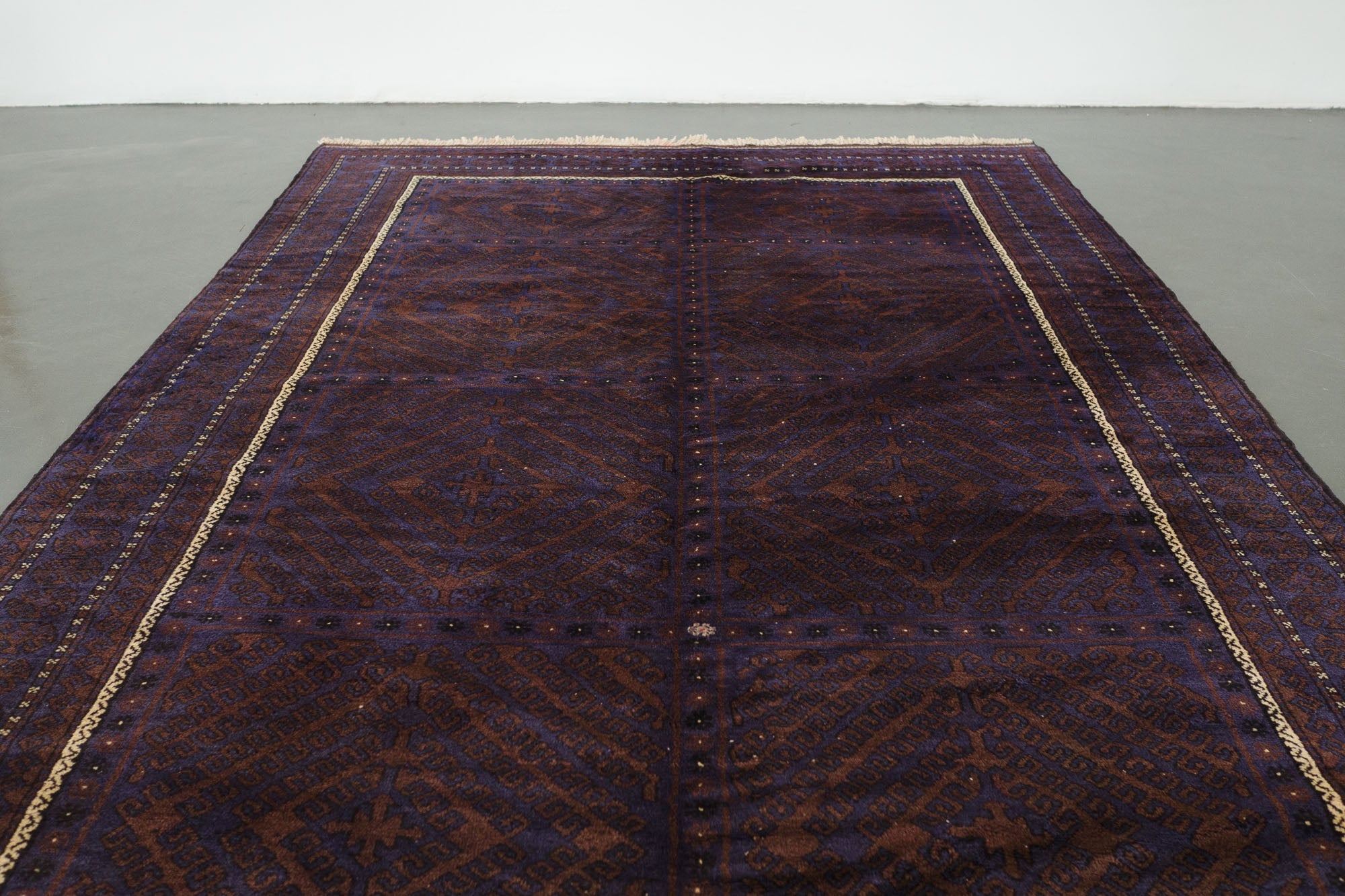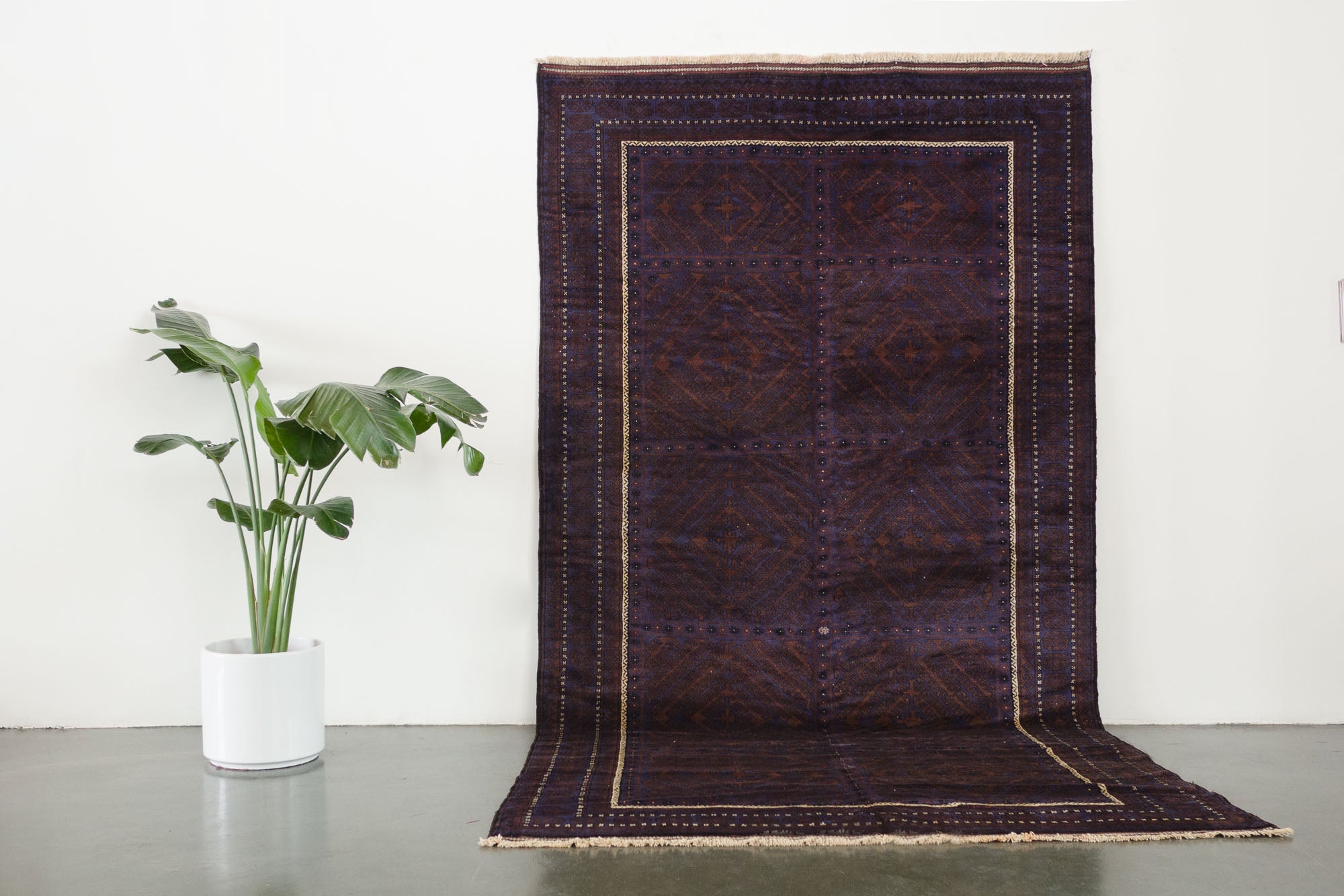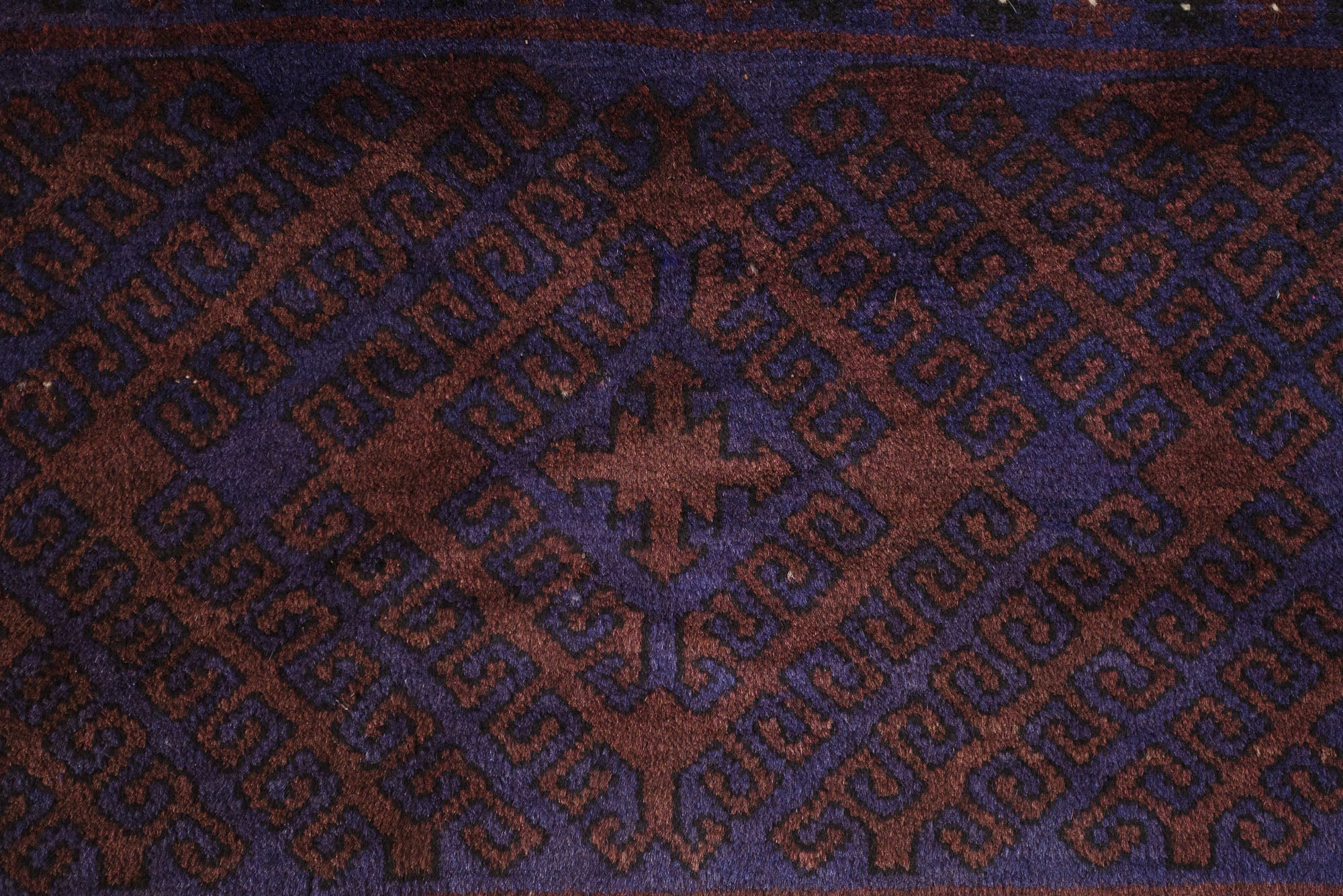 name: Sinaorigin: Afghanistanstyle: baluch, rug, carpetmaterial: hand knotted woolcolors: purple, navy, black, cream, redage: vintage, 1940-1970condition: good, age related wear - see picturesappraised value: $2092sku: a-436