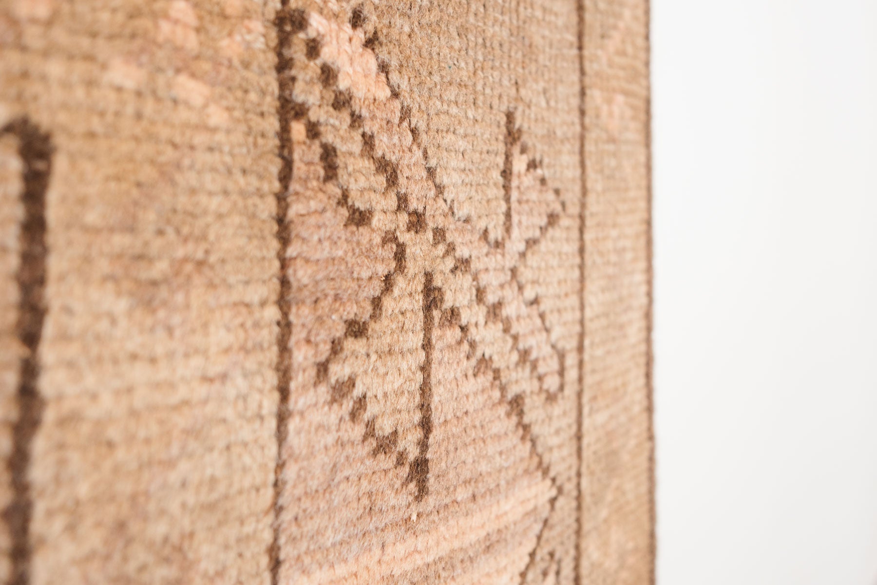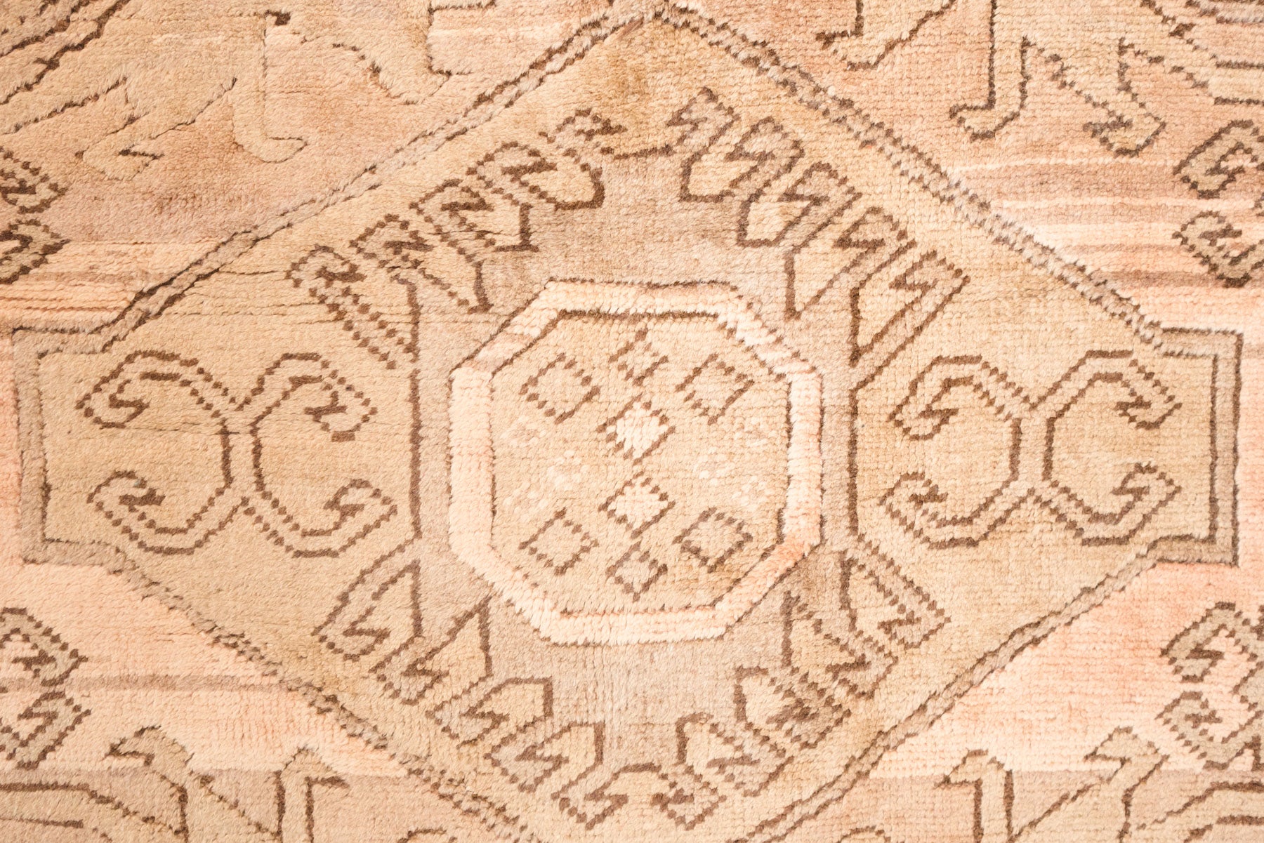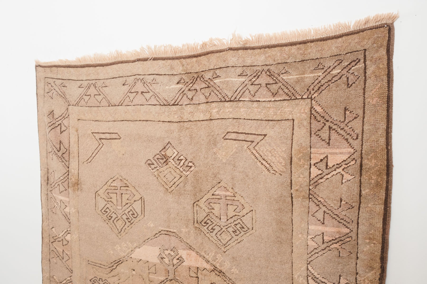 name: Caferorigin: Turkey, Shiravanstyle: sunwashed, rug, carpetmaterial: hand knotted wool colors: camel, pink, brownage: vintage condition: good, age related wear - see pictures