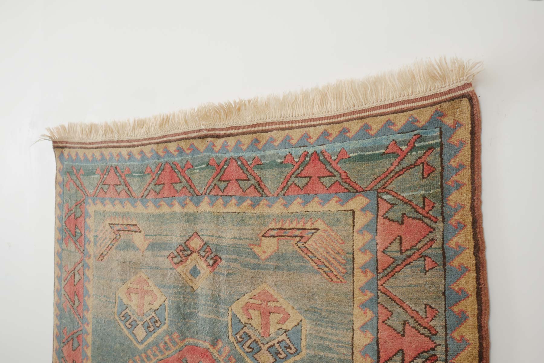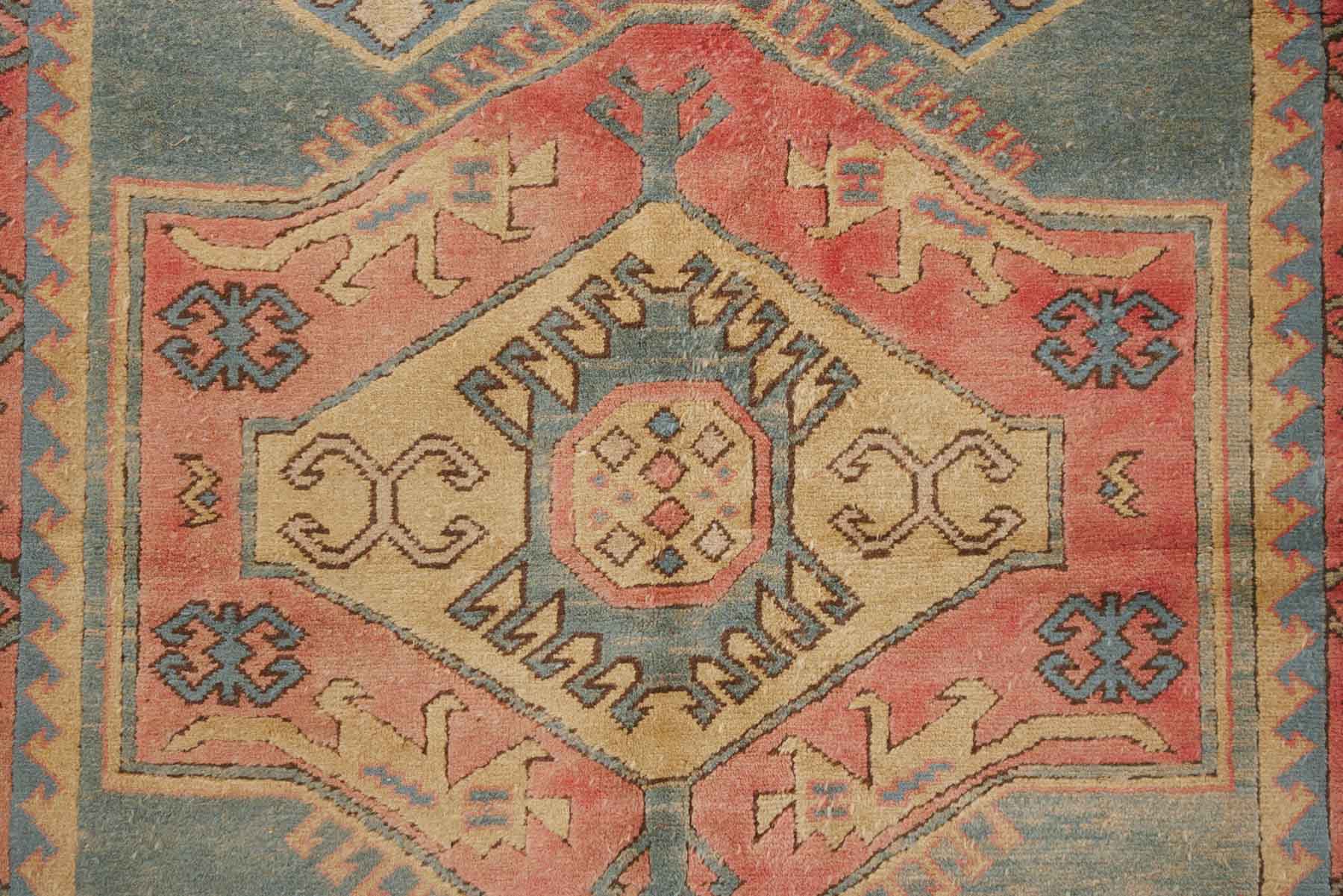 name: Erdenorigin: Turkeystyle: rug, carpet material: hand knotted woolcolors: red, peach, gold, green, blue, brown age: vintagecondition: good, age related wear / small hole - see pictures