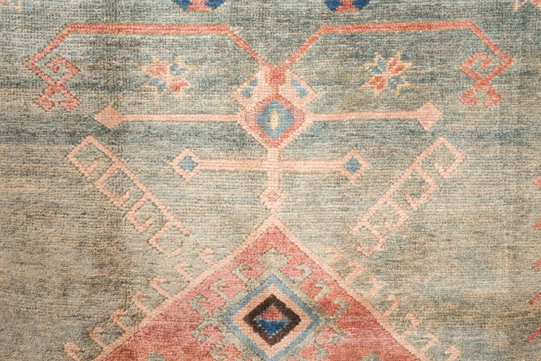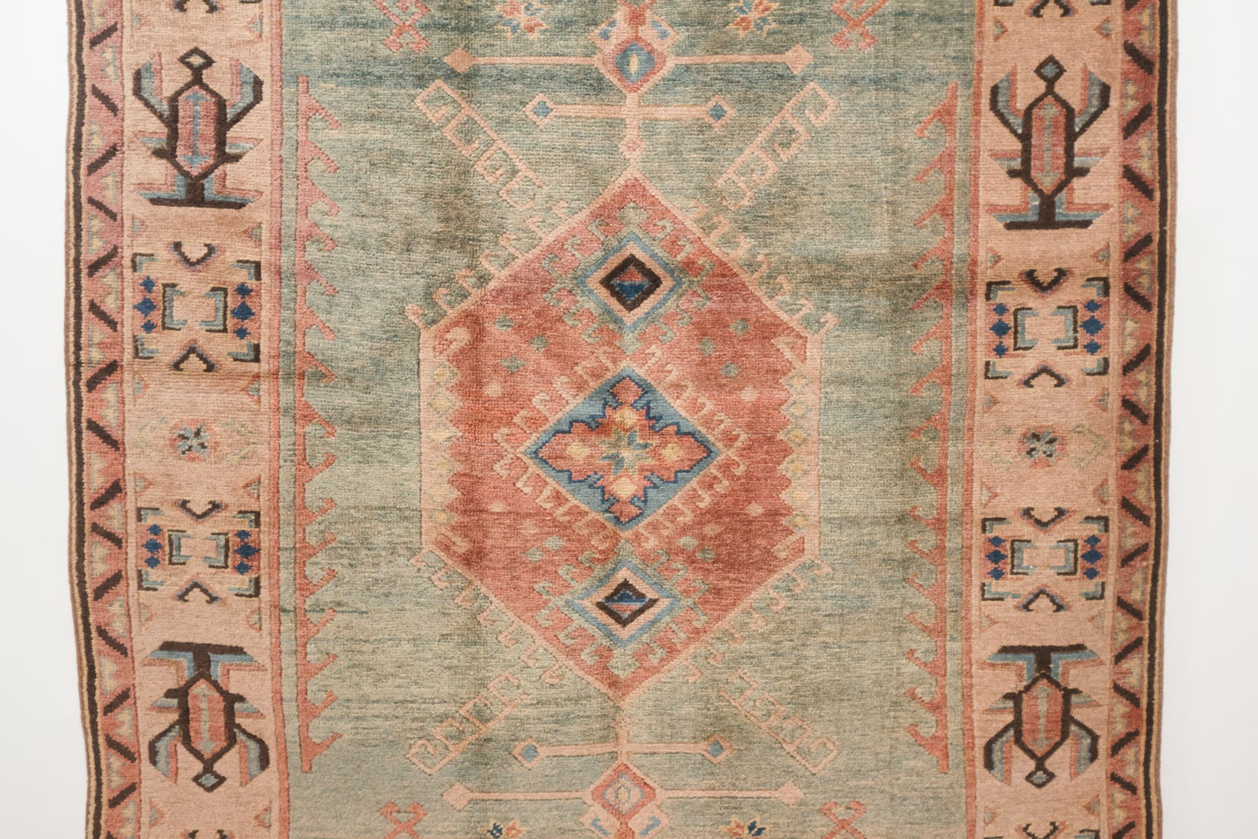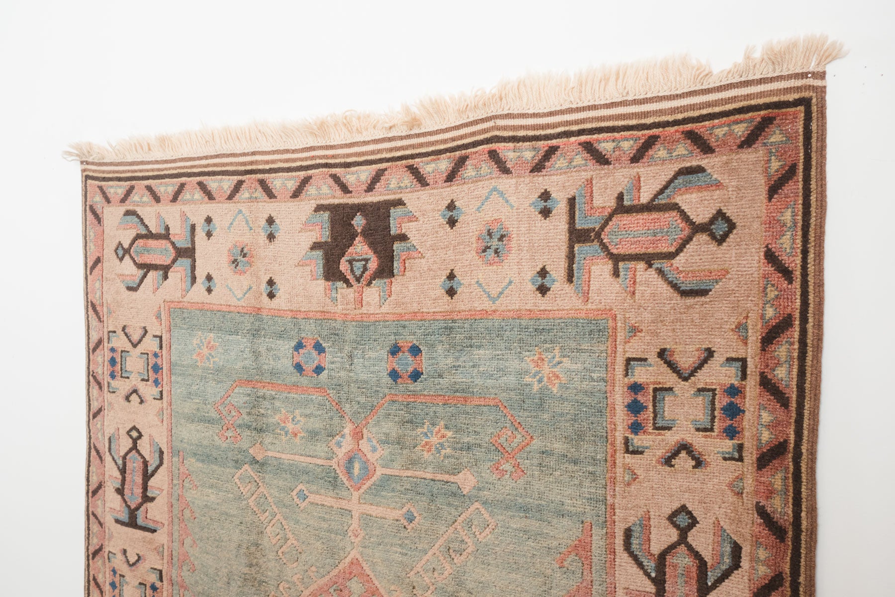 name: Candanorigin: Turkey, Shiravanstyle: rug, carpetmaterial: hand knotted woolcolors: green, pink, blues, camel, brown, cream age: vintage condition: good, age related wear - see pictures