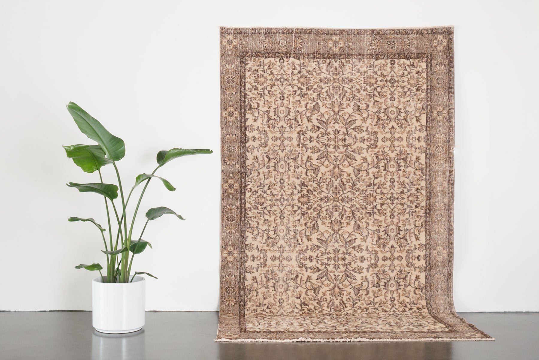 name: Dehastyle: hand knotted, Turkish, sunwashed, rug, carpetmaterial: woolcolors: camel, brown, tan, black, creamage: vintage condition: good, age related wear - see pictures