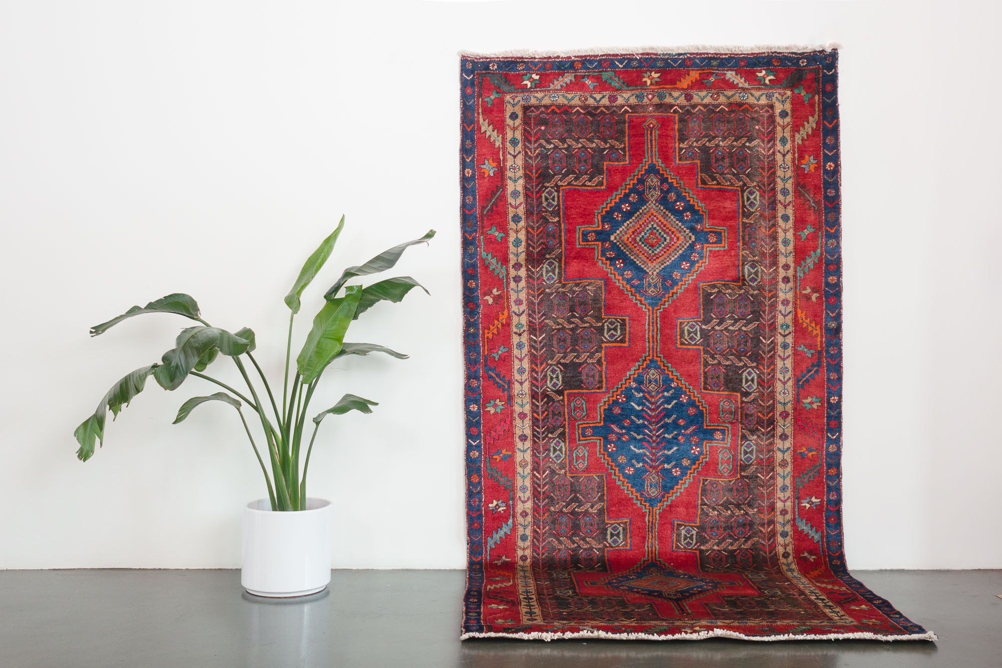 name: Baghiiorigin: Iran (Persian)style: rug, carpetmaterial: hand knotted woolcolors: red, orange, navy, brown, cream, greenage: vintage, 1940-1970condition: good, age related wear - see picturesappraised value: $2028sku: p-1128