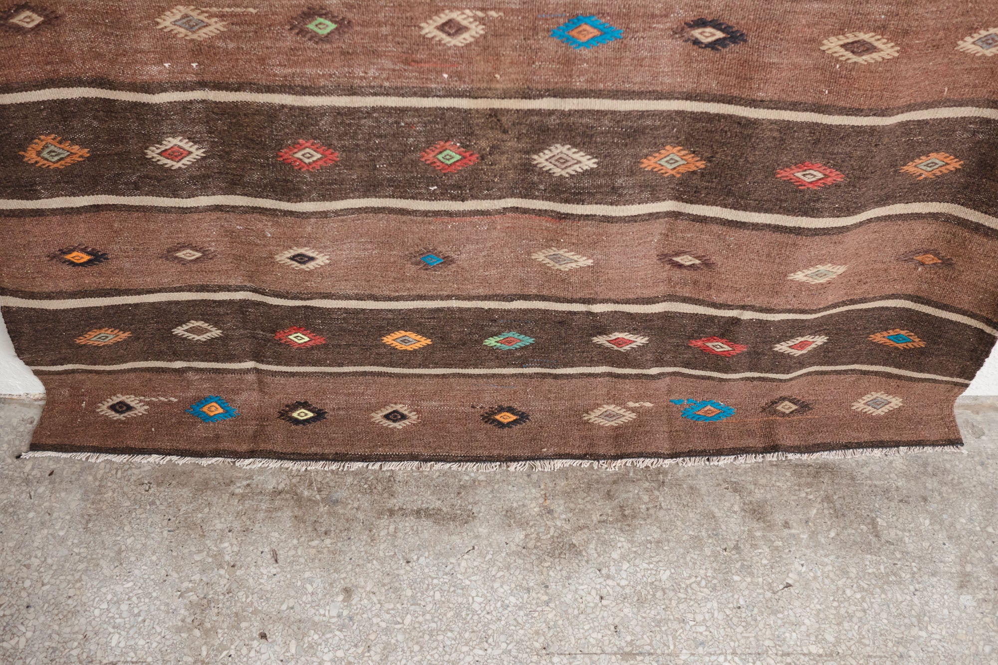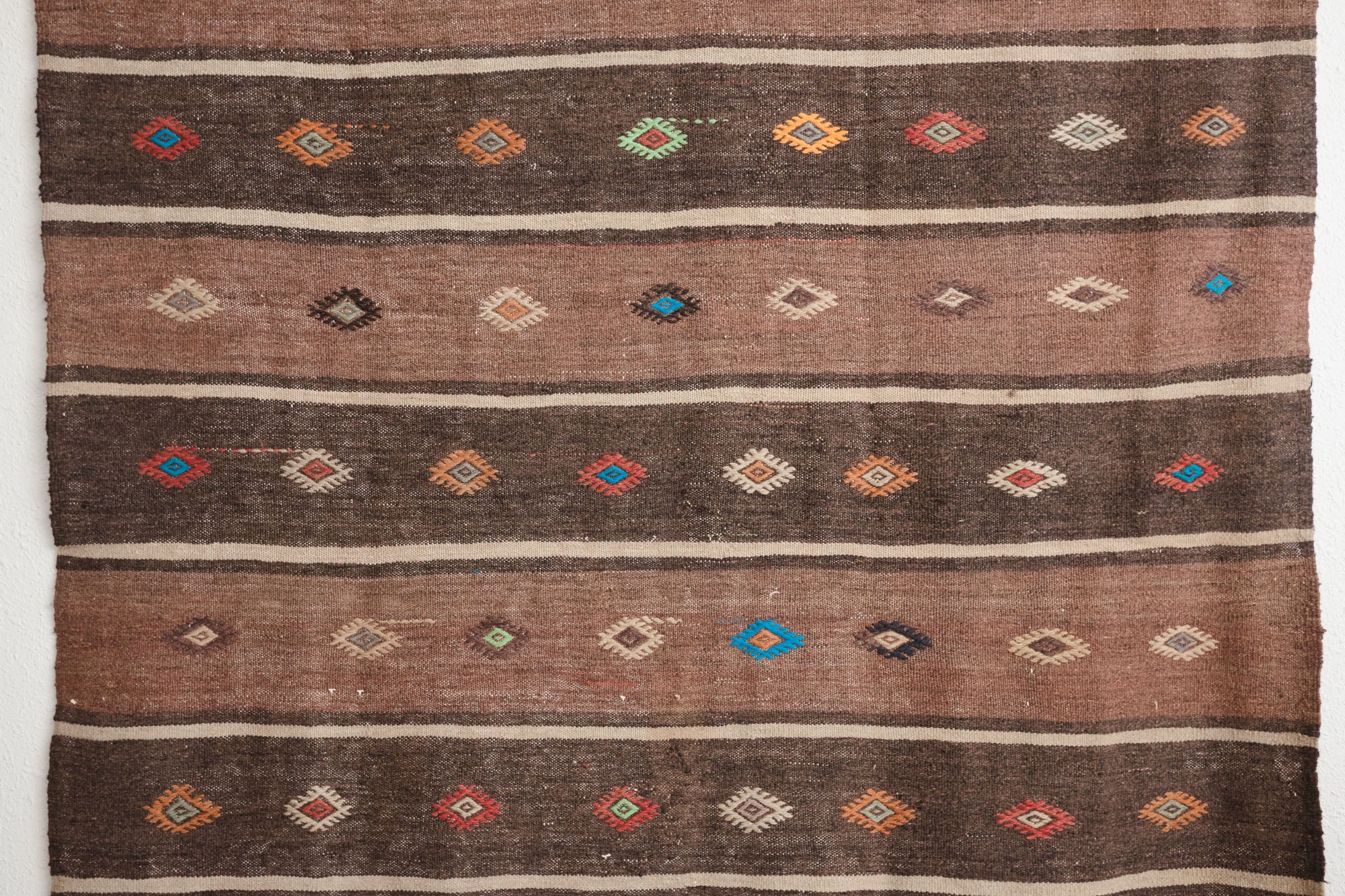 name: Carenorigin: Turkeystyle: flat weave, kilim, rug, carpetmaterial: hand woven woolcolor: red, orange, green, blue, camel, cream, brown, grayage: vintage condition: good, age related wear - see pictures