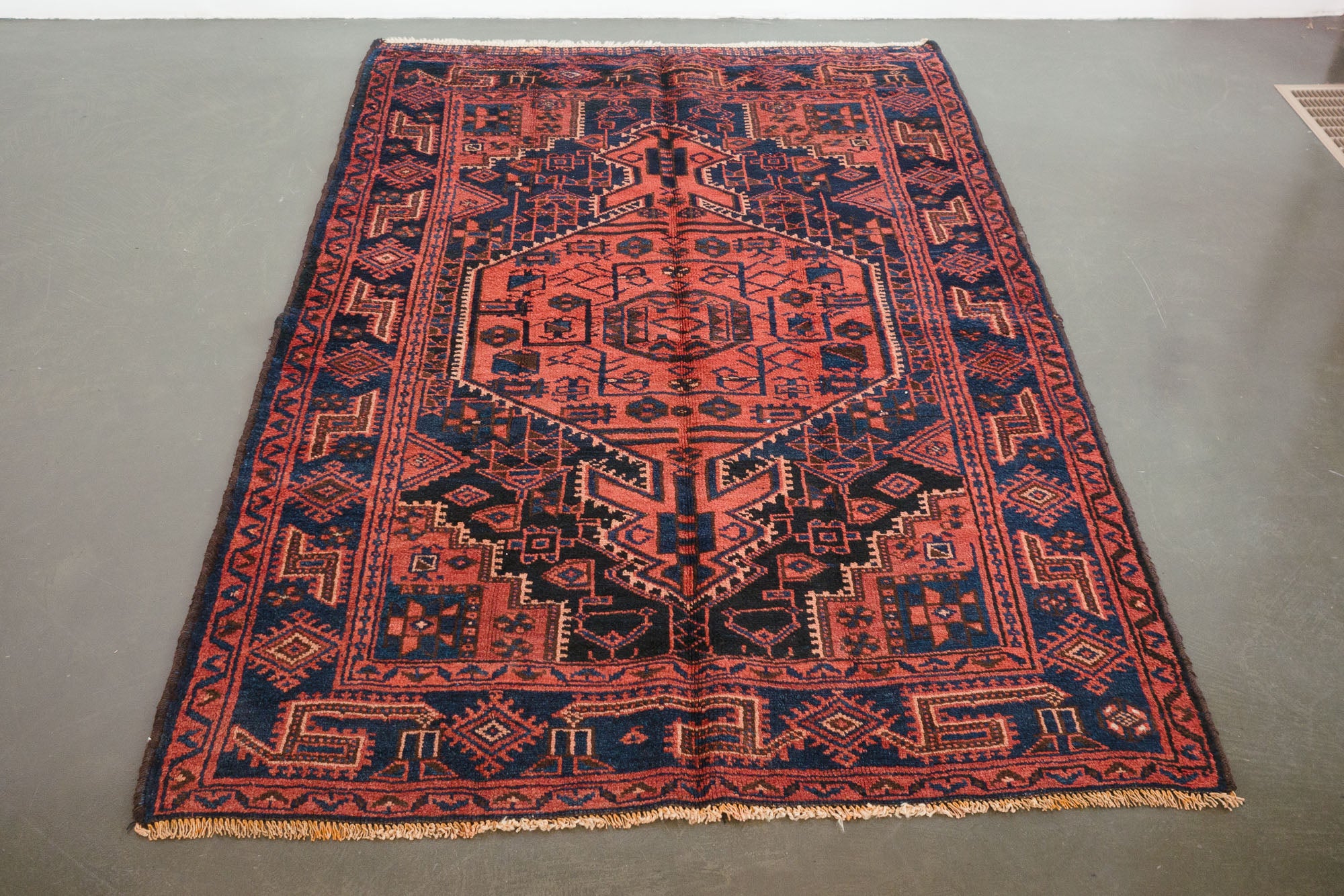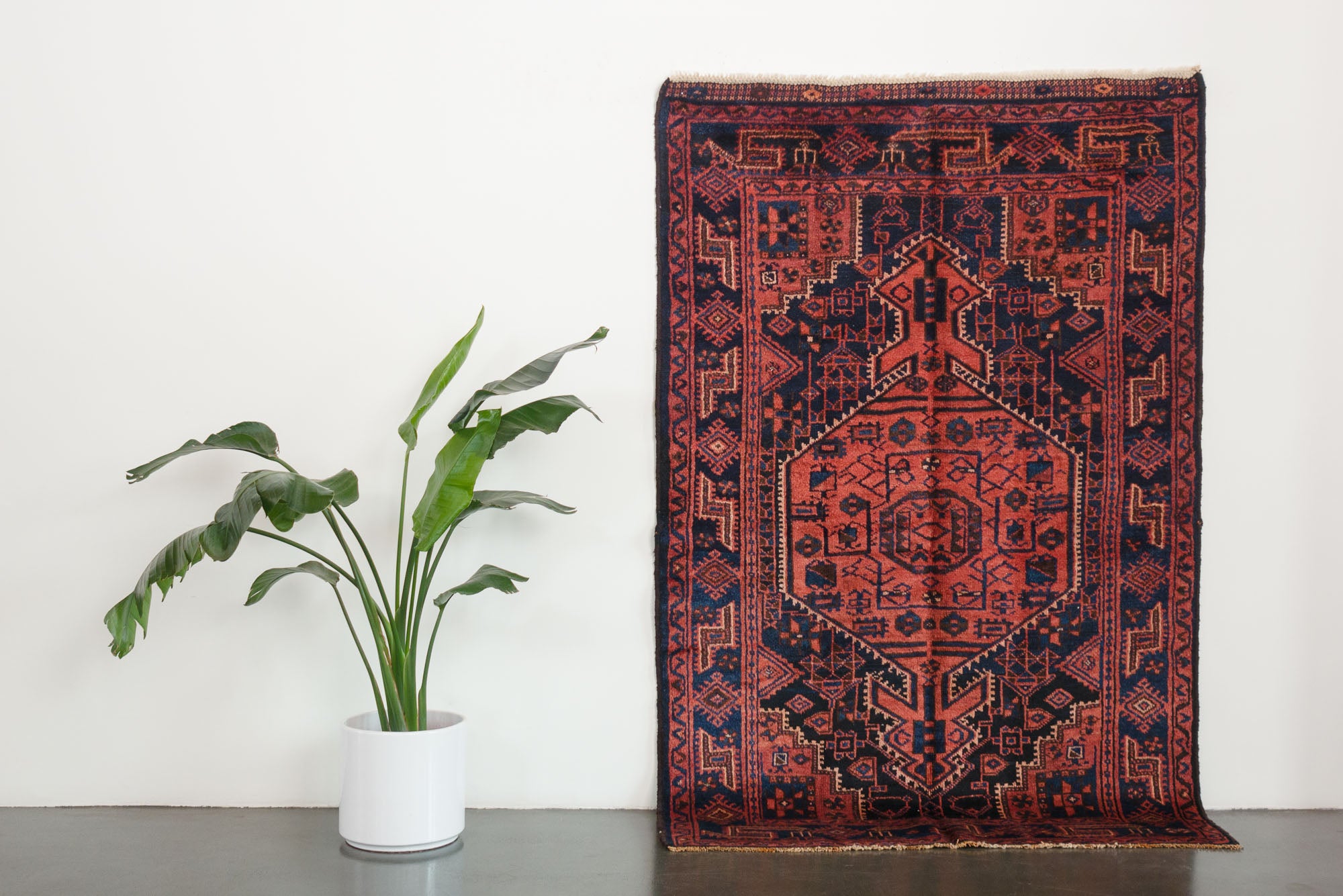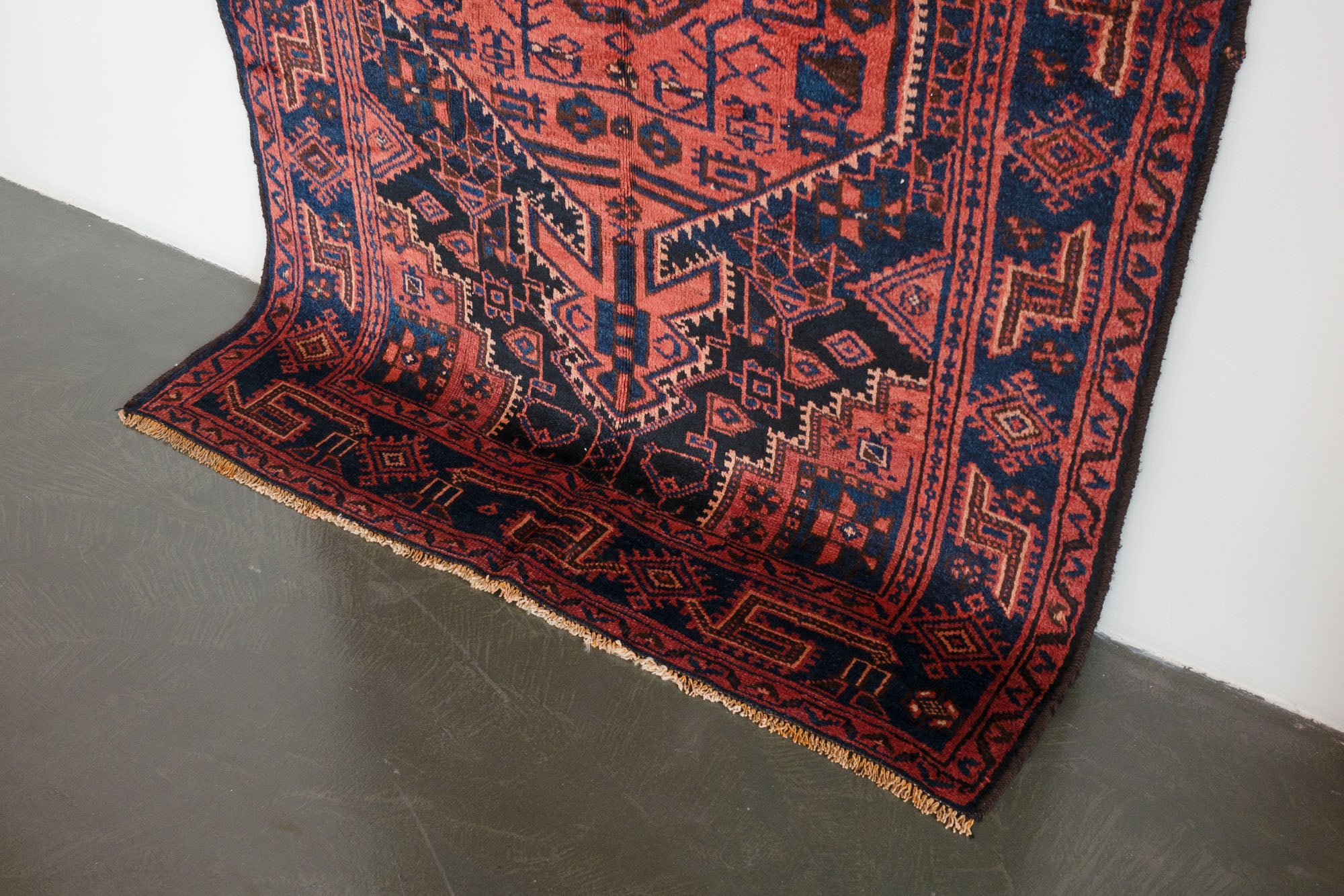 name: Saeedorigin: Iran (Persian)style: rug, carpetmaterial: hand knotted woolcolors: red, navy, black, brown, pink, orangeage: vintage, 1940-1970condition: good, age related wear - see picturesappraised value: $2336sku: p-1127