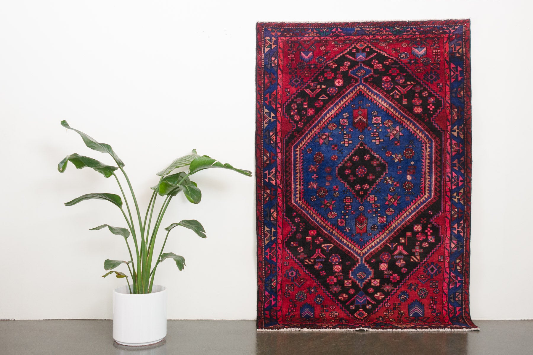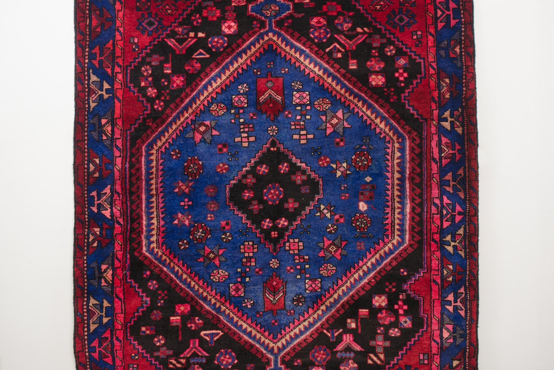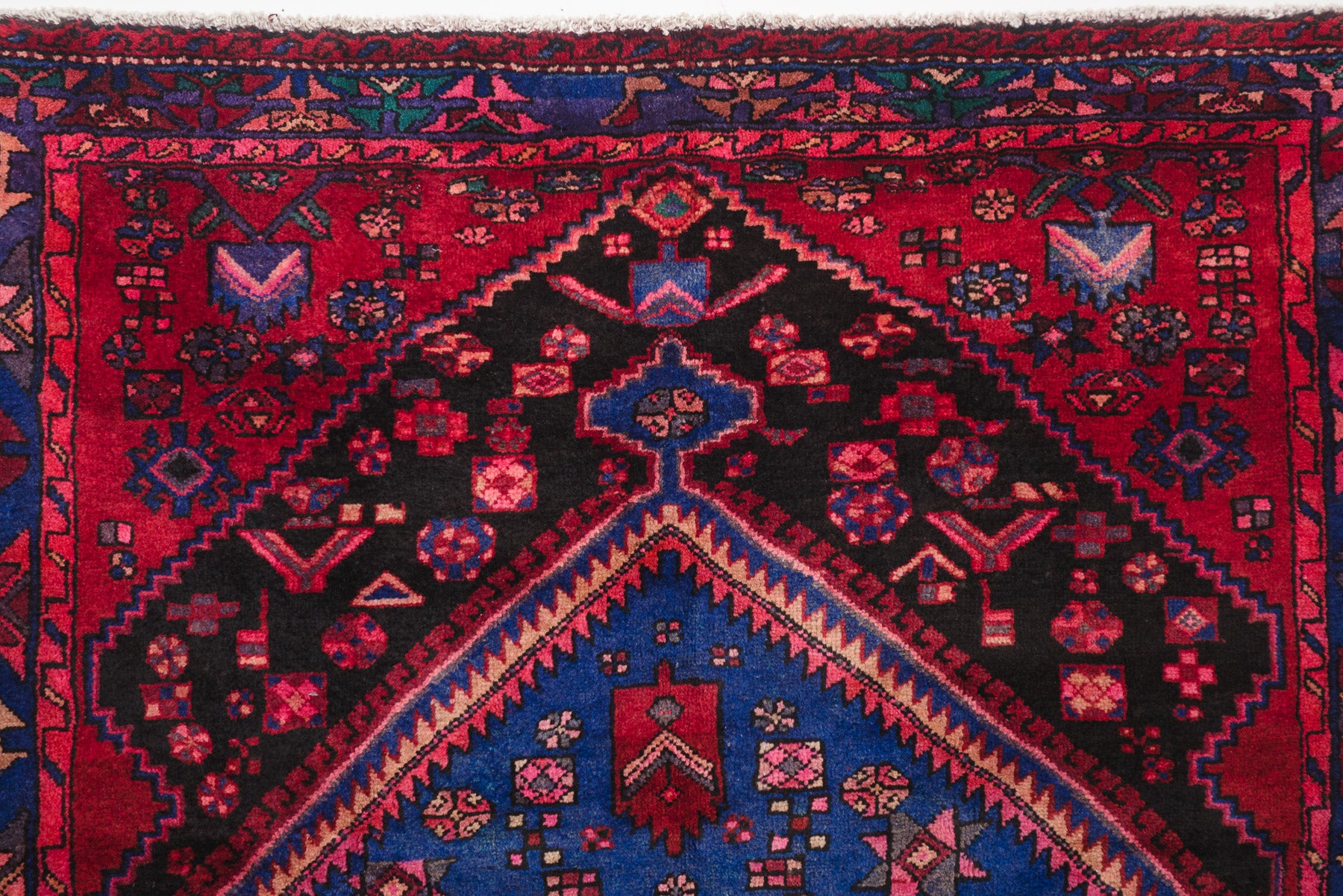 name: Babakorigin: Iran (Persian), Hamedanstyle: rug, carpetmaterial: hand knotted woolcolors: red, blue, pinks, gray, black, creamage: vintagecondition: good, age related wear - see picturesappraised value: $2,700