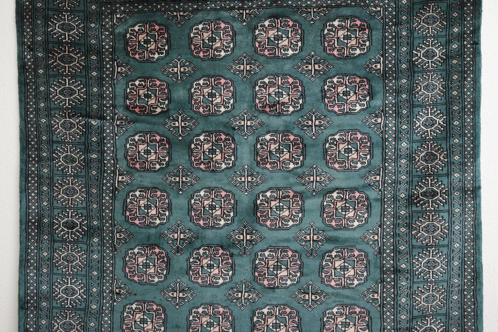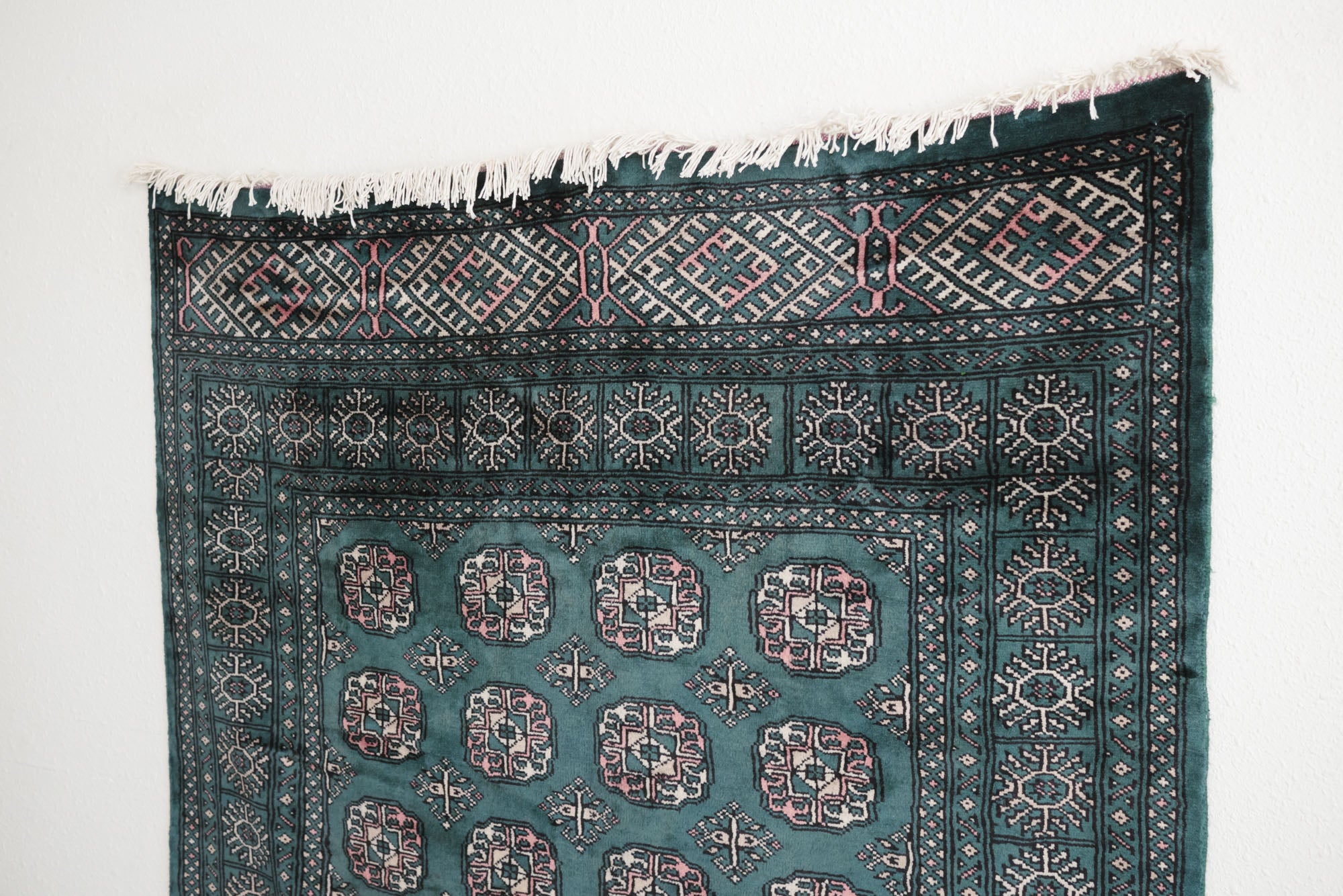name: Jadilstyle: hand knotted, Pakistani, Peshawar, Bokhara, rug, carpetmaterial: woolcolors: pink, tan, gray, cream, blackage: vintagecondition: good, age related wear - see pictures