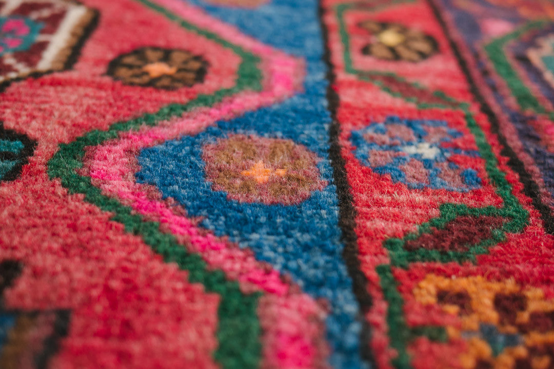 colors: pink, blues, purple, black, yellow, cream, brown, orange