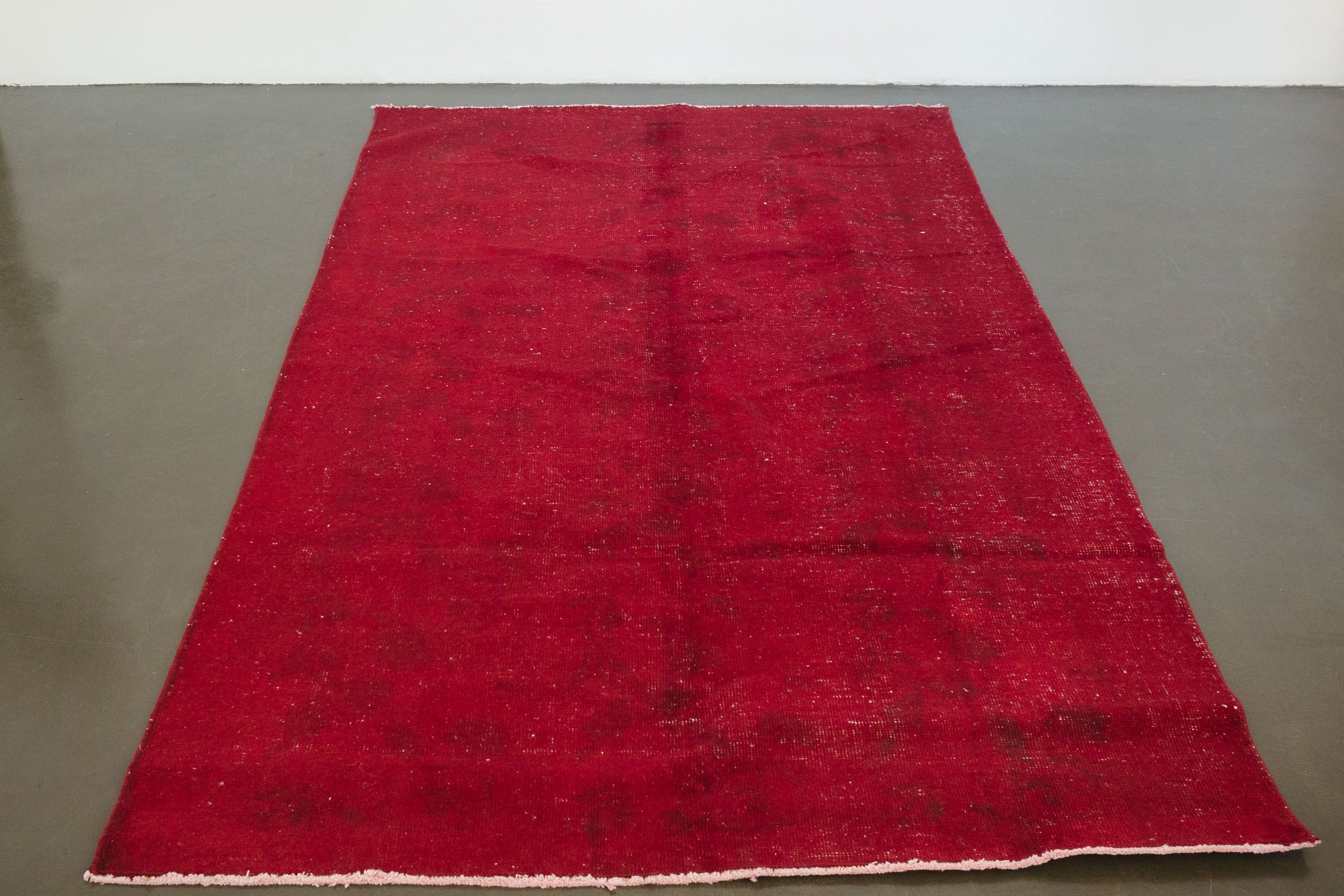 name: Okanerorigin: Turkeystyle: overdye, area rug, carpetmaterial: hand knotted woolcolors: red, blackage: vintage, 1940-1970condition: good, age related wear - see picturesappraised value: $1489sku: t-375