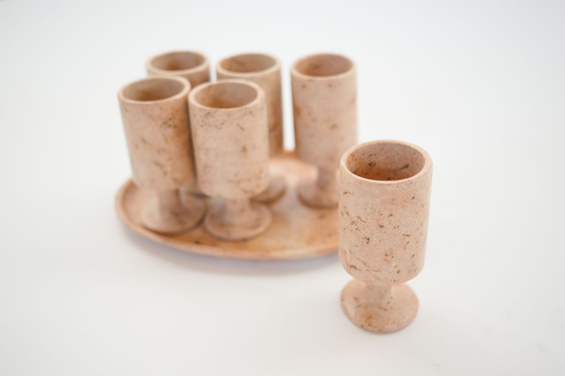 style: carved, stone, footed cup, shot glass, tray, 6-piece, setmaterial: stoneage: vintagecondition: good, age related wear - see pictures