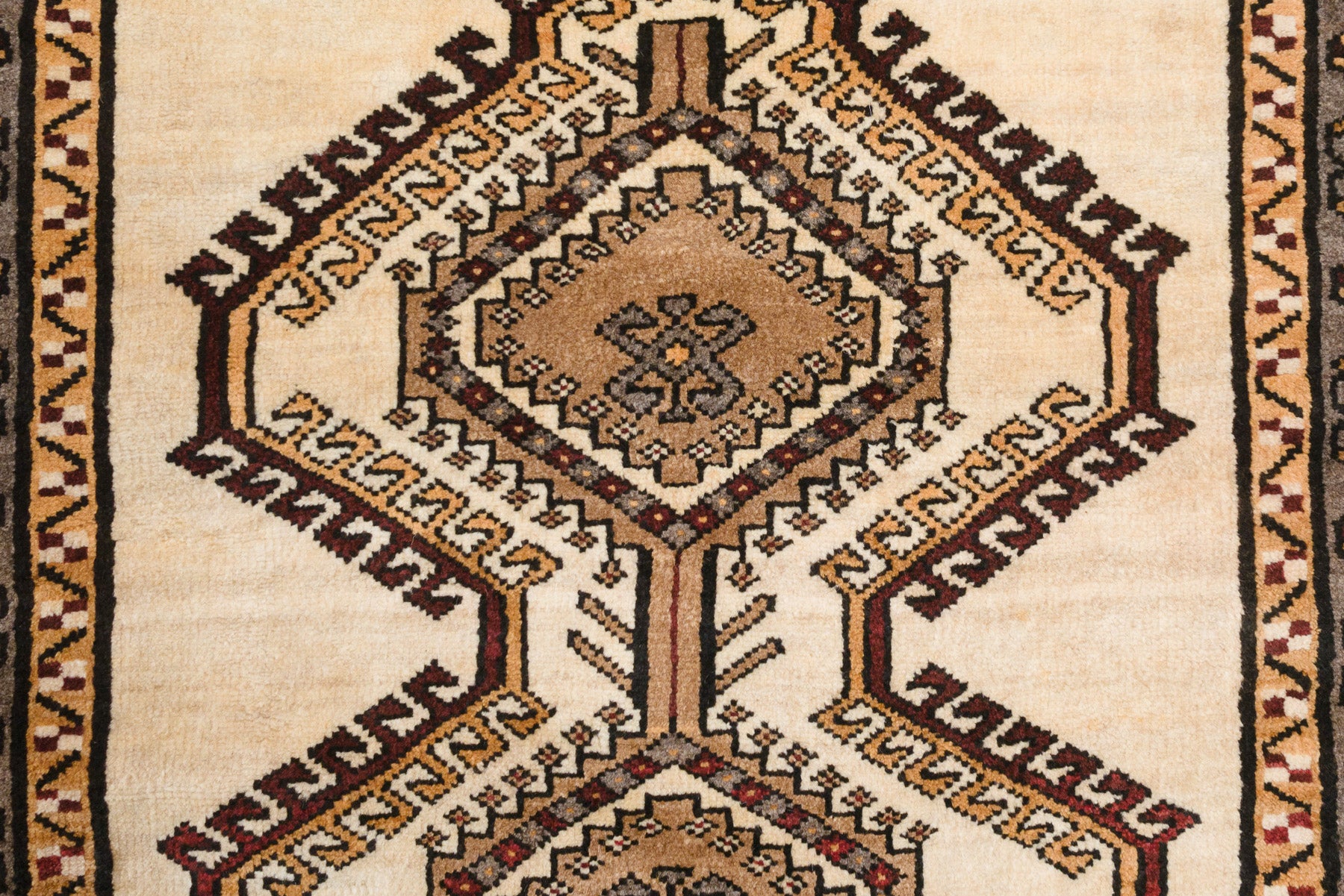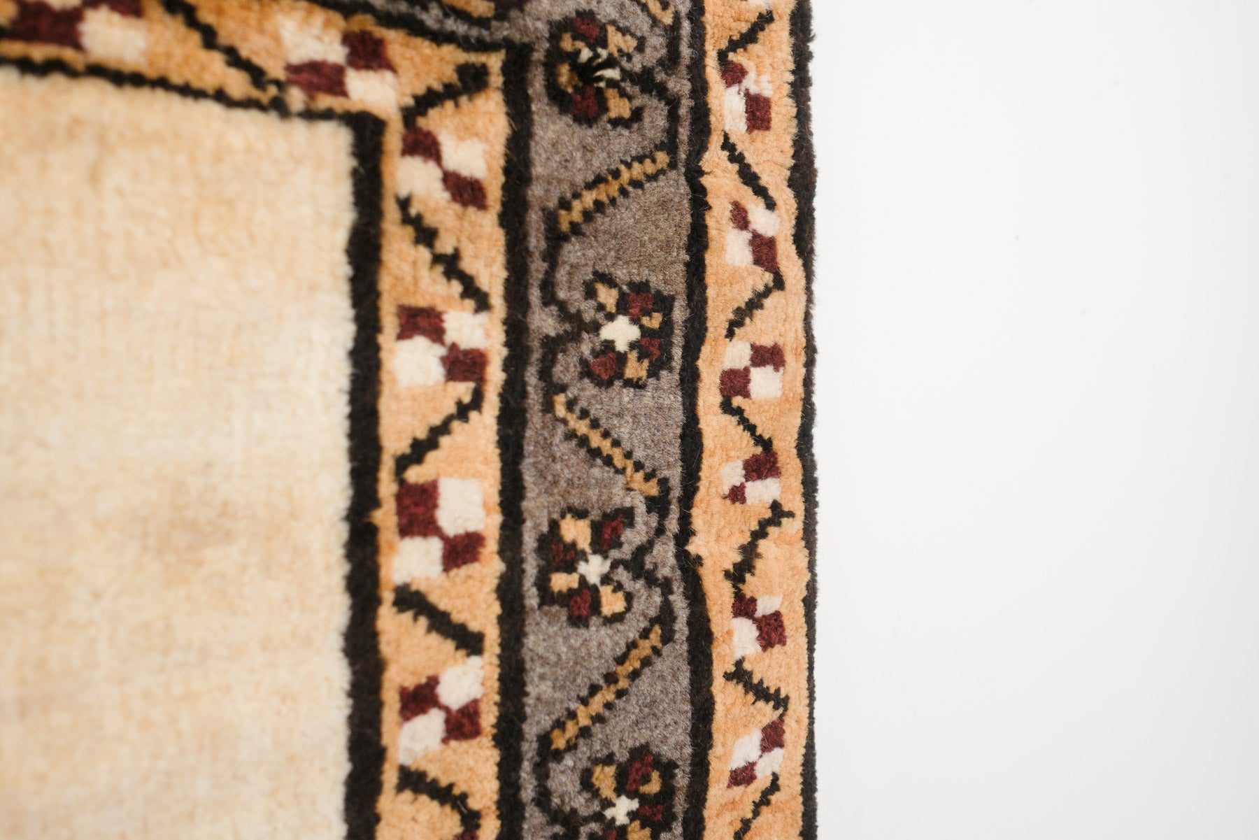 name: Daraorigin: Iran (Persian), Gabbehstyle: rug, carpetmaterial: hand knotted woolcolors: cream, browns, camel, gray, blackage: vintagecondition: good, age related wear - see picturesappraised value: $2500