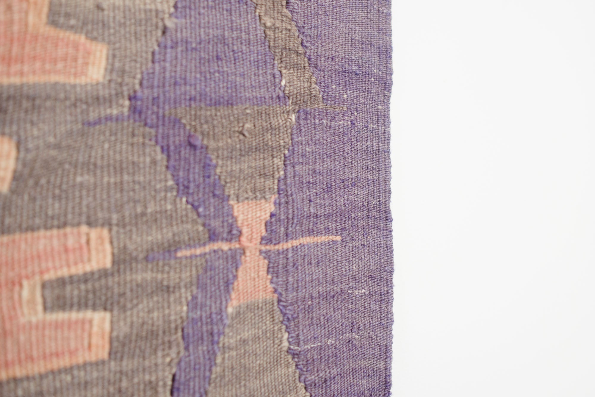 name: Gulerorigin: Turkeystyle: kilim, rug, carpetmaterial: hand woven woolcolors: pink, purple, green, creamage: vintage, 1940-1970condition: good, age related wear - see picturesappraised value: $1708sku: t-384