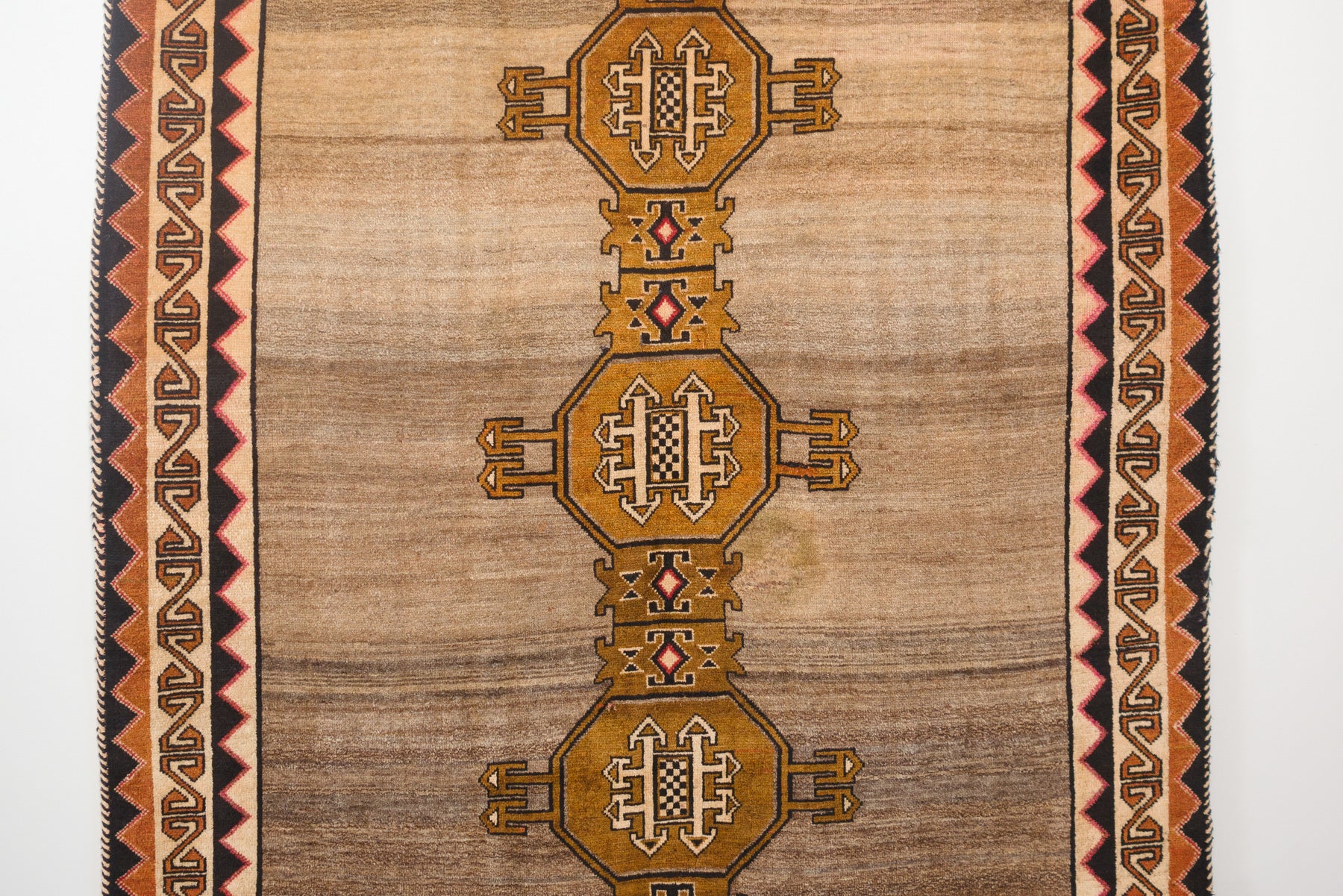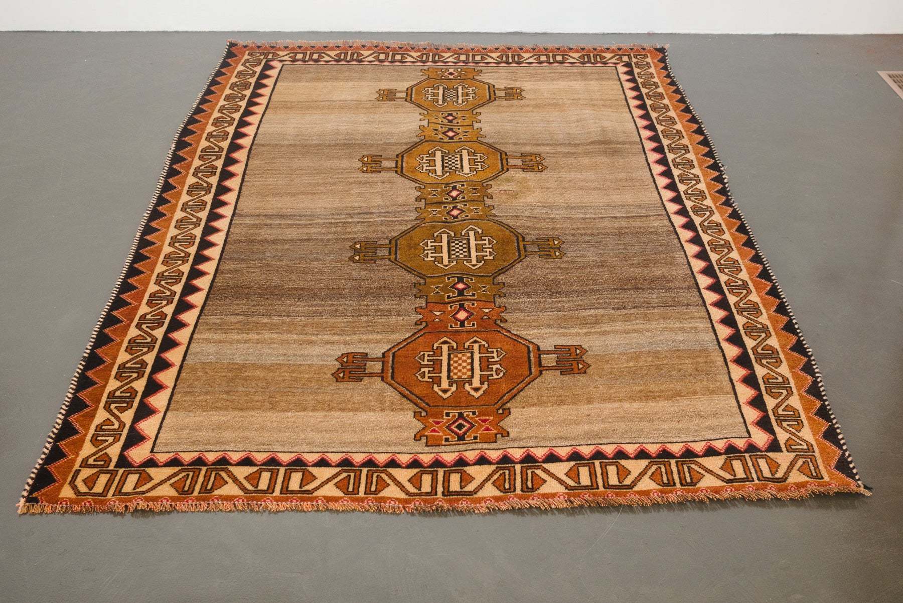 name: Yarvandorigin: Iran (Persian), Fars, Gabbeh, Shirazstyle: rug, carpetmaterial: hand knotted woolcolors: gray, camel, tan, brown, orange, black, pink, creamage: vintagecondition: good, age related wear - see picturesappraised value: $3,00065" x 94"(closest standard rug size is 6x8)Free domestic shipping on all rugs.Contact us for an international shipping quote.