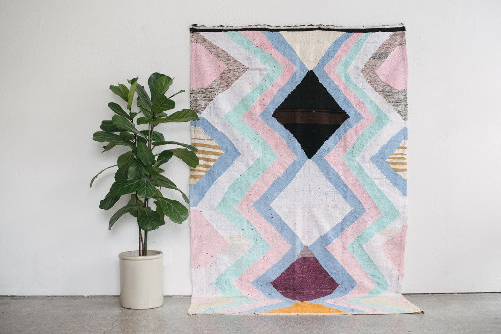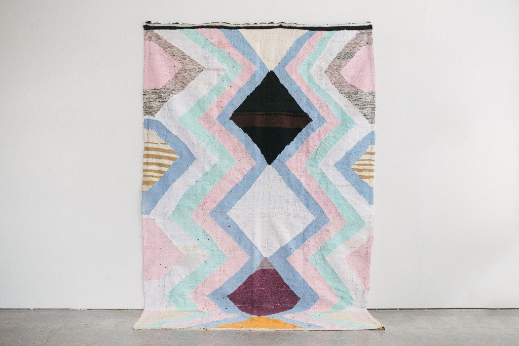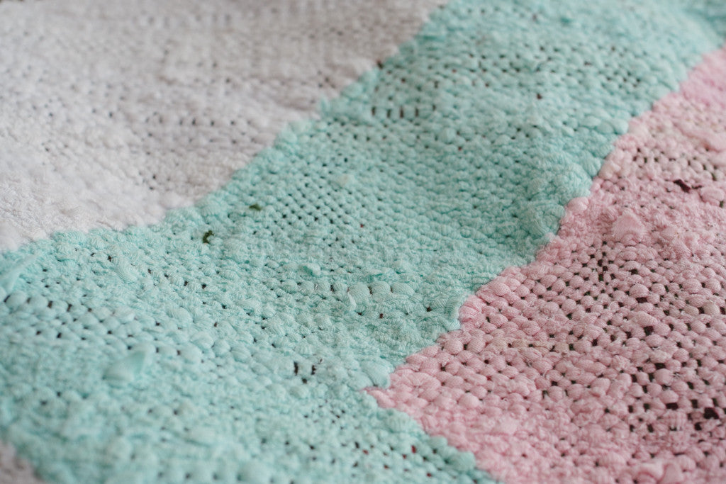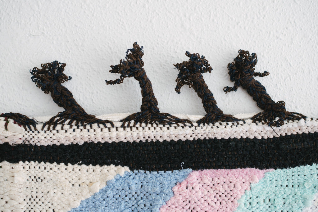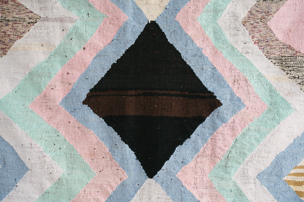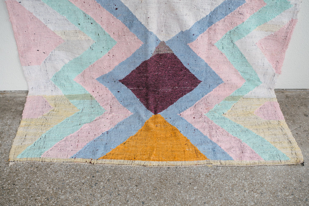 style: hand knotted, Moroccan, boucherouite, rag, rug, carpet