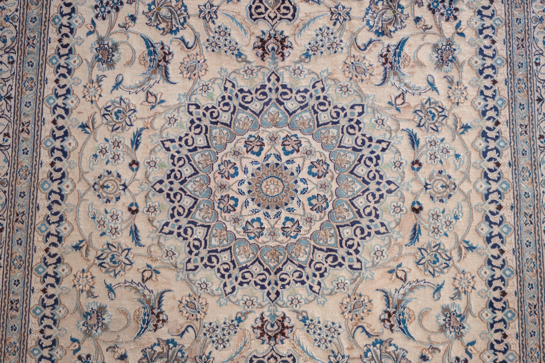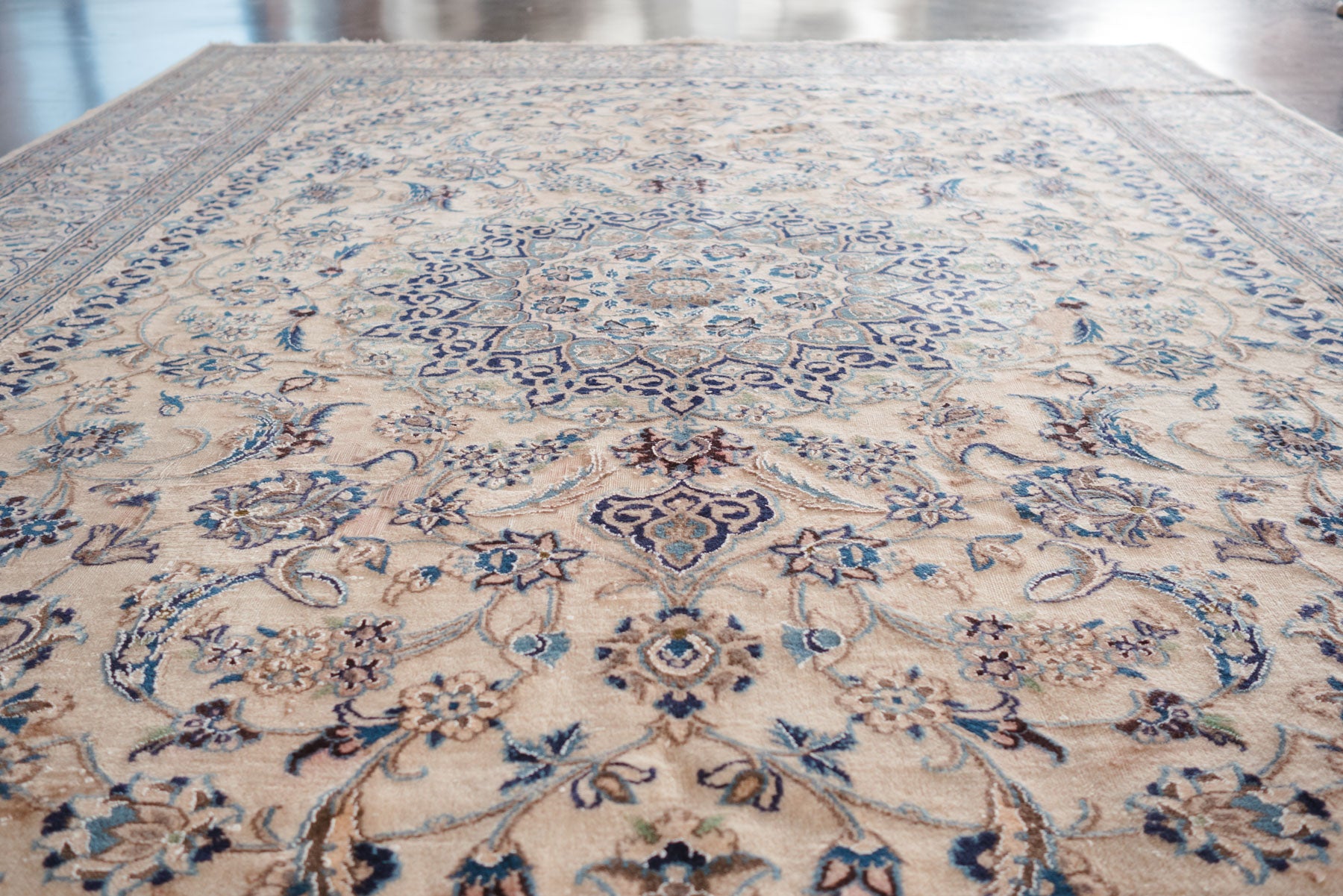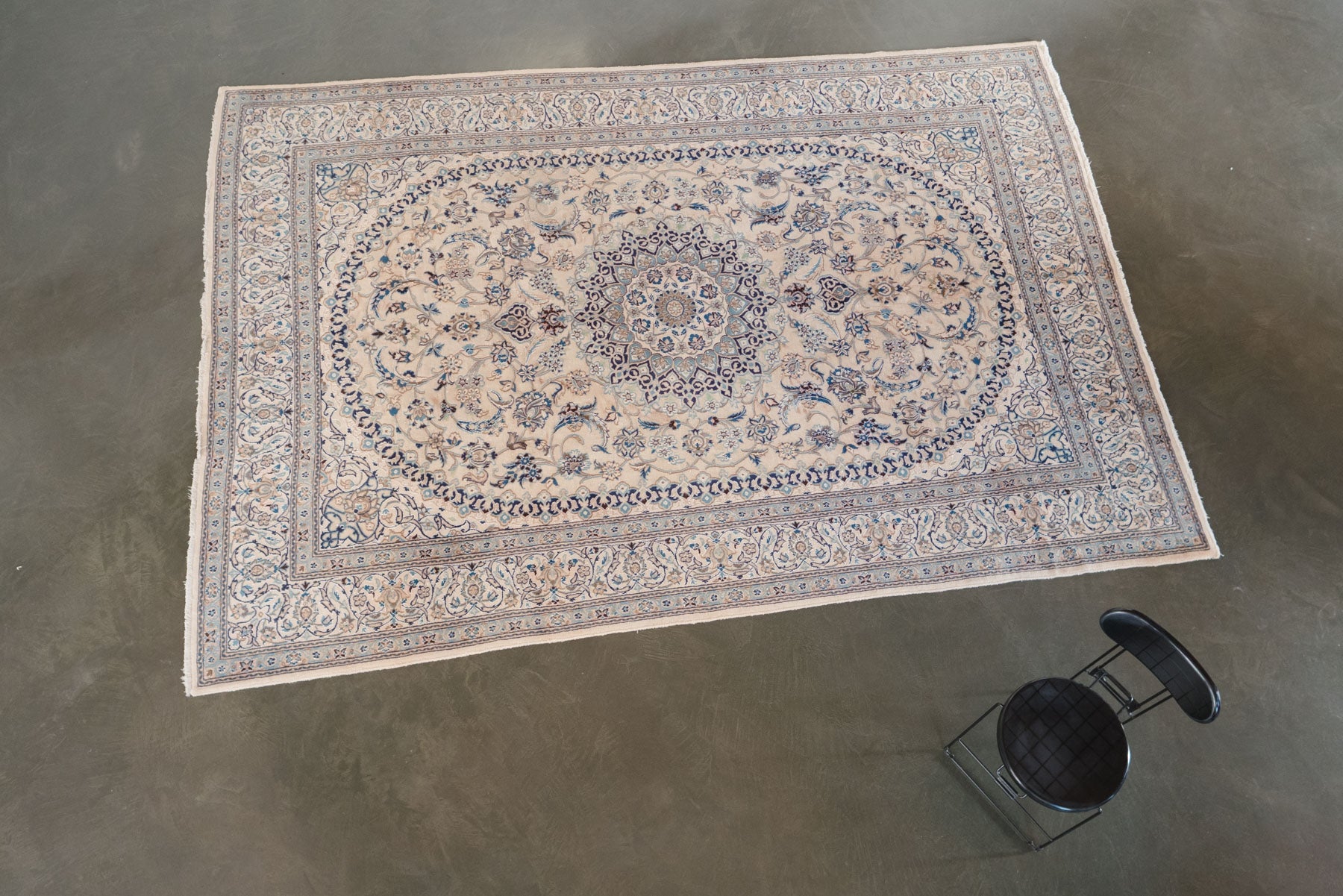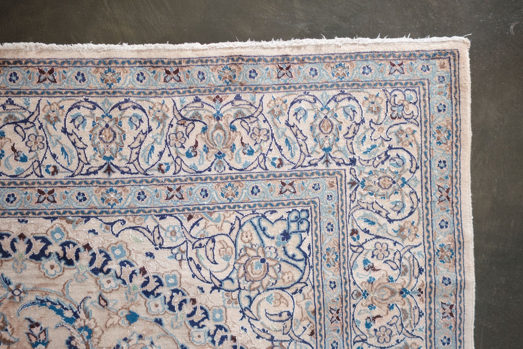 name: Kavanstyle: hand knotted, Persian, rug, carpet material: woolcolors: cream, camel, tan, blue, navy, dusty pink, grayage: vintage condition: good, age related wear - see pictures