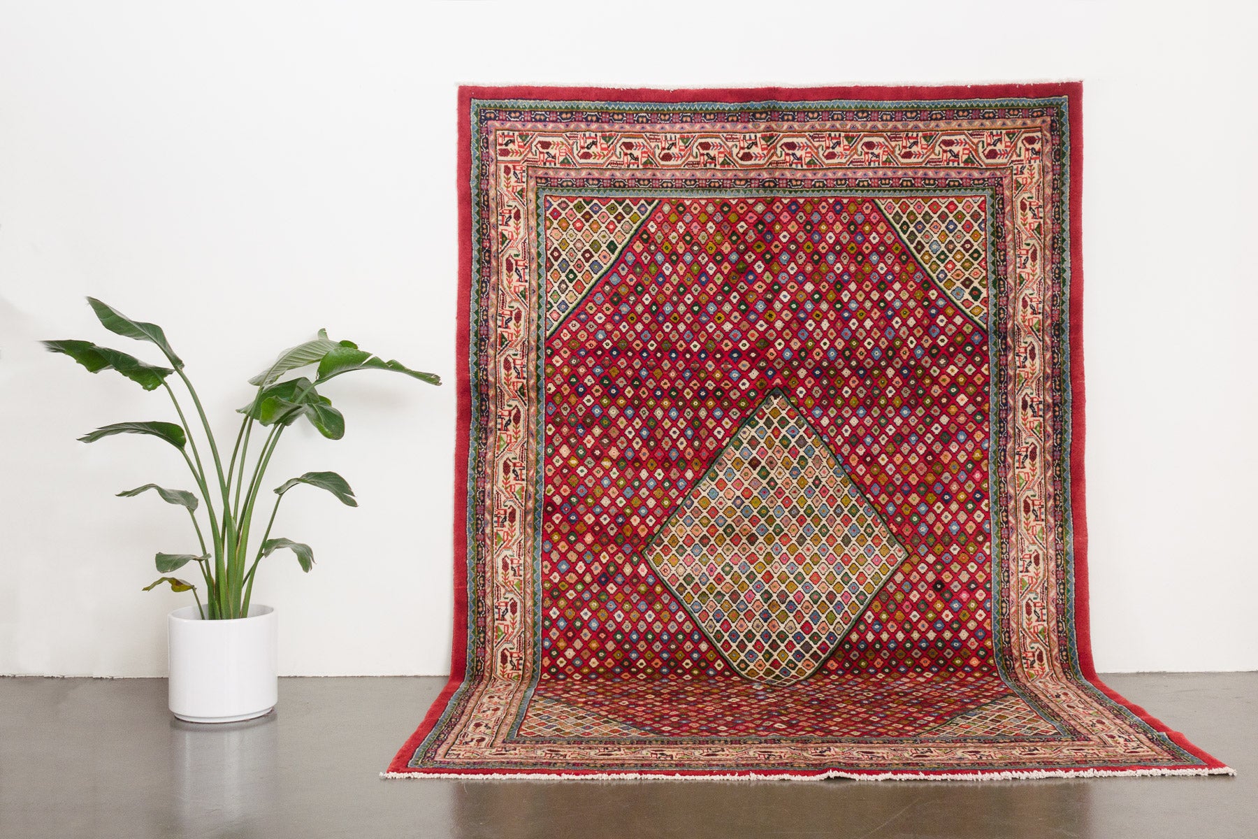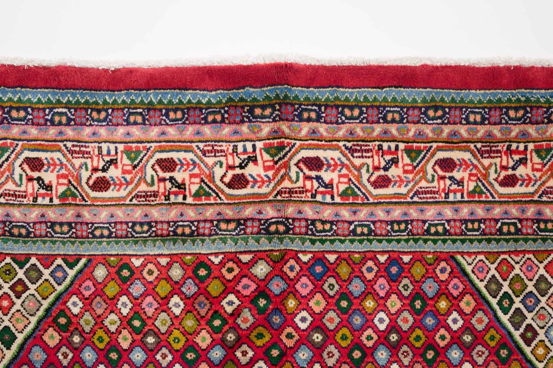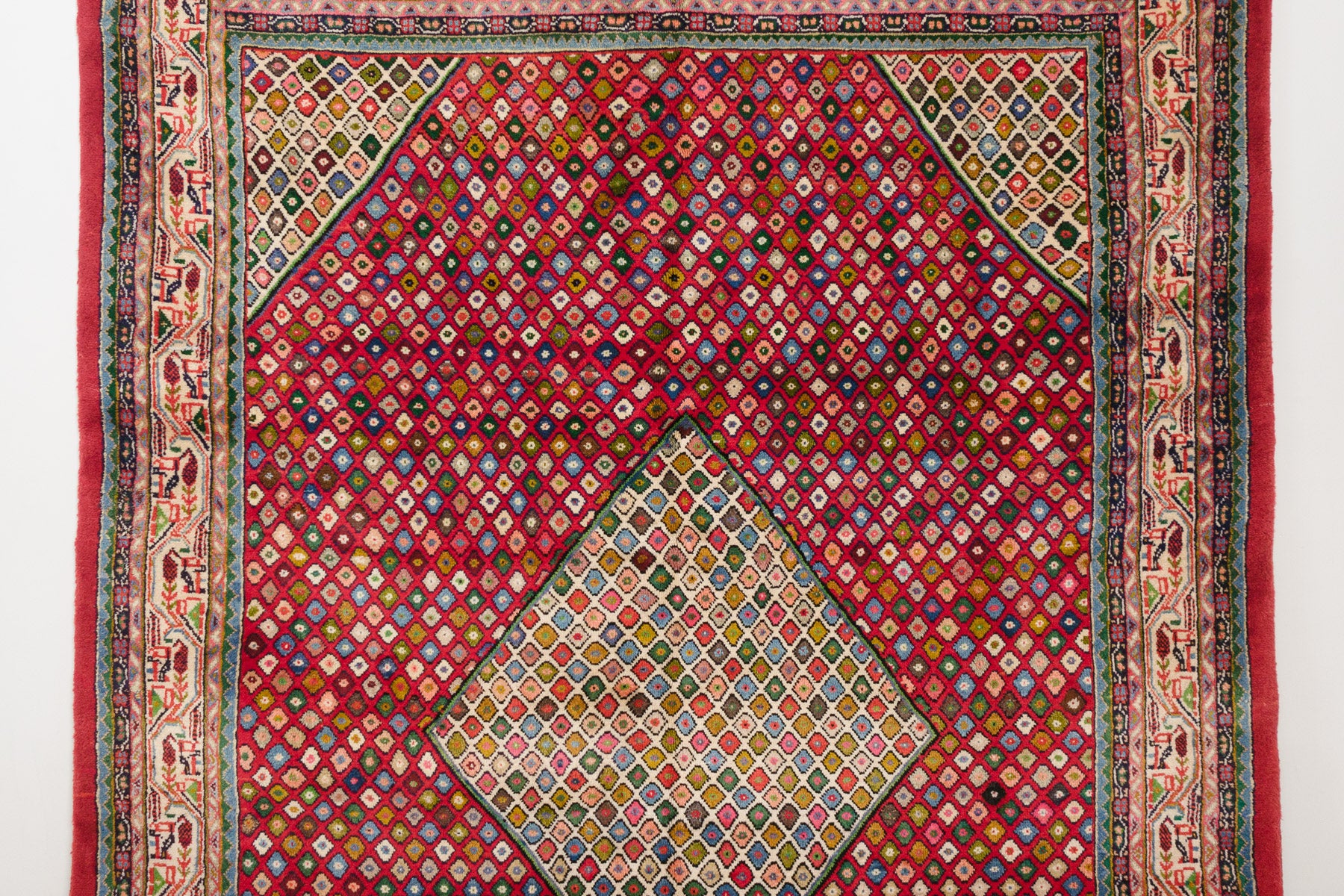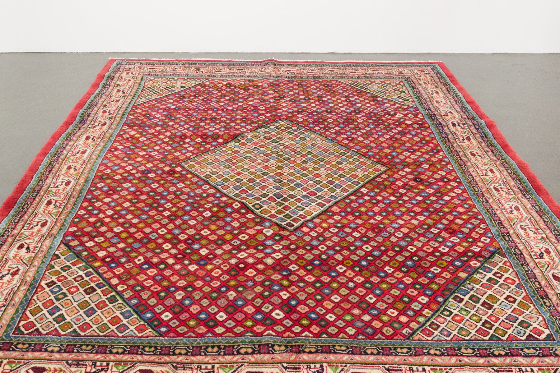 name: Abbasorigin: Iran (Persian), Saroukstyle: rug, carpetmaterial: hand knotted woolcolors: reds, blues, greens, pinks, browns, yellow, ornage, black, gray, cream age: vintagecondition: good, age related wear - see picturesappraised value: $3,900