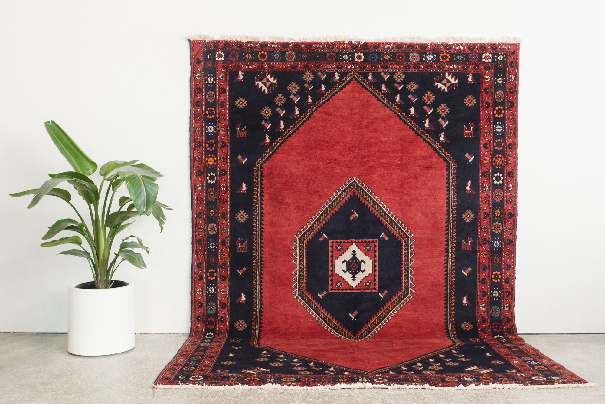 style: hand knotted, Persian, Meshkin, rug, carpet