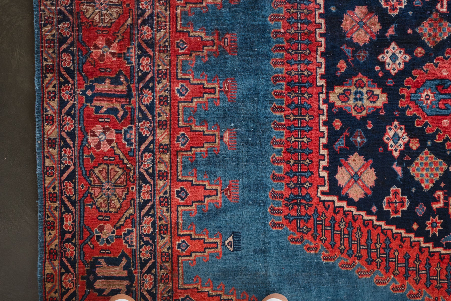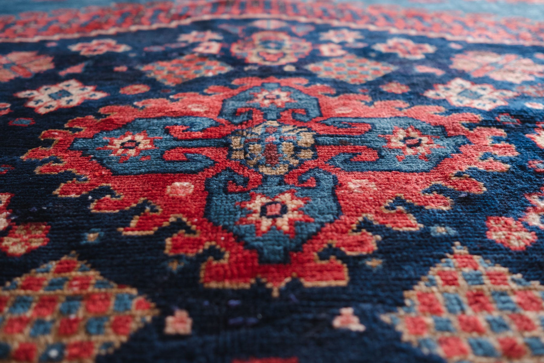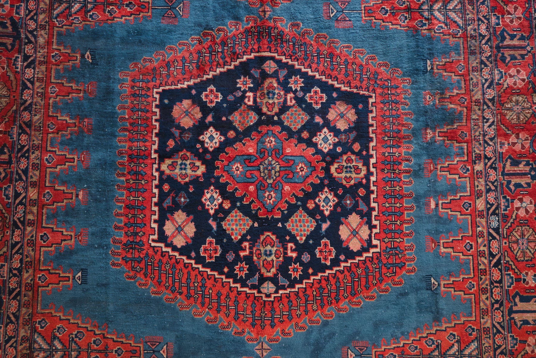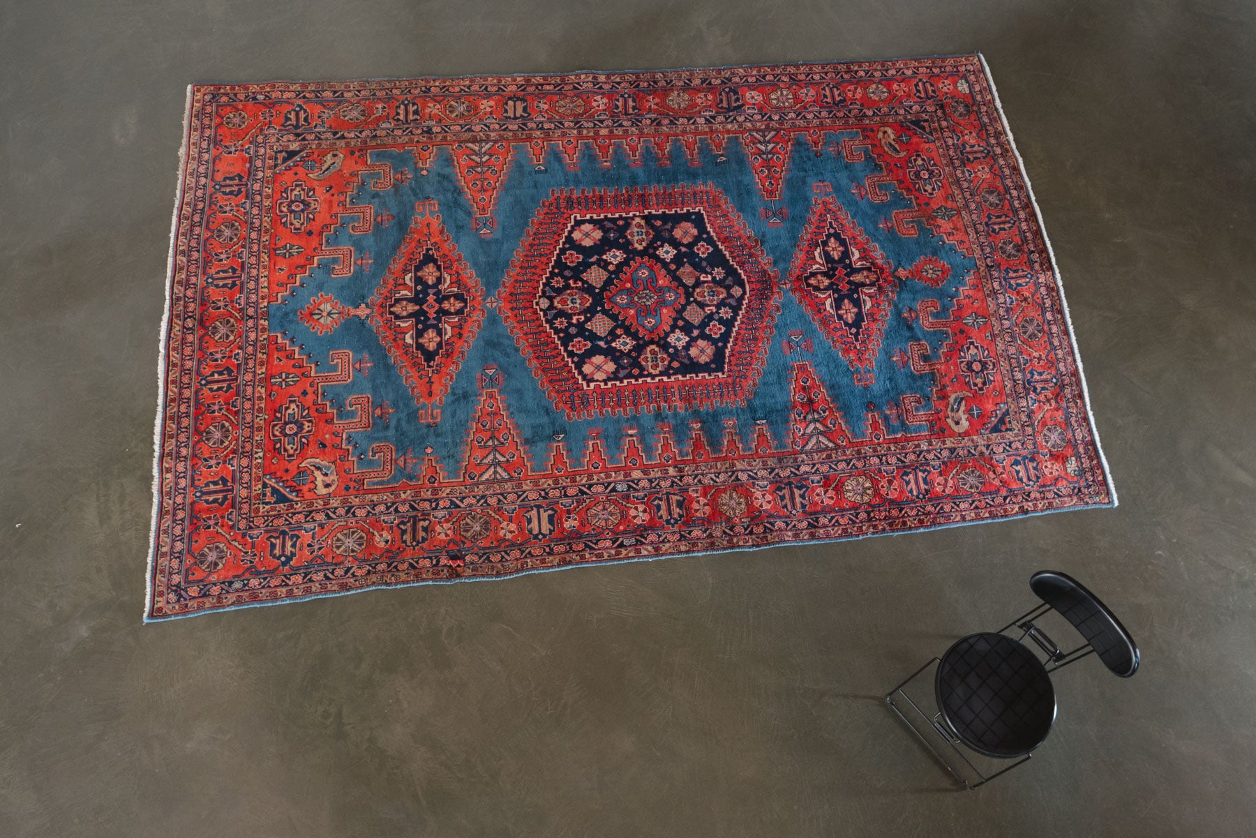 name: Fardisstyle: hand knotted, Persian, rug, carpet material: woolcolors: red, pink, yellow, green, blue, brown, navy, creamage: vintage condition: good, age related wear / repair - see pictures