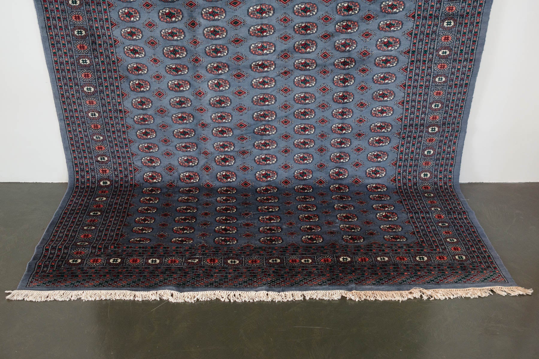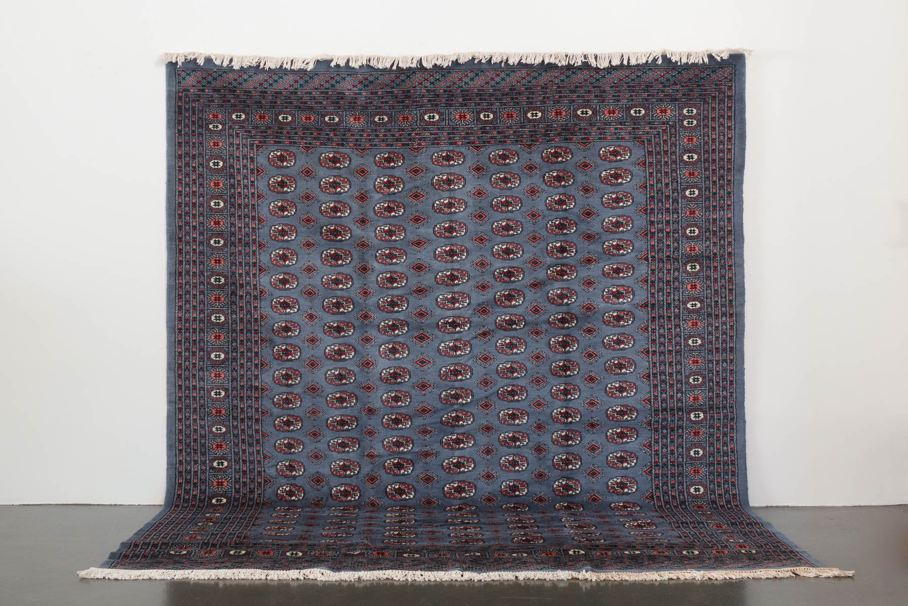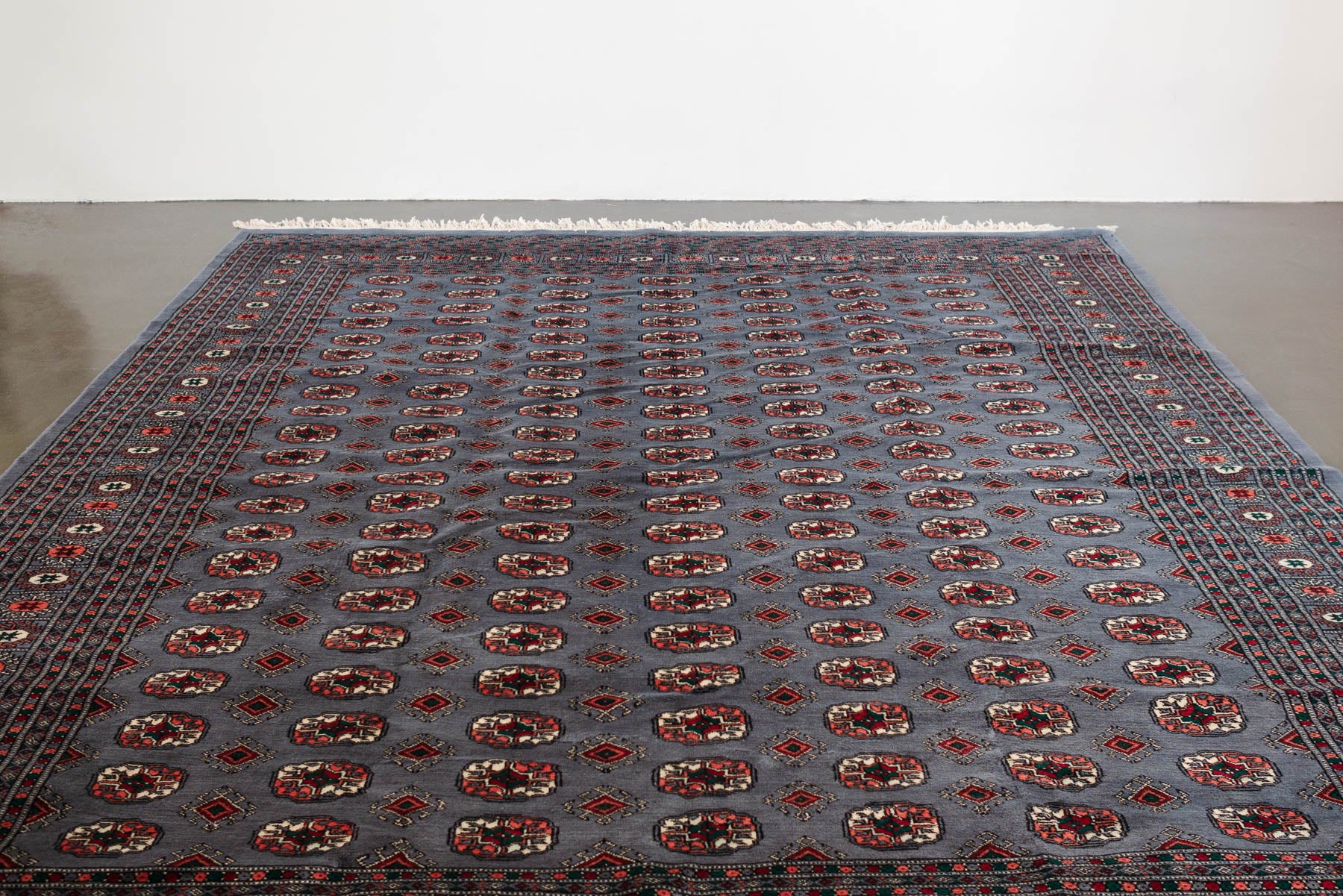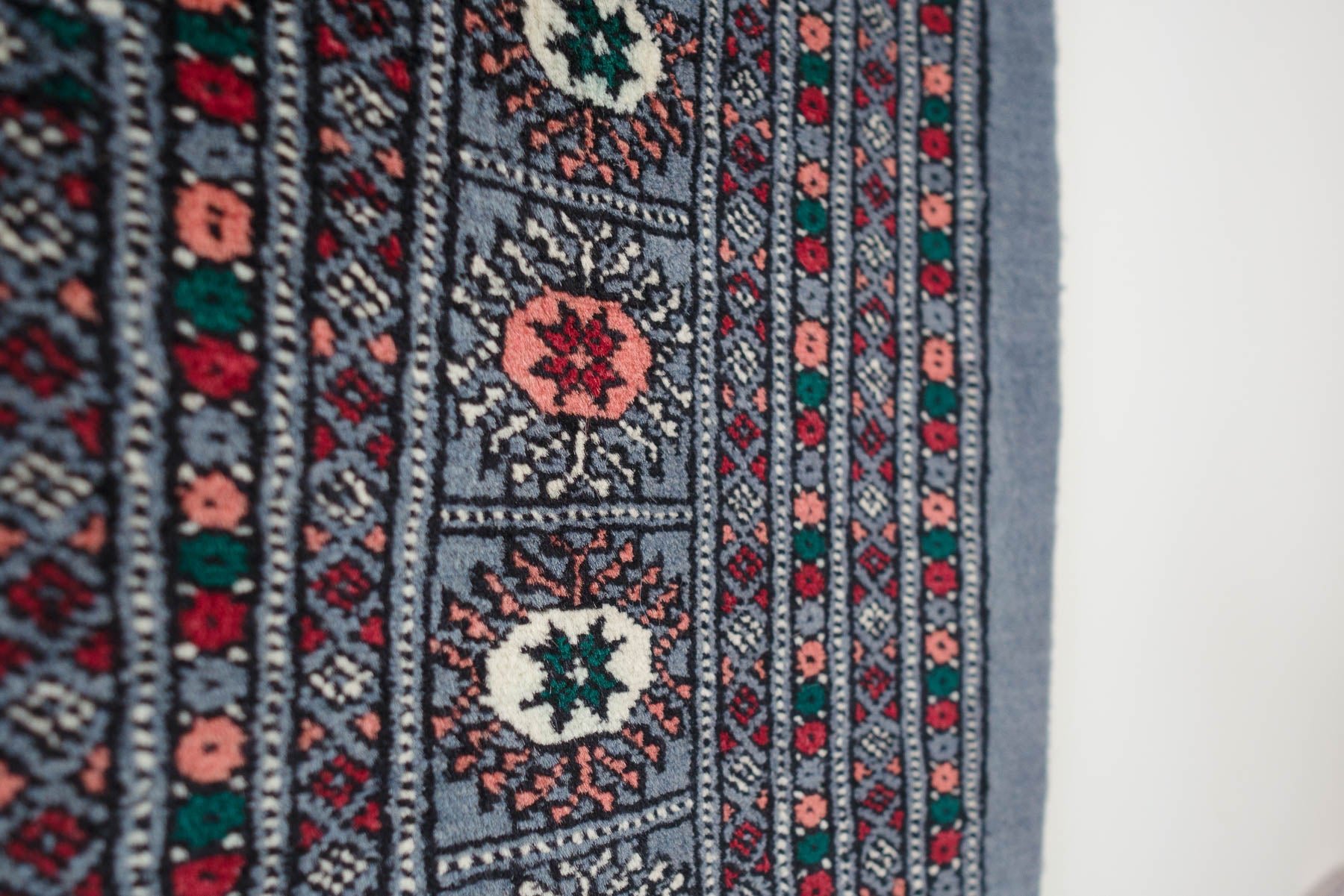 name: DABHITstyle: hand knotted, Pakistani, rug, carpetmaterial: woolcolors: gray, white, black, coral, red, greenage: vintagecondition: good, age related wear - see pictures