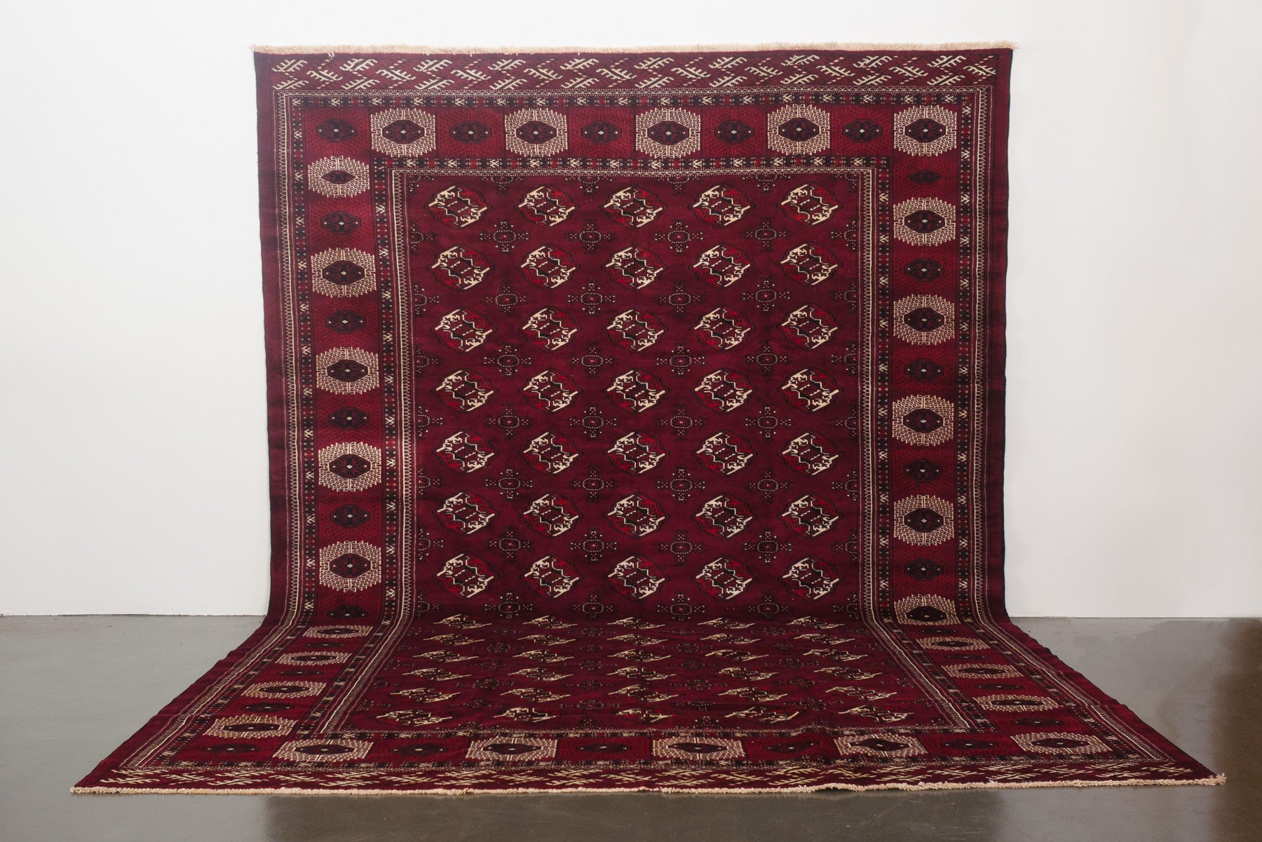 name: Asadorigin: Iran (Persian), Balouchstyle: rug, carpetmaterial: hand knotted woolcolors: burgundy, brown, black, creamage: vintage, 1950-1960condition: good, age related wear - see picturesappraised value: $3,800102" x 145"(closest standard rug size is 8.5x12)Free domestic shipping on all rugs.Contact us for an international shipping quote.