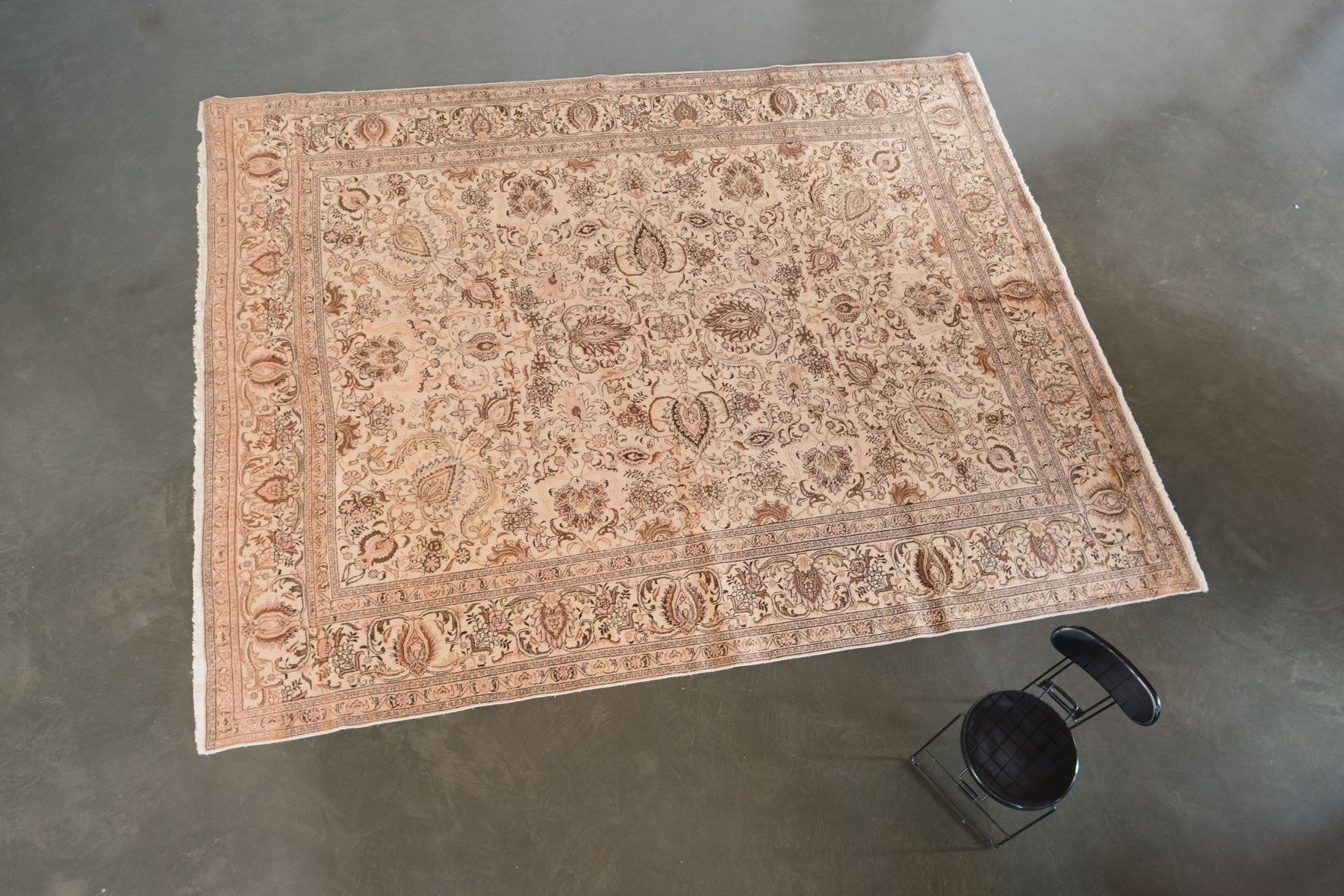 name: Farinamorigin: Iran (Persian)style: rug, carpetmaterial: woolcolors: pink, brown, camel, black, creamage: vintage condition: good, age related wear - see pictures