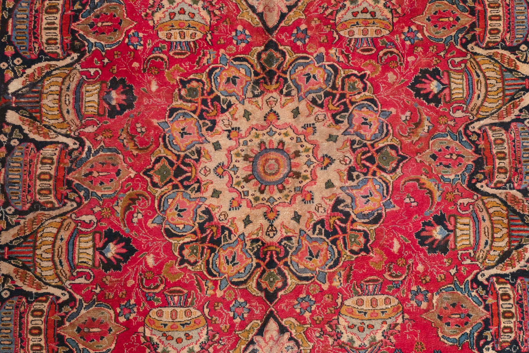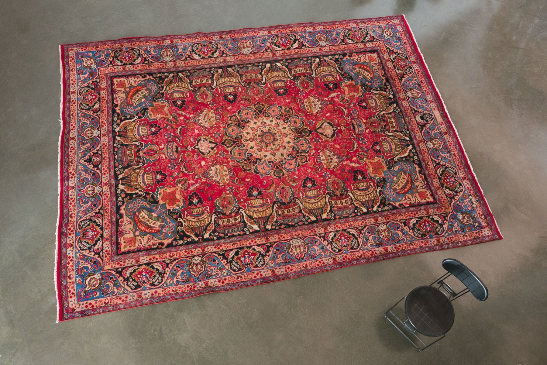 colors: reds, blues, gold, tan, brown, cream, black, magenta