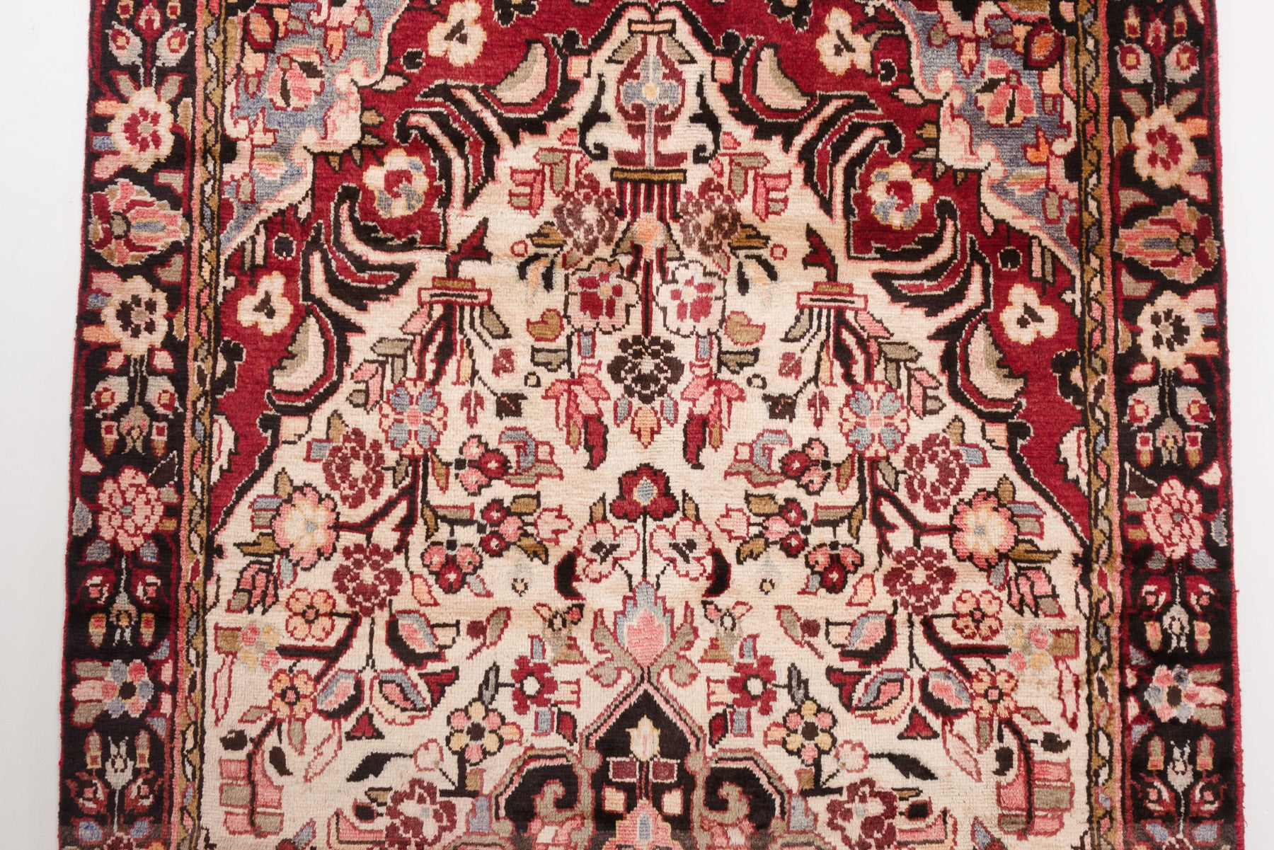name: Farhanorigin: Iran (Persian), Borchelustyle: rug, carpetmaterial: hand knotted woolcolors: red, browns, camel, pink, blue, black, creamage: vintagecondition: good, age related wear - see picturesappraised value: $2800