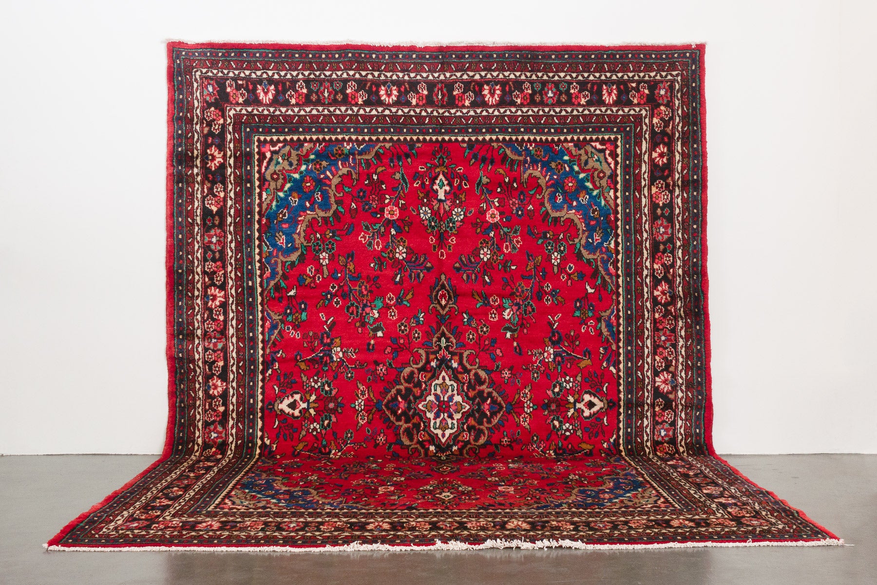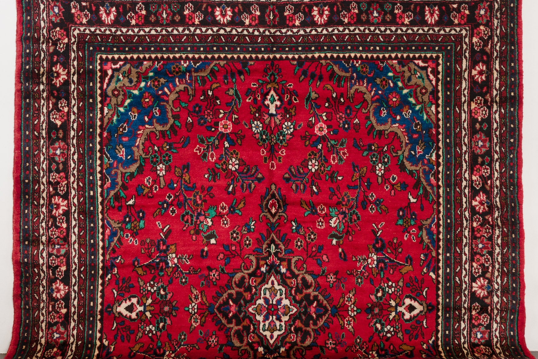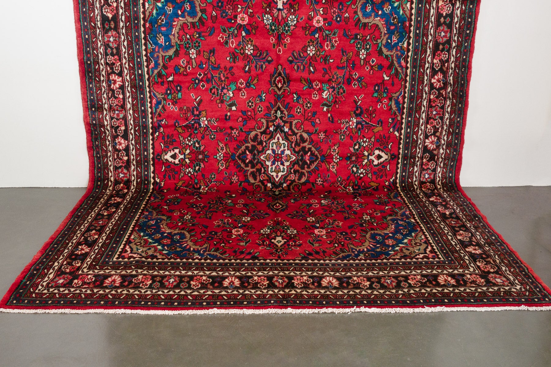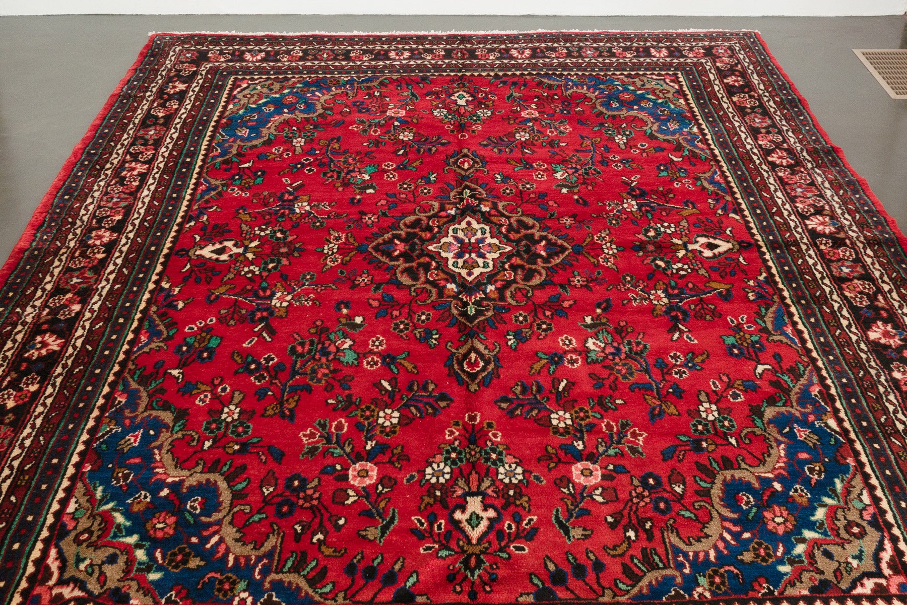 name: Amjadorigin: Iran (Persian), Hamedanstyle: rug, carpetmaterial: hand knotted woolcolors: reds, blues, brown, green, pink, orange, black, creamage: vintage, 1960-1970condition: good, age related wear - see picturesappraised value: $4,800