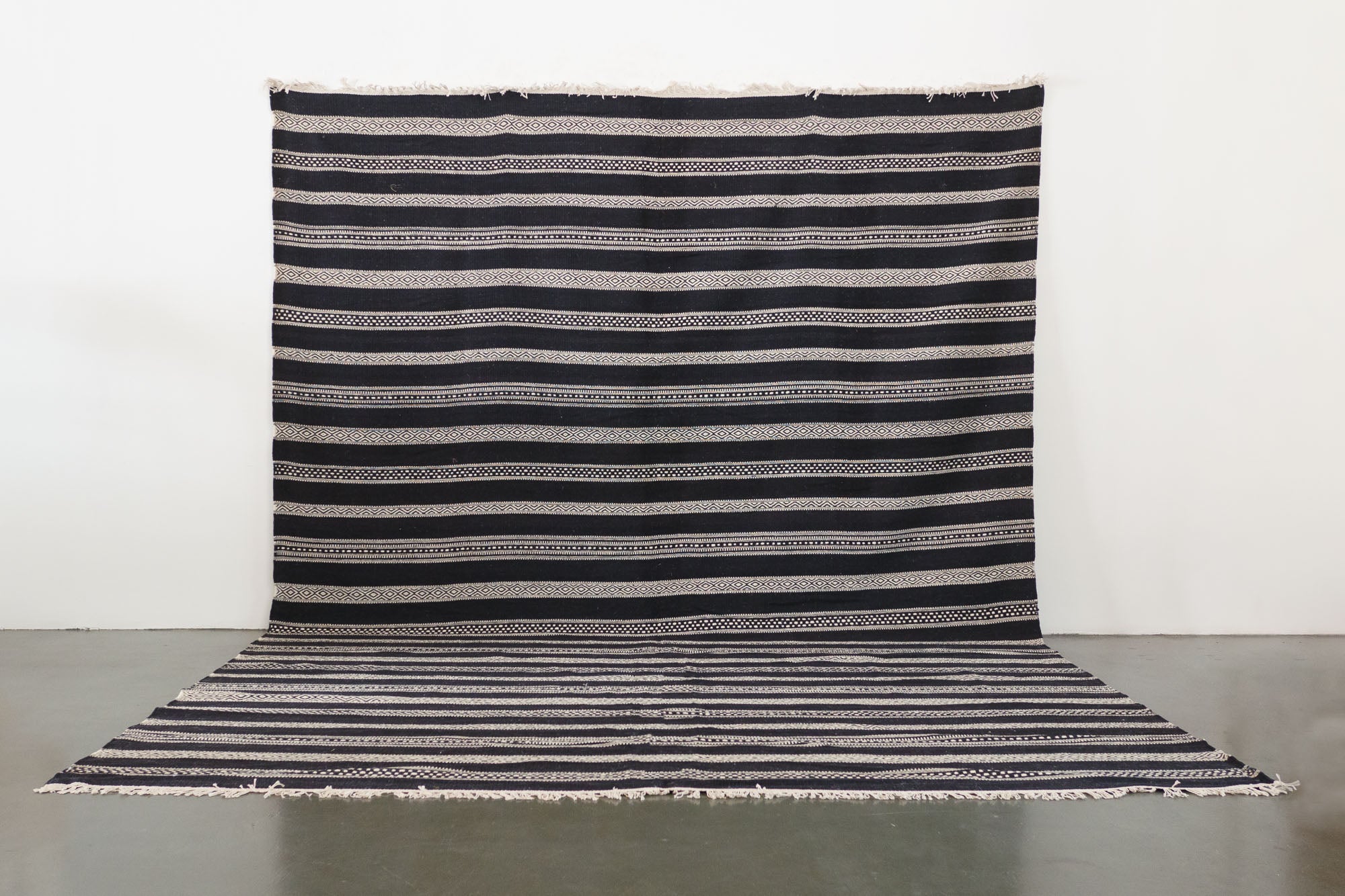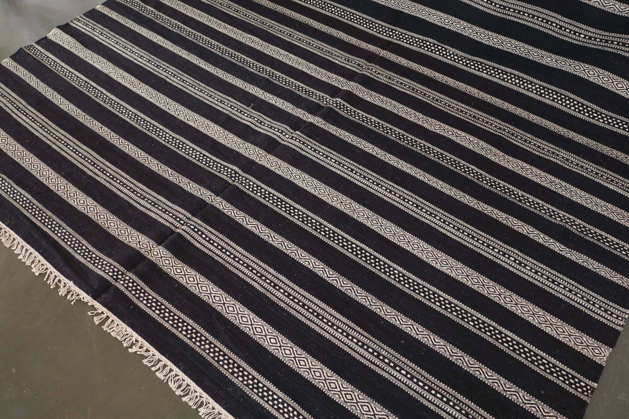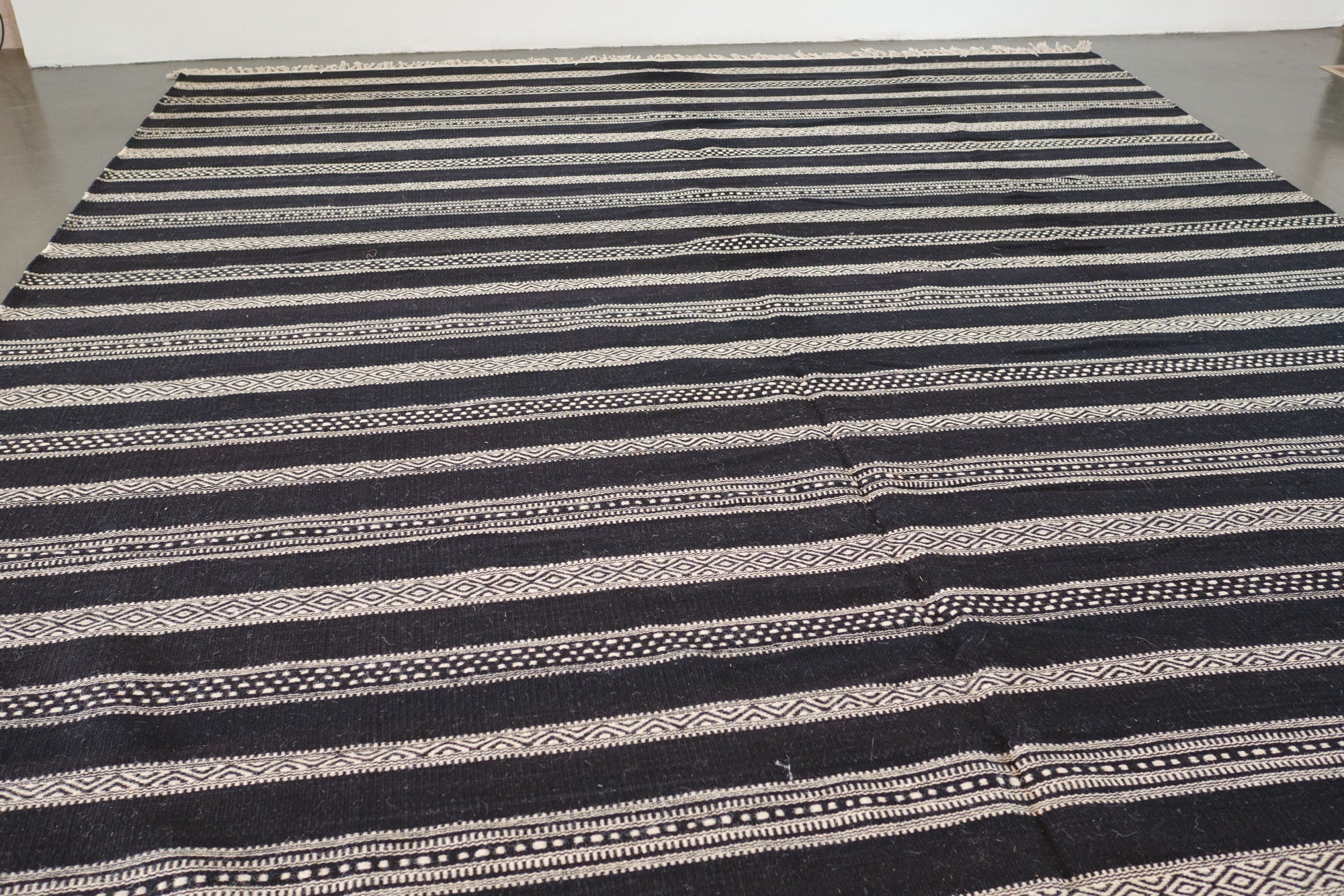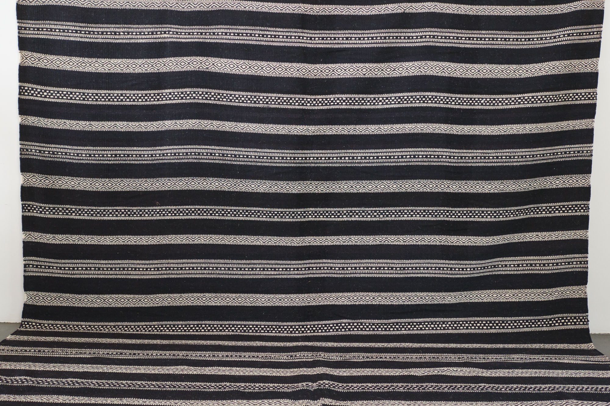 name: Dundarorigin: Turkeystyle: kilim, rug, carpetmaterial: hand woven woolcolors: black, creamage: vintage, 1940-1970condition: good, age related wear - see picturesappraised value: $2092sku: t-416107" x 147"(closest standard rug size is 9x12)