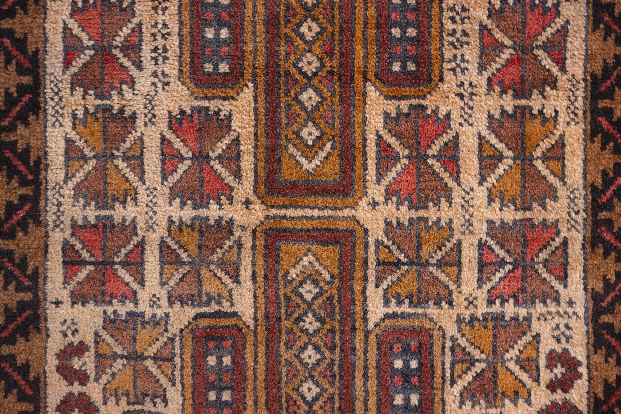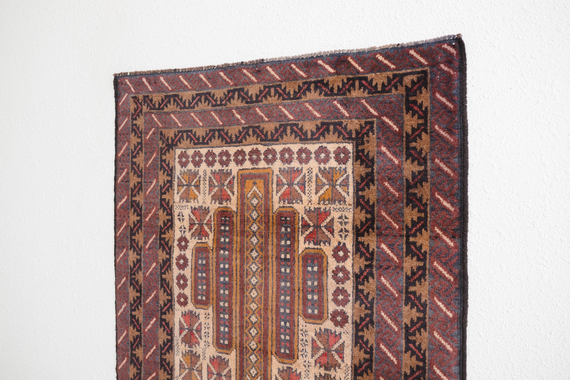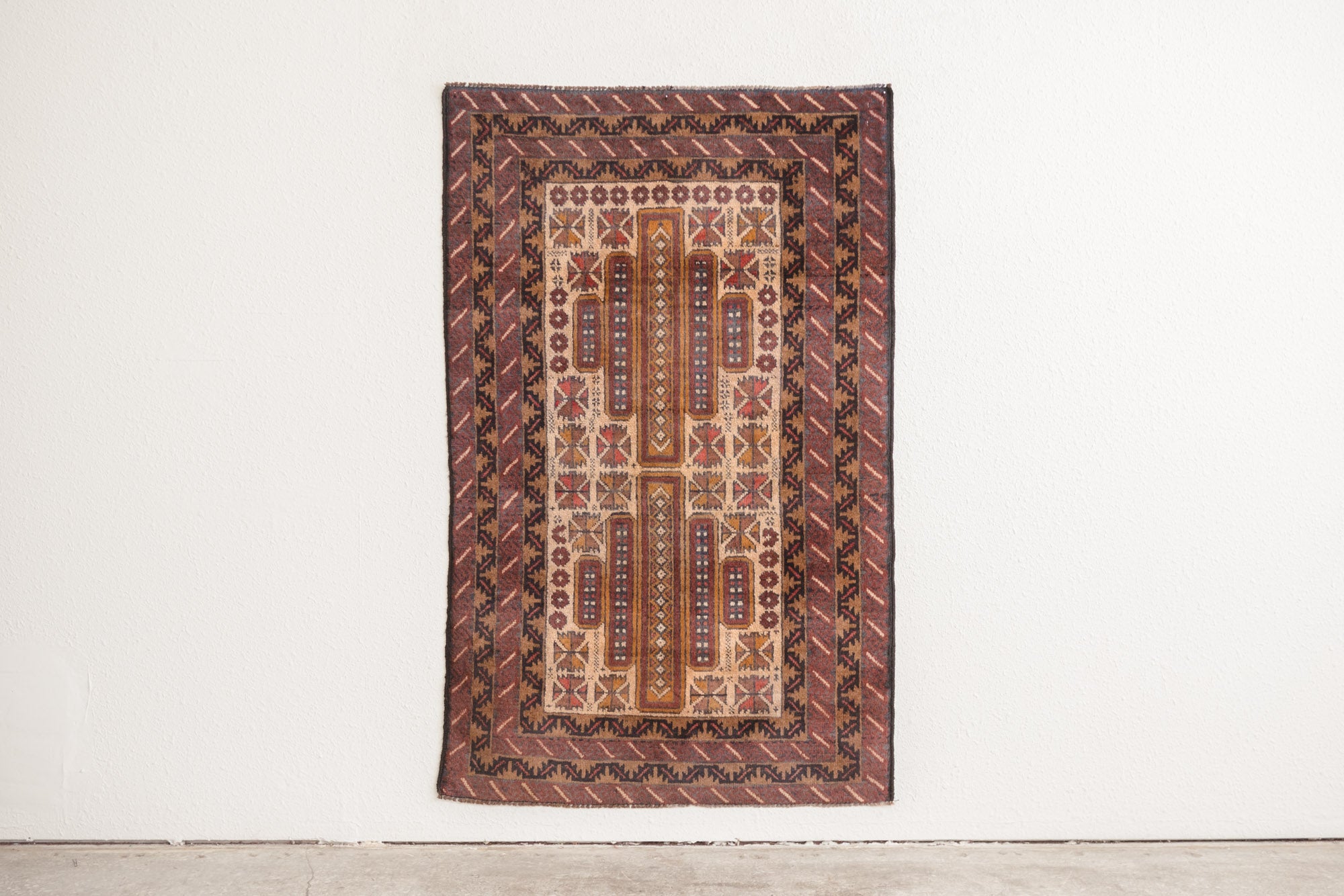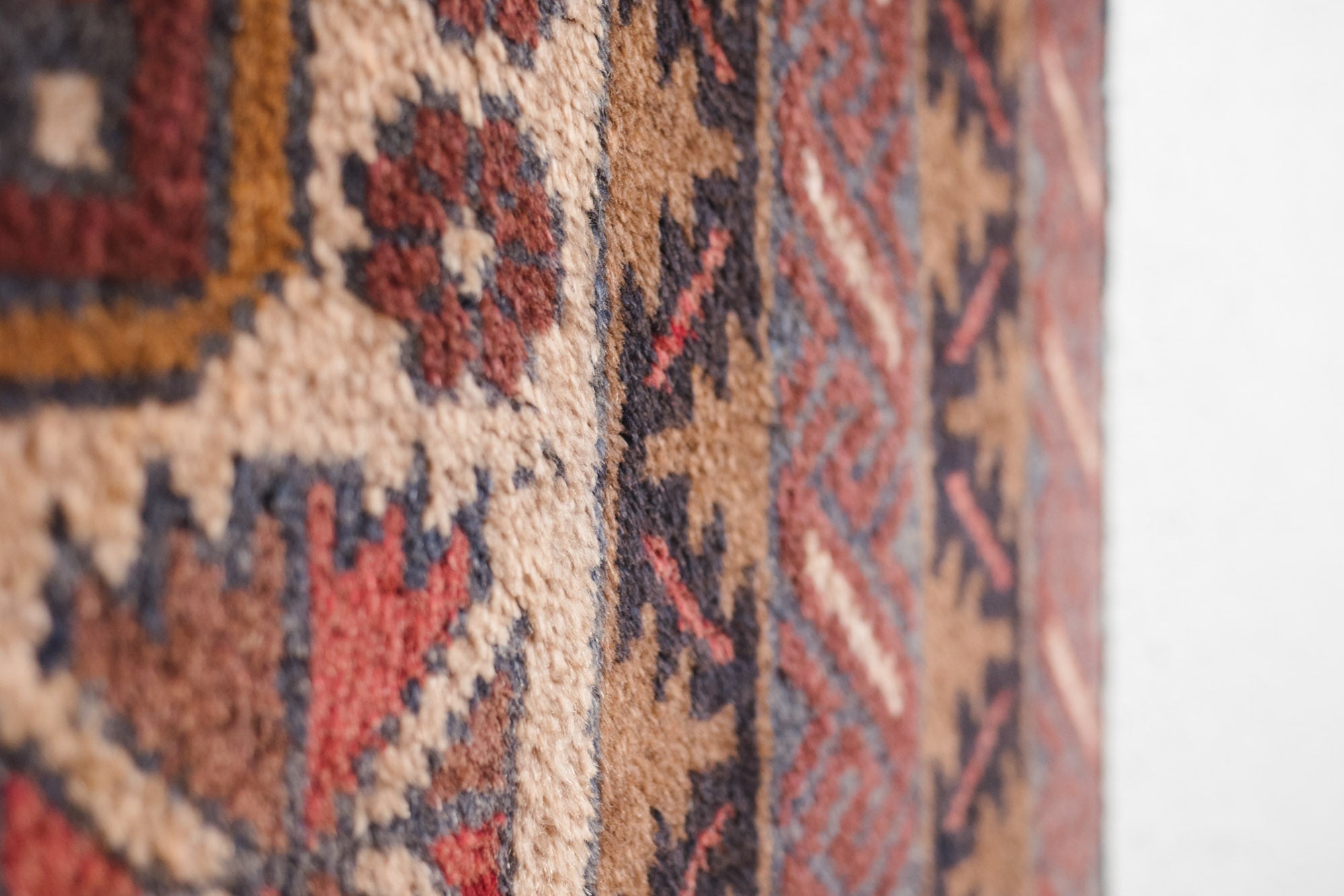 name: Reshtinastyle: hand knotted, Afghan, rug, carpetmaterial: woolcolors: rust, brown, red, black, camel, tan, blue, orangeage: vintage condition: good, age related wear - see pictures