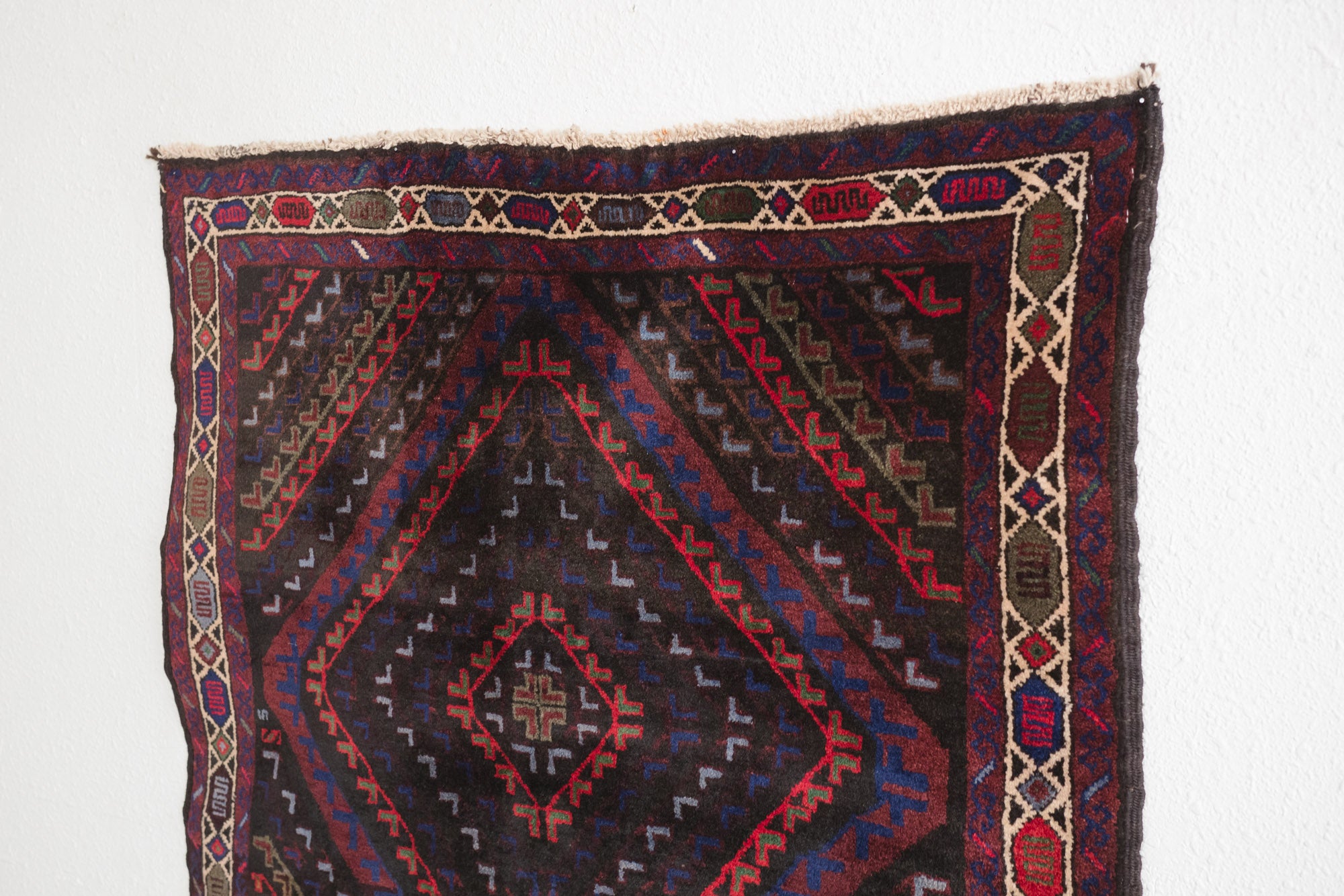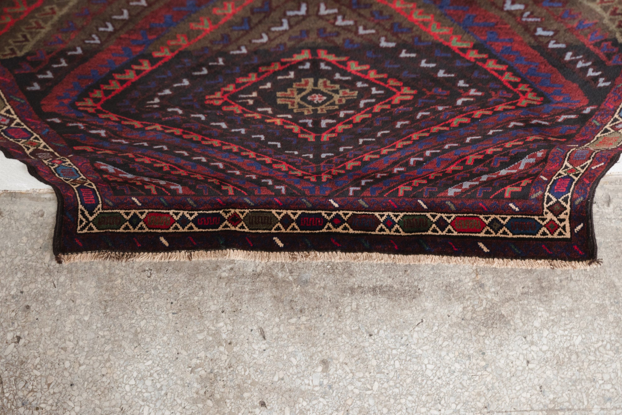 name: Orzalastyle: hand knotted, Afghan, Kazak, rug, carpetmaterial: woolcolors: red, green, navy, black, cream, oliveage: vintage condition: good, age related wear - see pictures