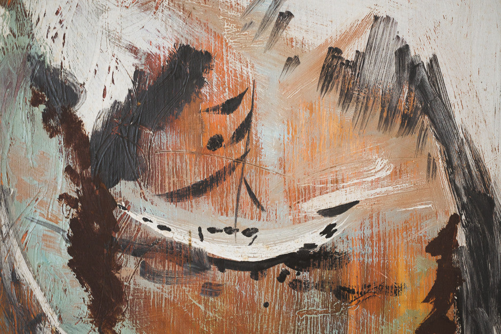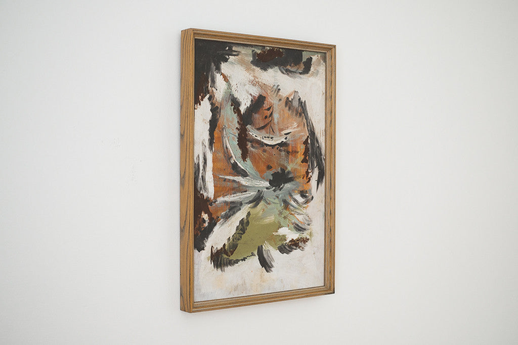 style: Mid Century, abstract, oil painting, framedmaterial: wood, canvas, paint text: -age: vintage condition: good - see pictures