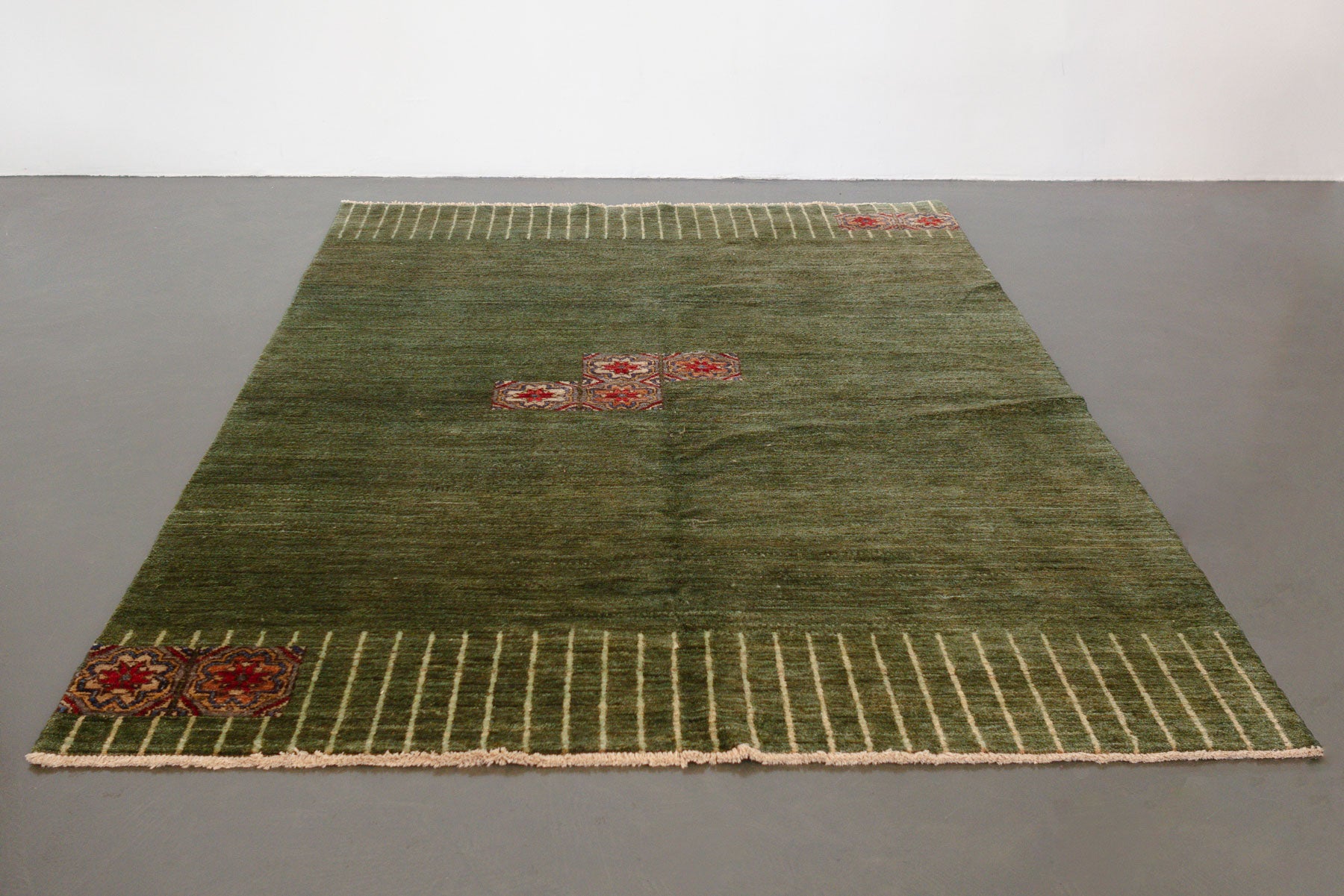 name: Samandarorigin: Afghanistan, Ziegler Chobistyle: rug, carpetmaterial: hand knotted woolcolor: green, cream, yellow, red, blue, grayage: vintage condition: good, age related wear - see picturesappraised value: $2,216