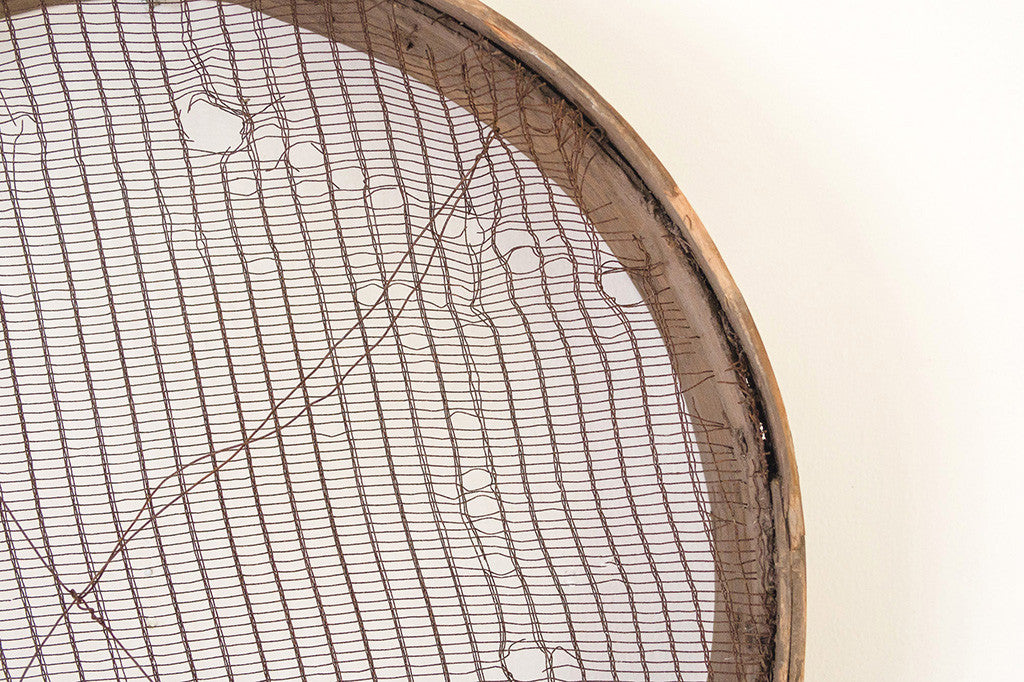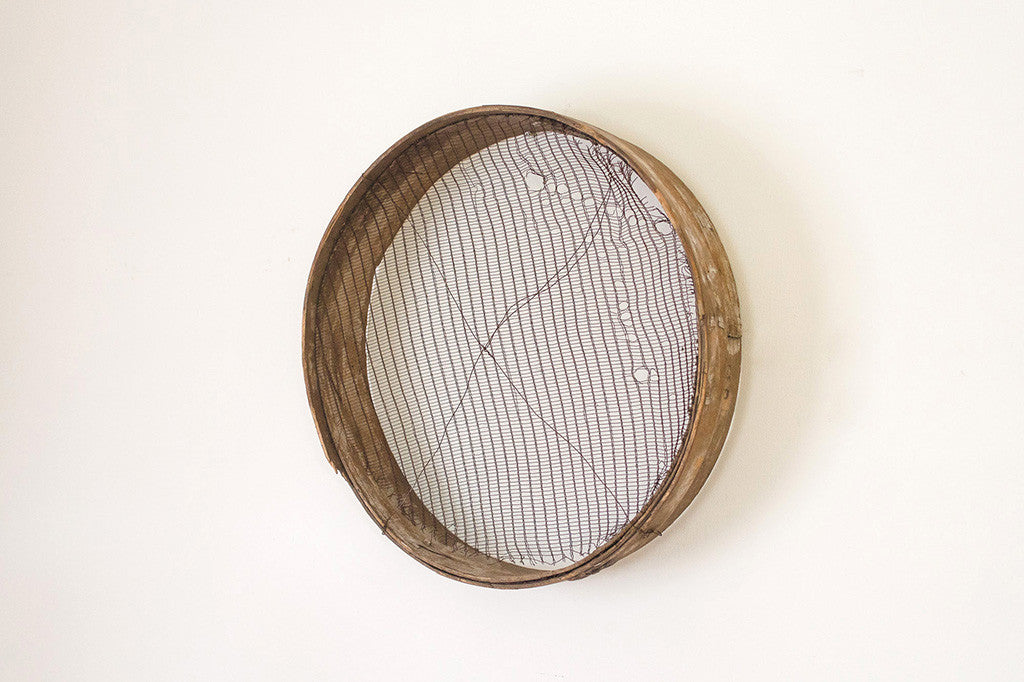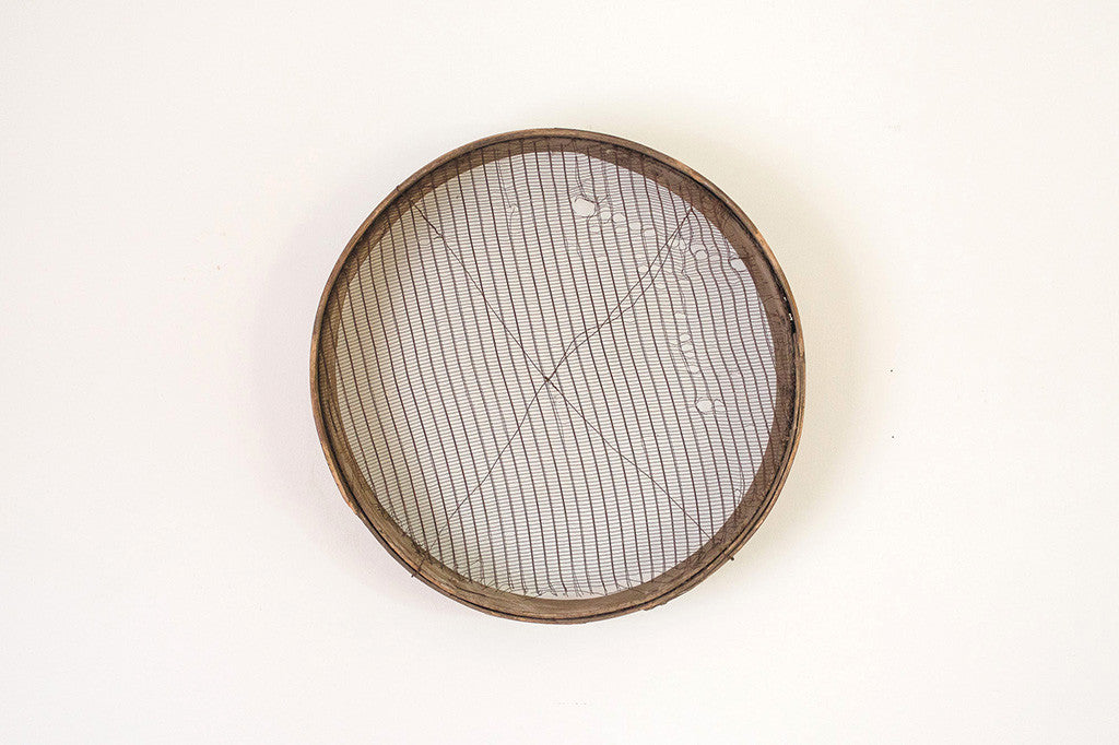 This old industrial sifter has a wire interior and distressed wood frame. It's easy to hang and would work anywhere from an industrial loft to a traditional Ralph Lauren country home. Please see pictures for detailed condition of this piece.