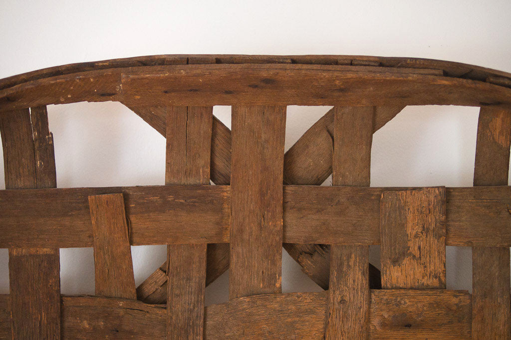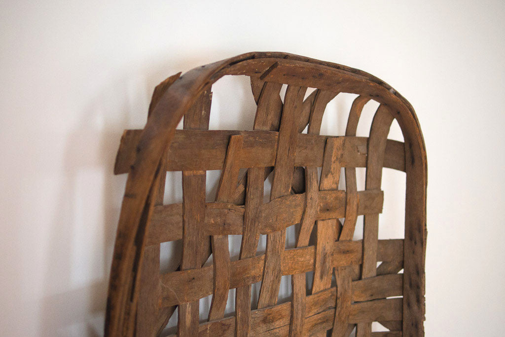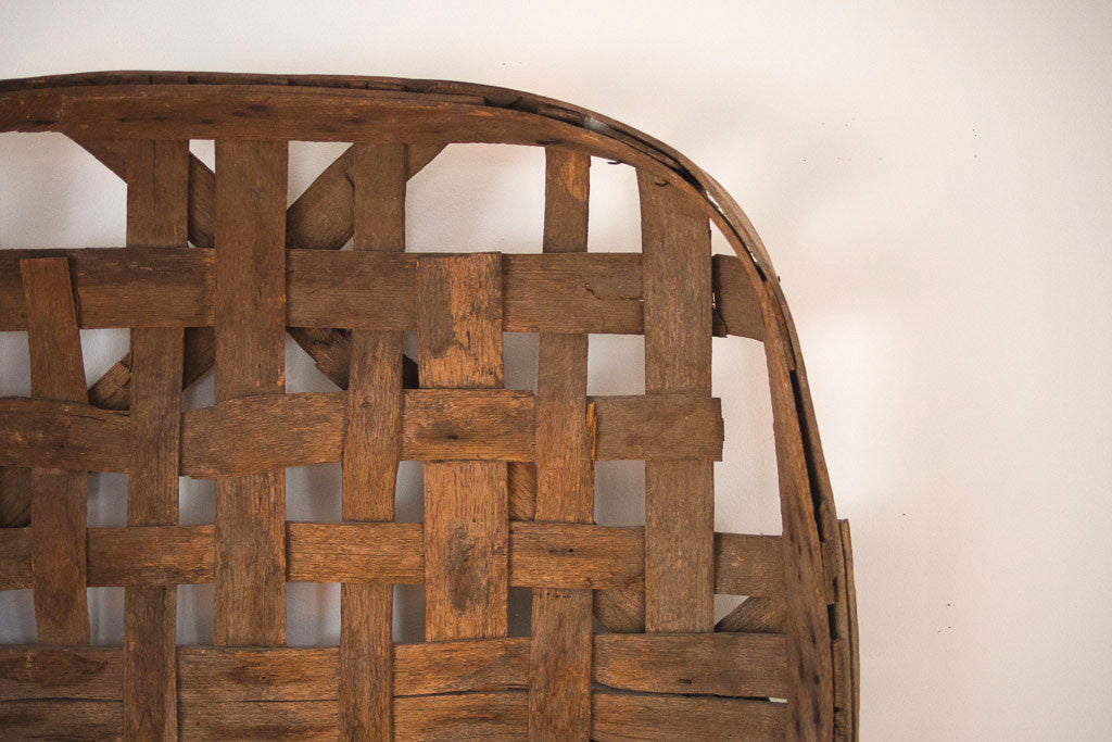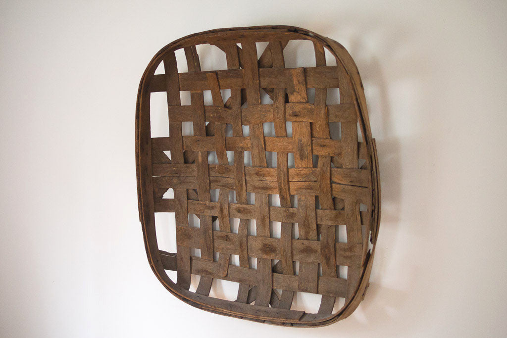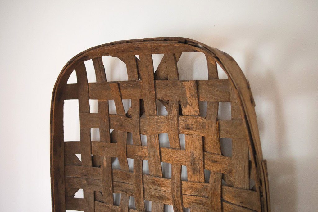 This rustic basket has been in our collection for years. It's original use was to harvest tobacco in the South. It was purchased at an Antique store in Savannah, Georgia.