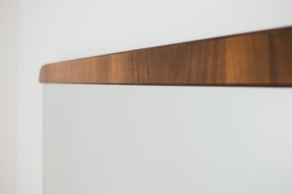 style: Art Deco, walnut trim, mirror, wall mountmaterial: wood, glass, plasticage: vintage condition: good, age related wear - see pictures