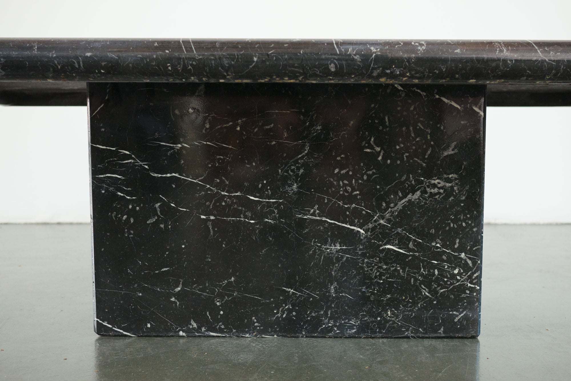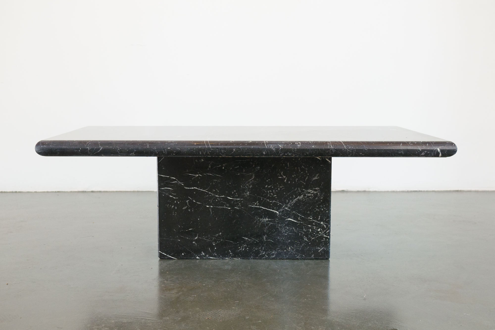 style: modern, pedestal, beveled, coffee tablematerial: stone (marble - black, white)age: vintage condition: good, age related wear (surface wear) - see picturessku: hs-460
