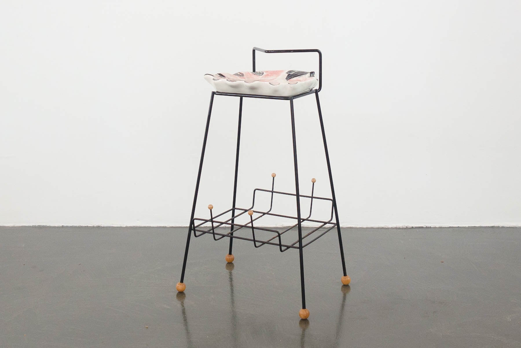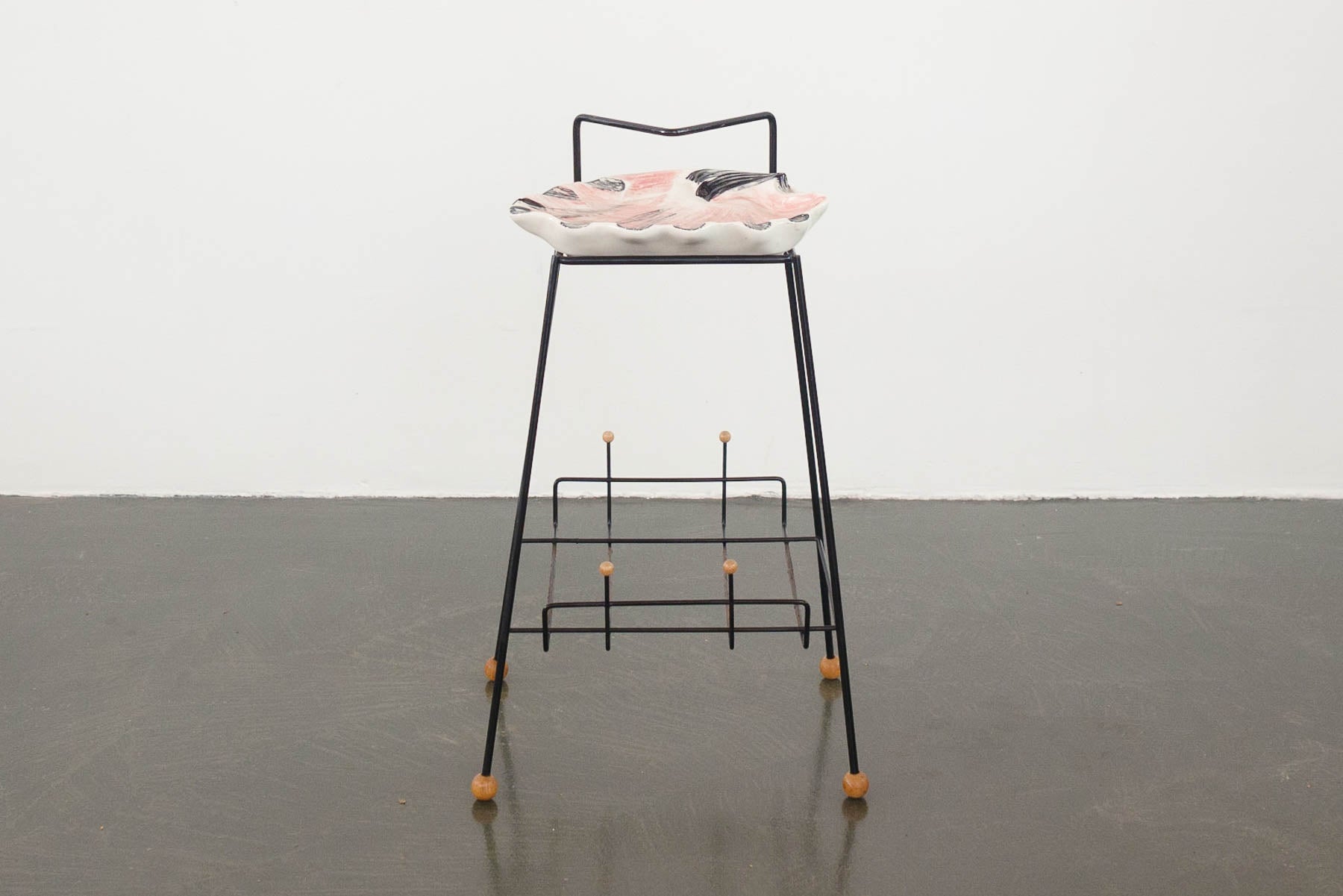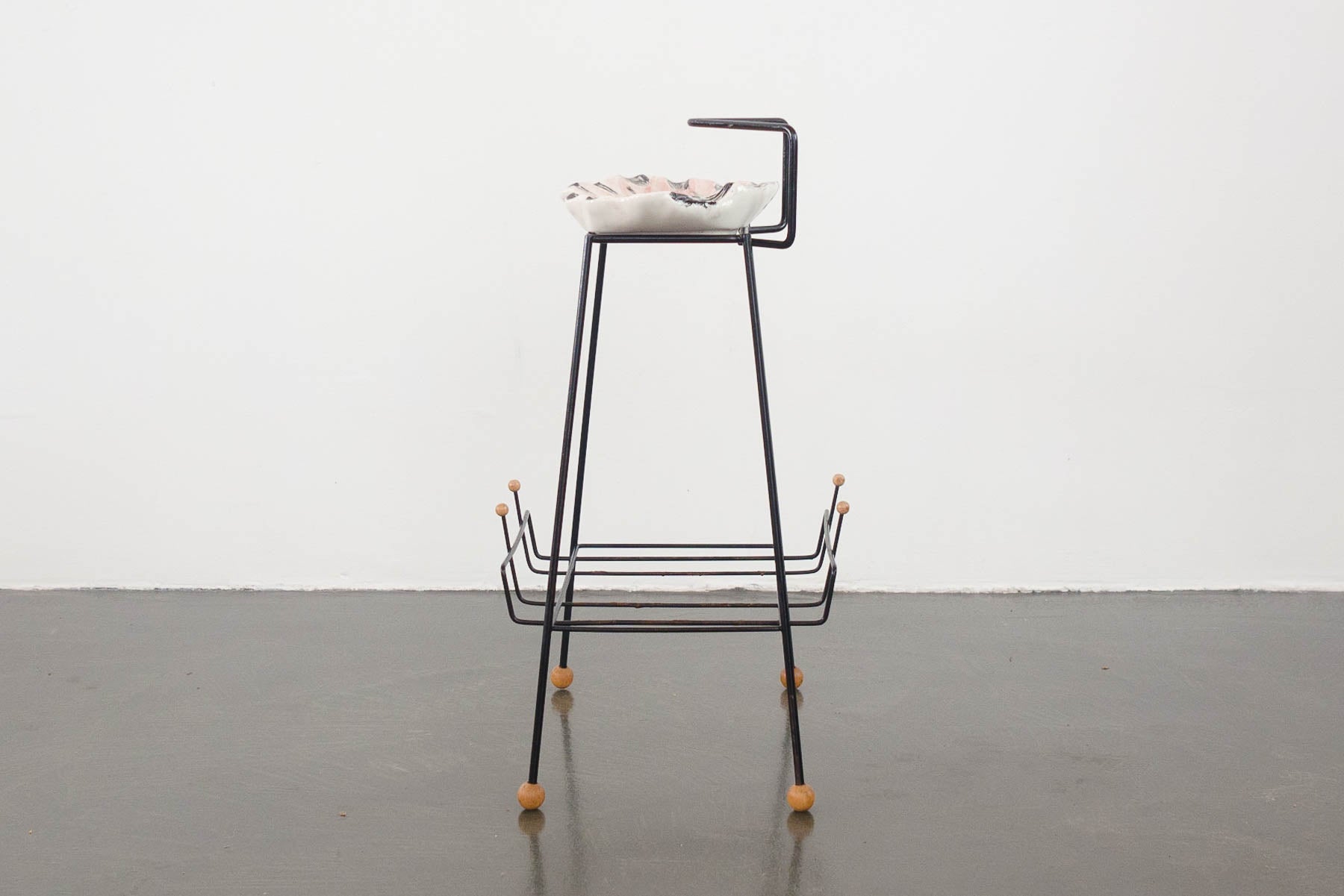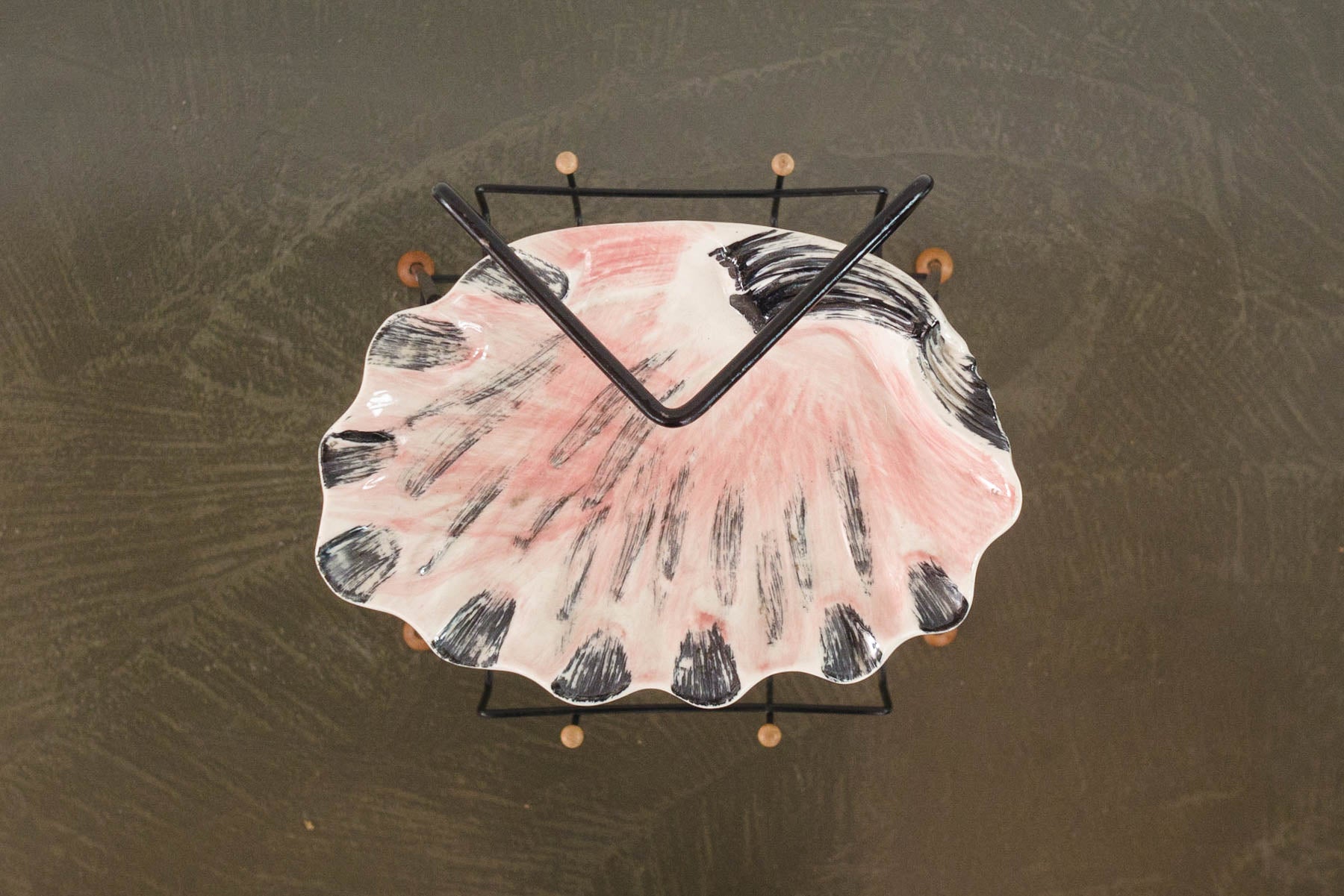 style: mod, atomic, shell, catchall, stand, shelf, table, ashtray material: metal, wood, ceramic age: vintage, Mid Centurycondition: good, age related wear - see pictures