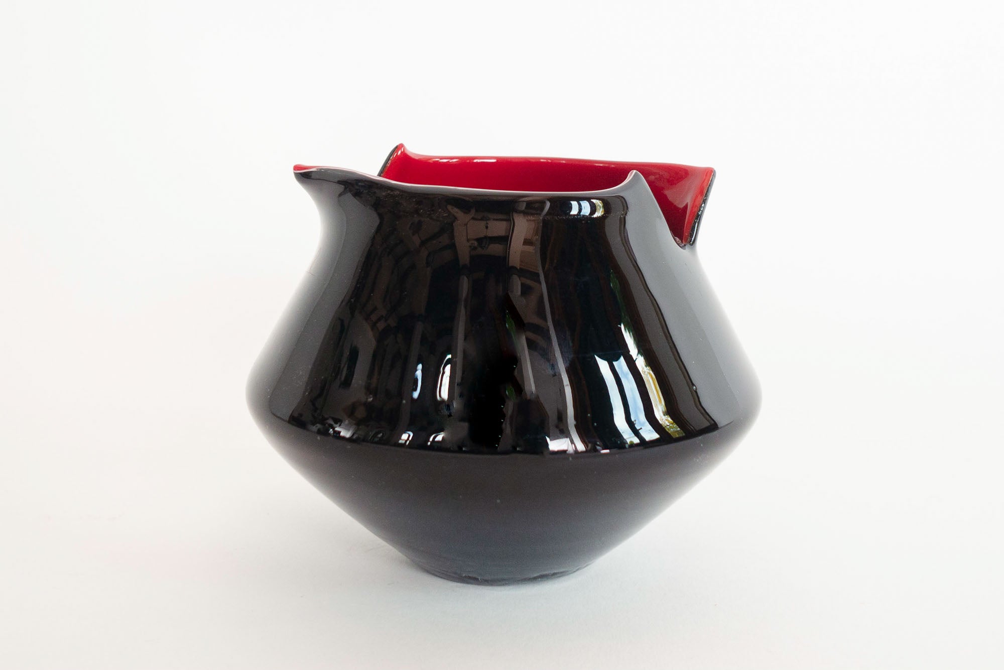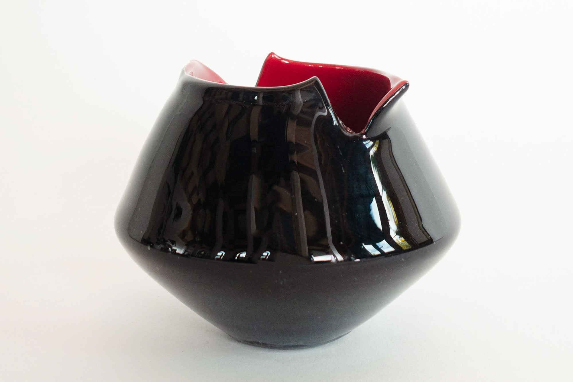 style: modern, pot, vasematerial: glass (black, red)age: vintagecondition: good, age related wear - see picturessku: sm-625